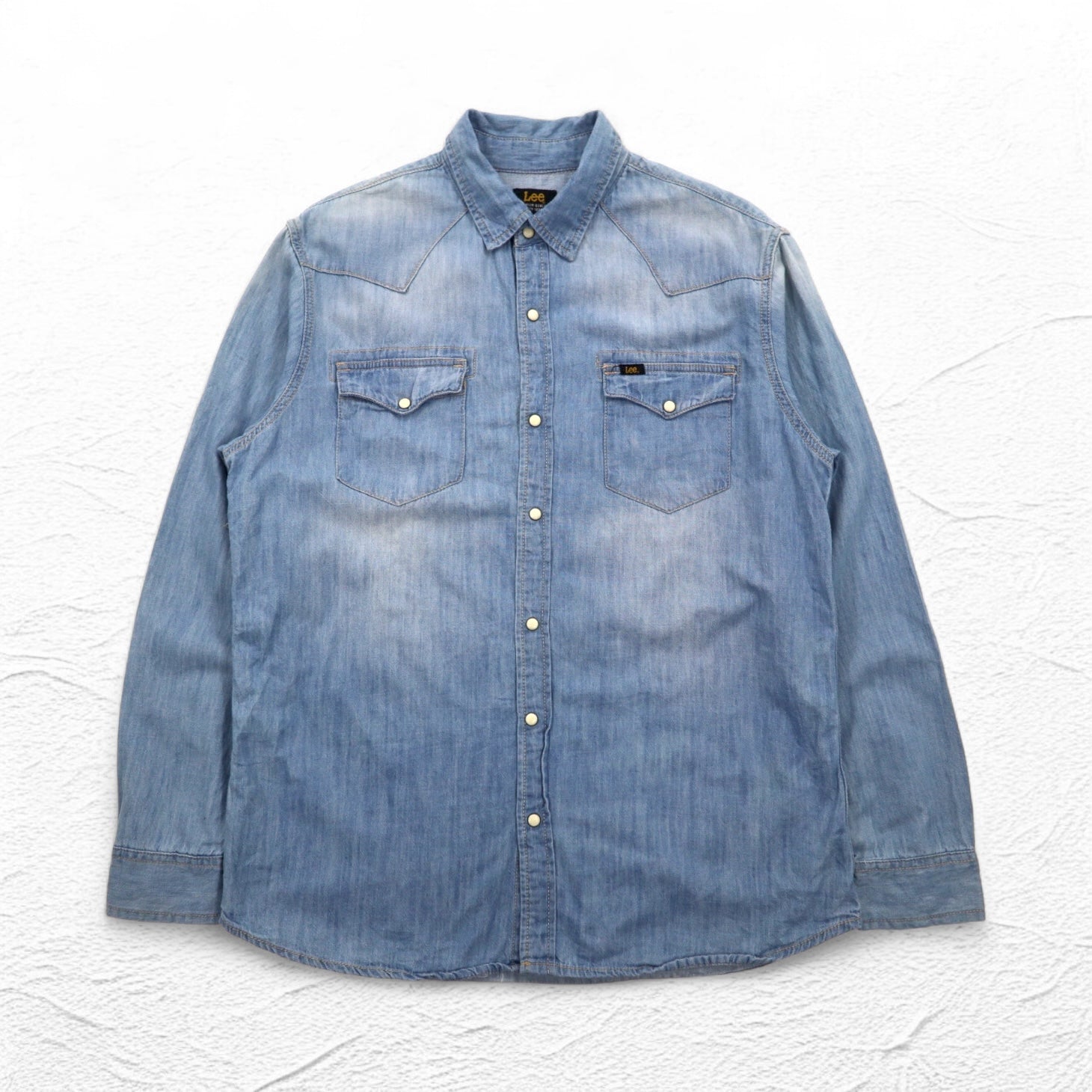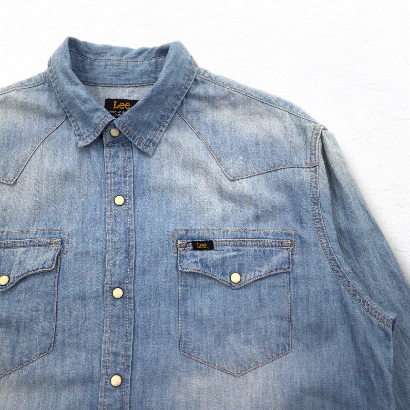 Lee デニム ウエスタンシャツ L インディゴ ブルー コットン 胸ポケット スナップボタン