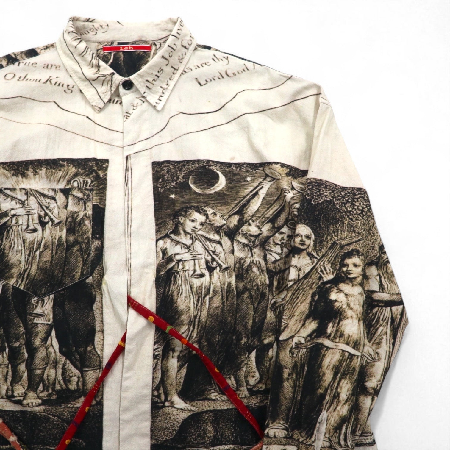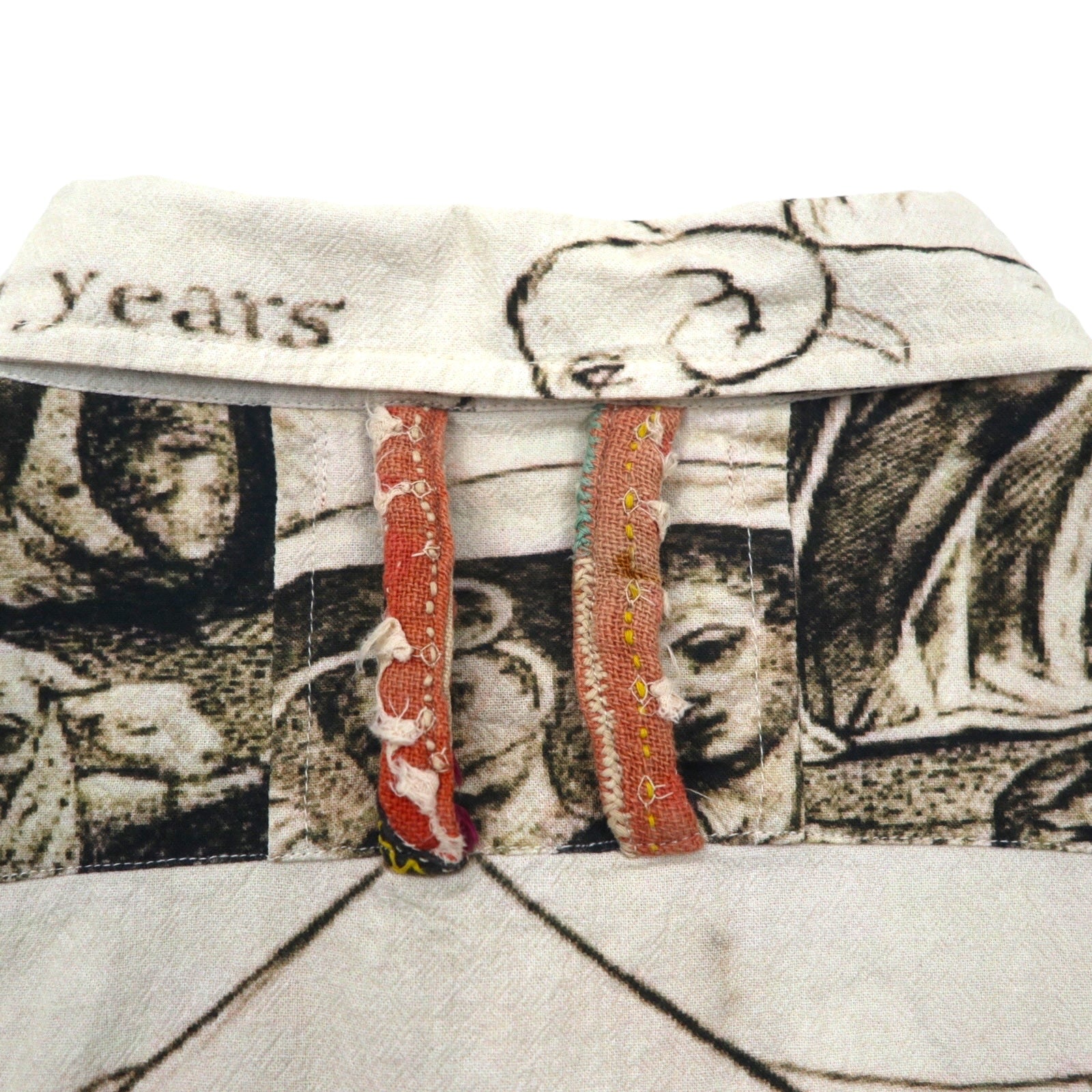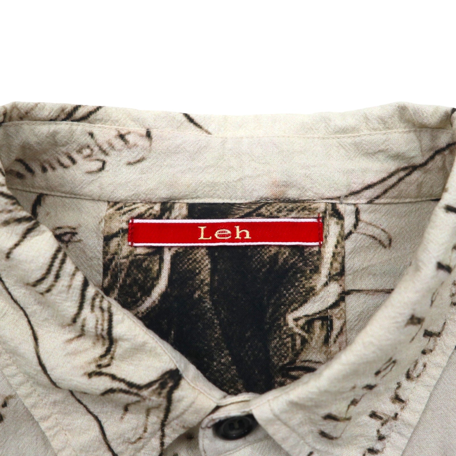 Leh 羽織 シャツ L ベージュ 総柄 インド綿 アート グラフィック 945