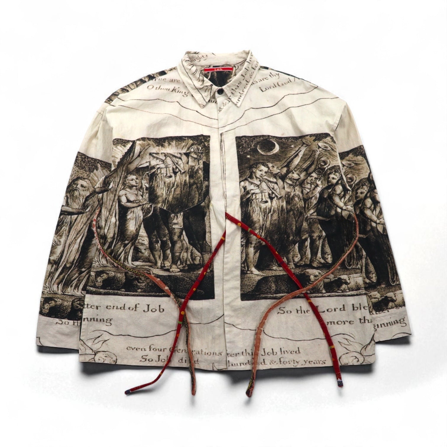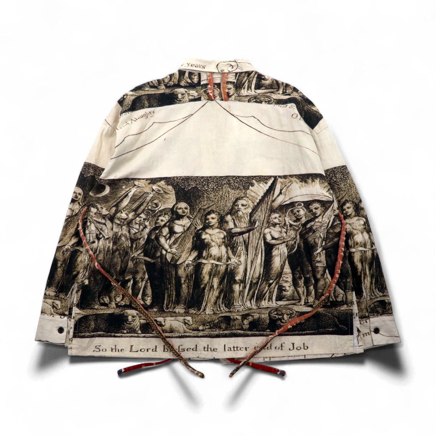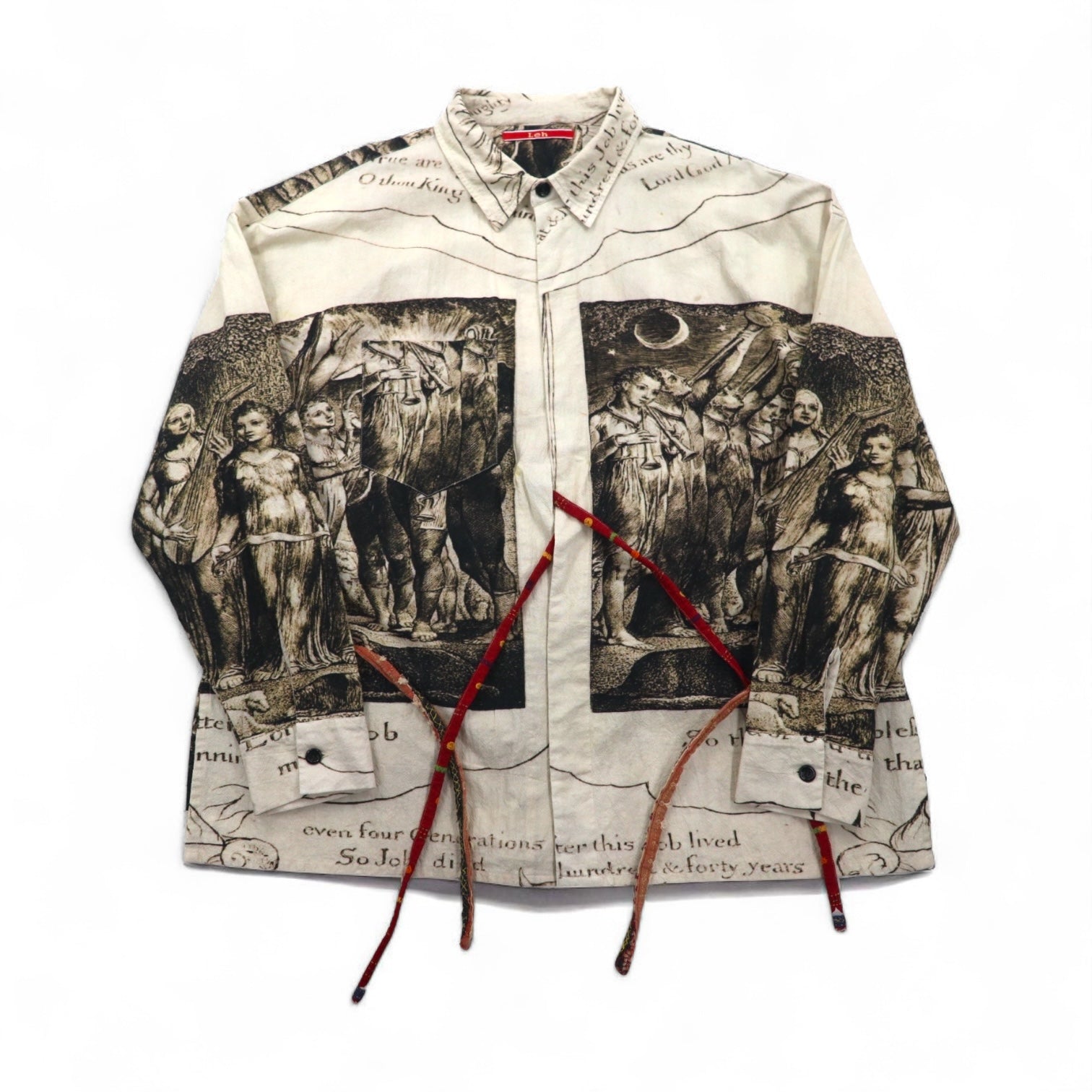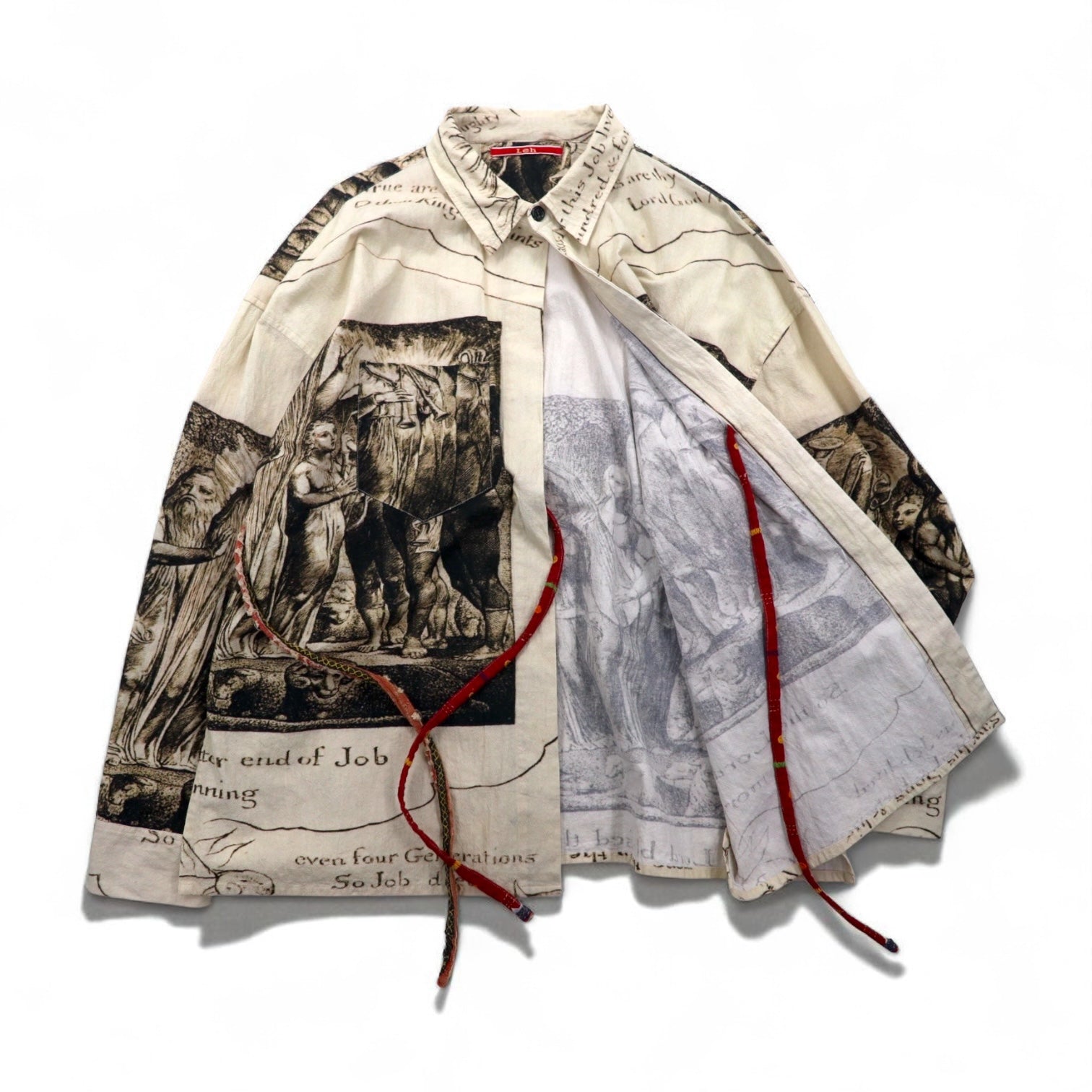 Leh 羽織 シャツ L ベージュ 総柄 インド綿 アート グラフィック 945