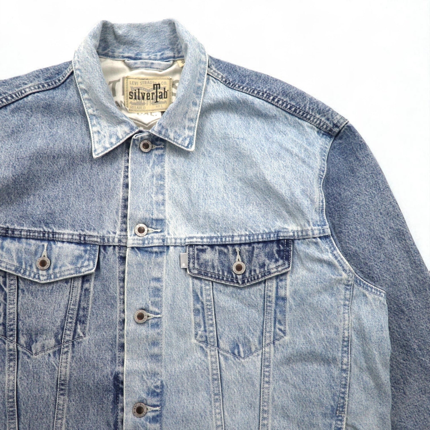 Levi's SILVER TAB シルバータブ RELAXED トラッカージャケット デニムジャケット Gジャン L インディゴ ライト ブルー ツートン HEART IS GOOD A31790005