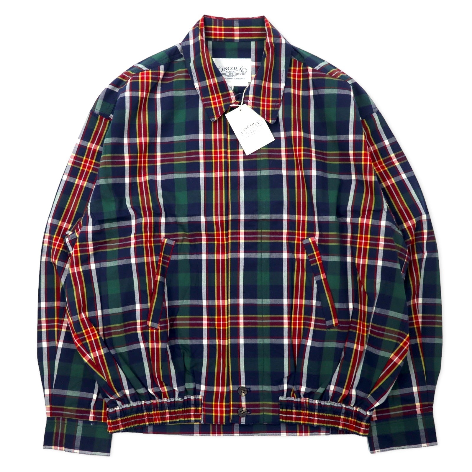LINCOLN 90年代 スウィングトップ ハリントンジャケット M ネイビー チェック コットン 未使用品