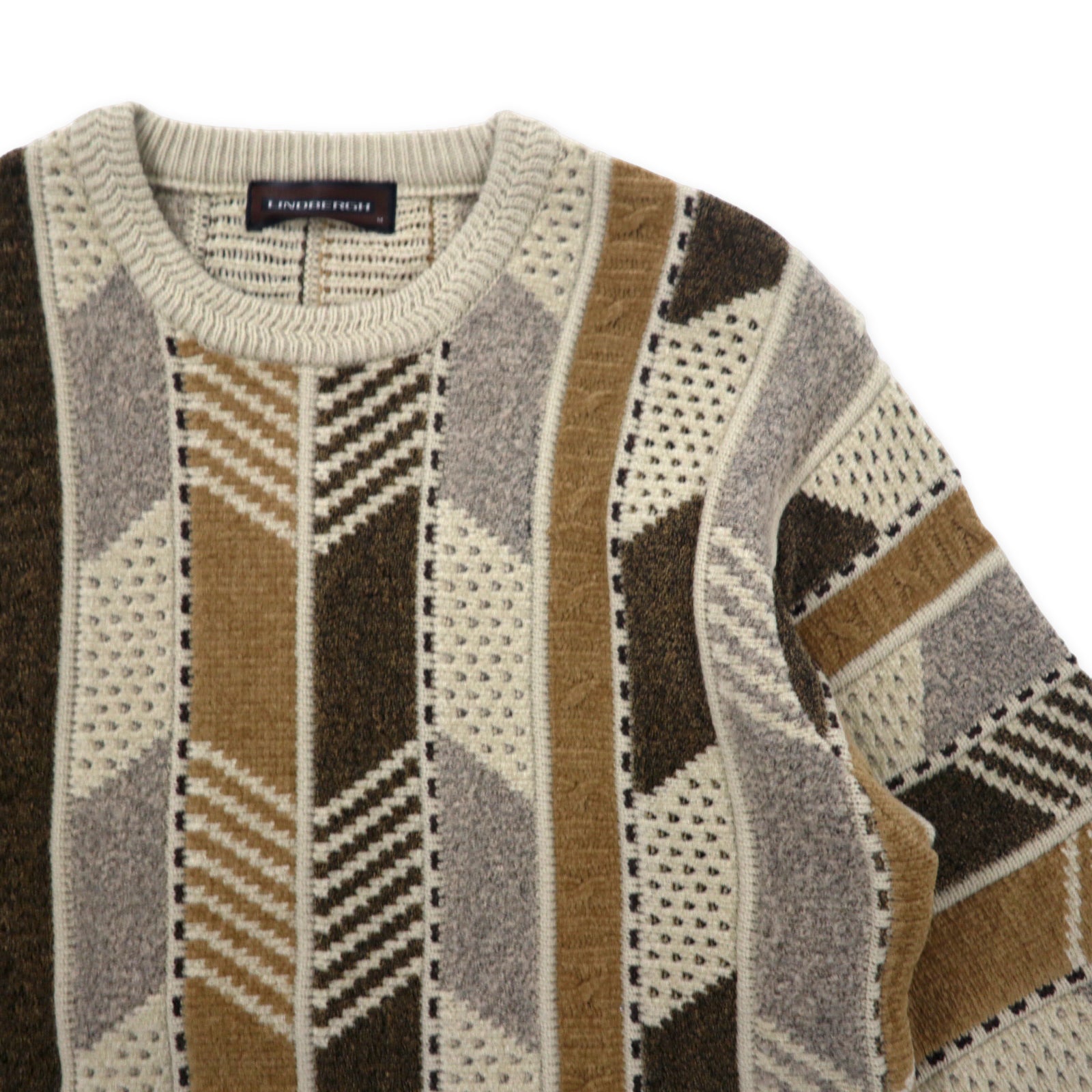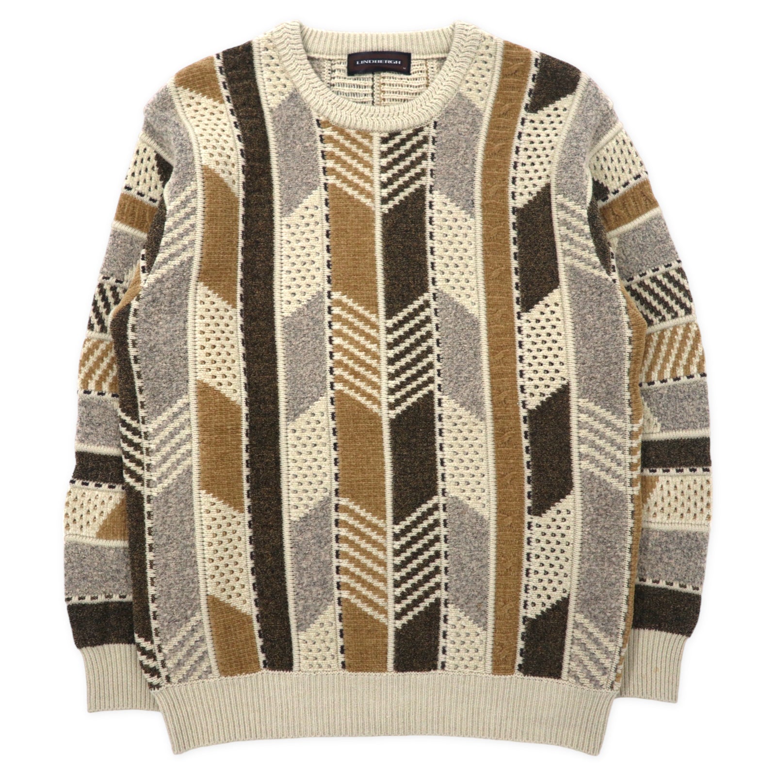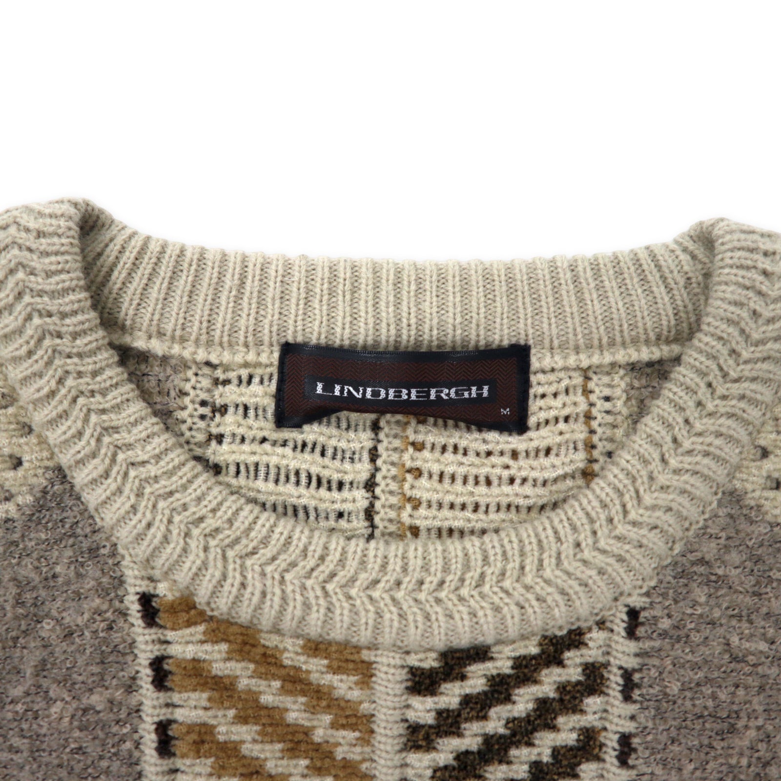LINDBERGH 3Dニット セーター M ベージュ アクリル 総柄 異素材切り替え