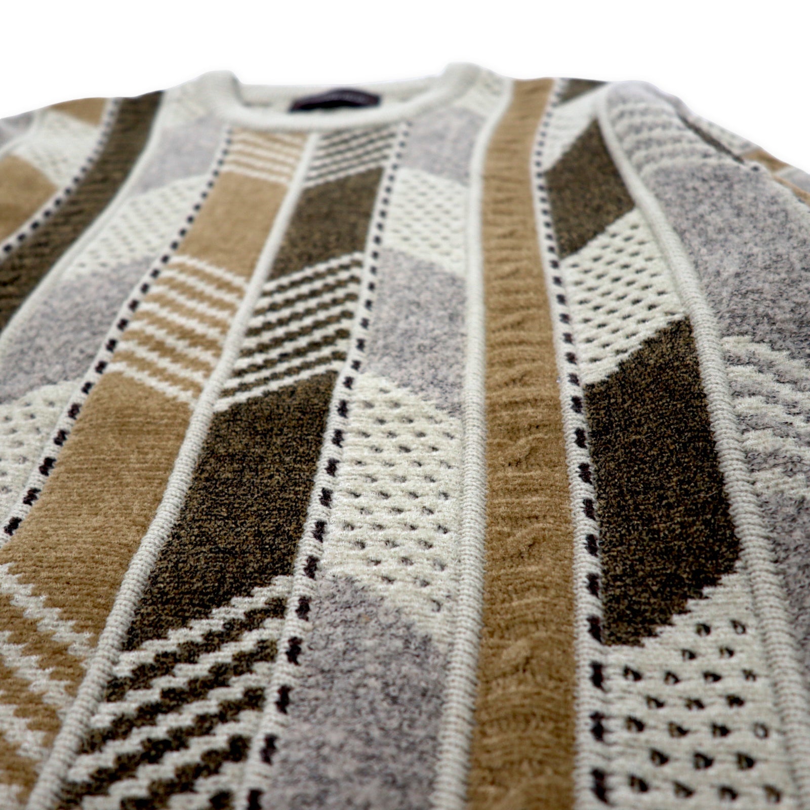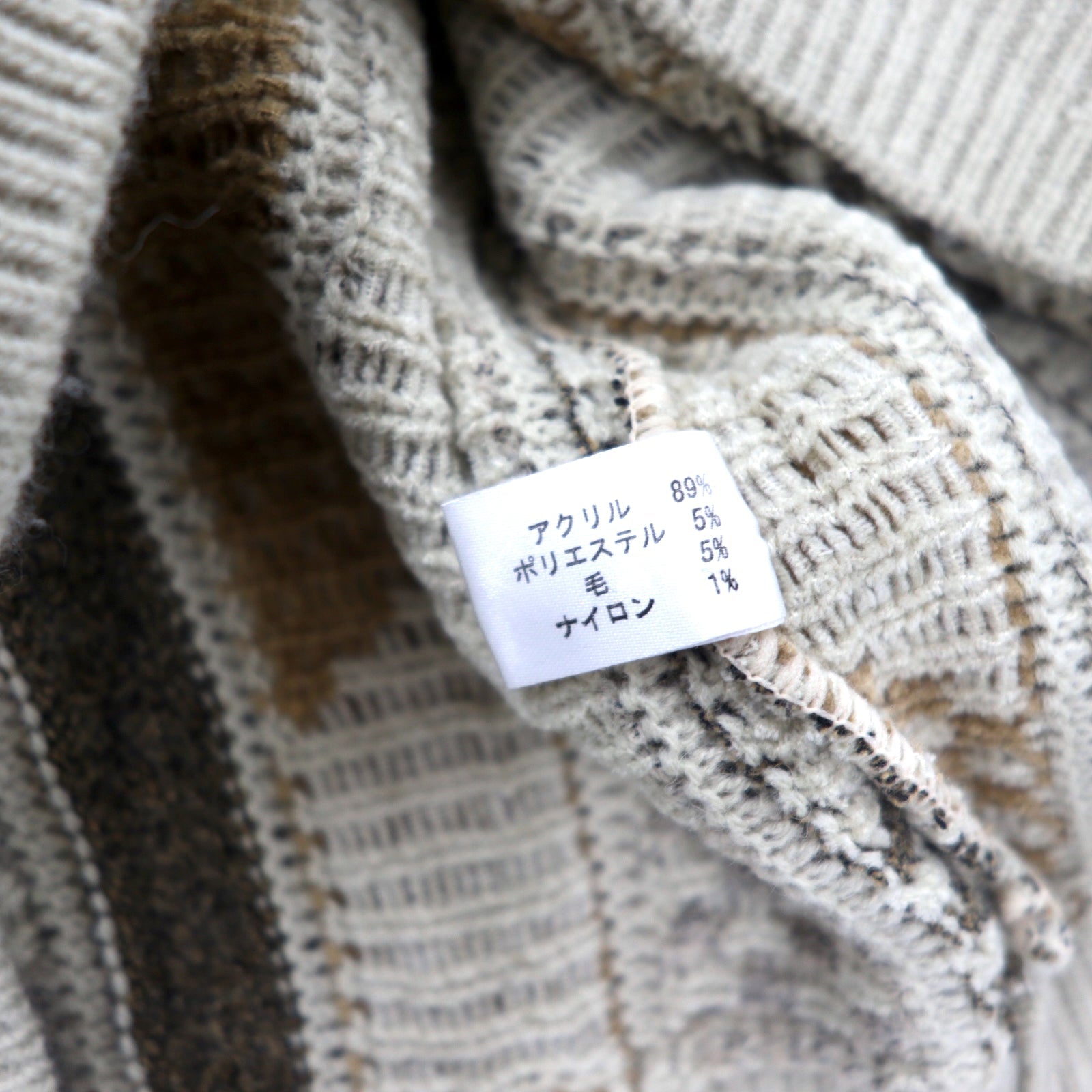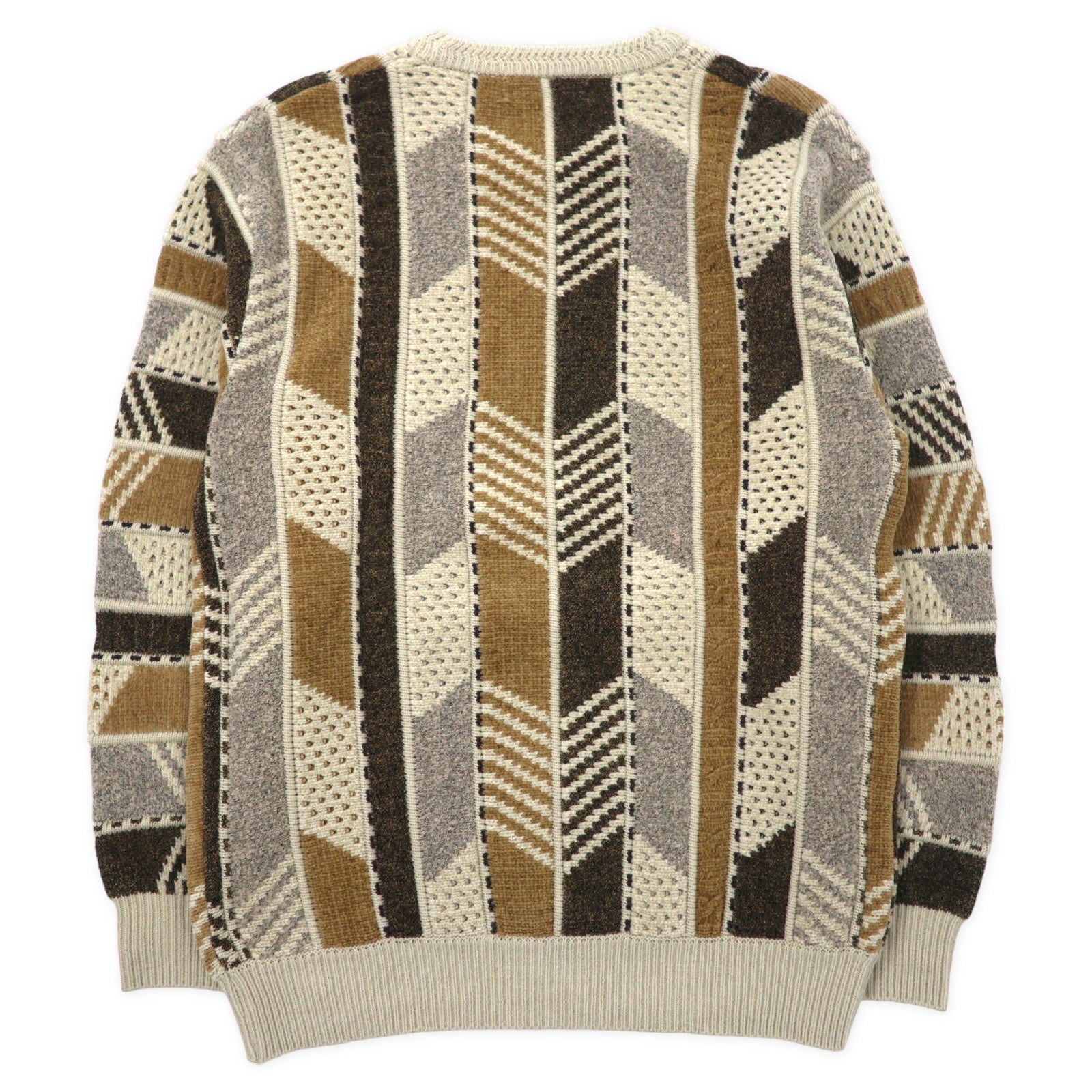 LINDBERGH 3Dニット セーター M ベージュ アクリル 総柄 異素材切り替え