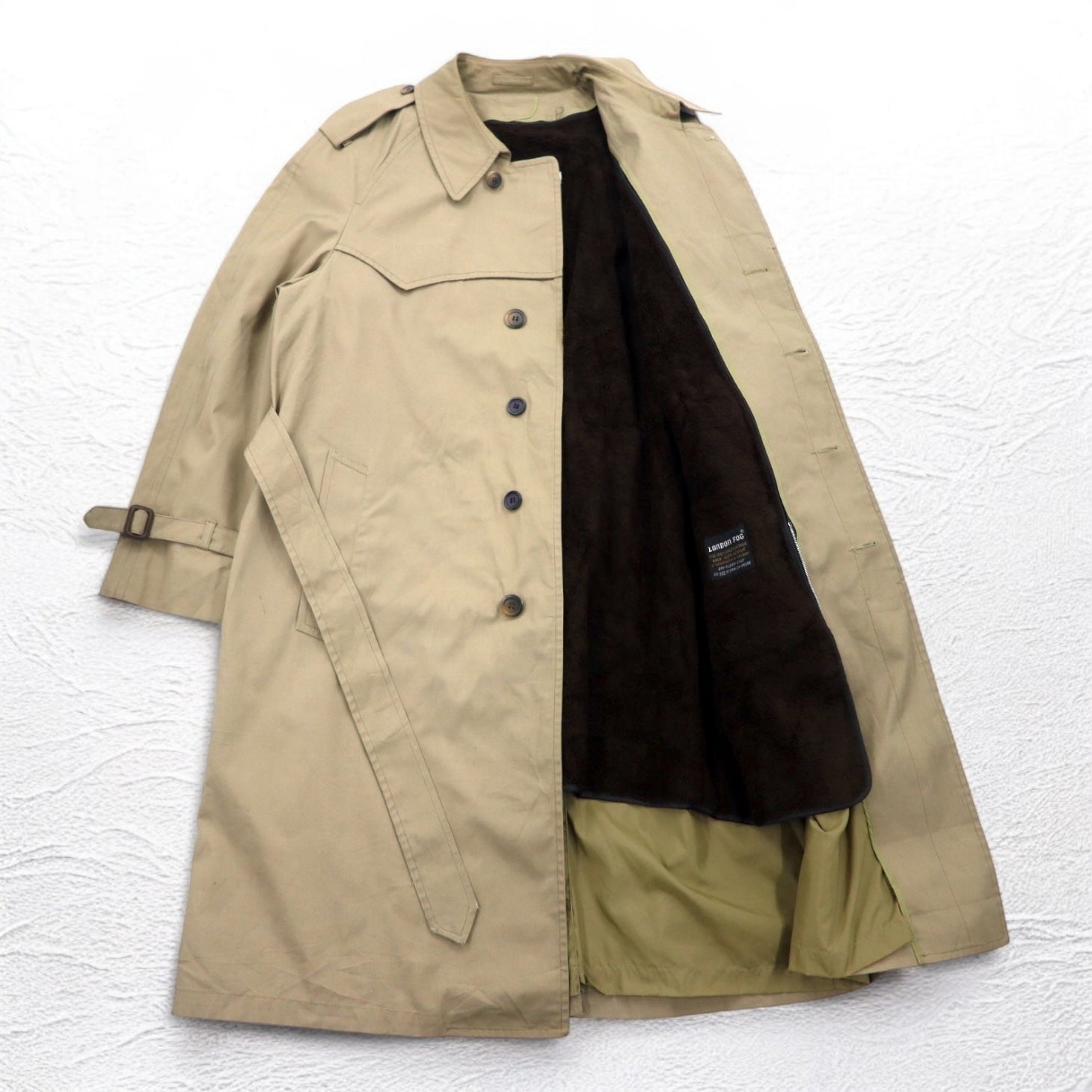 LONDON FOG ステンカラー トレンチコート XL ベージュ 比翼 エポレット ファーライナー着脱式 ベルト付き