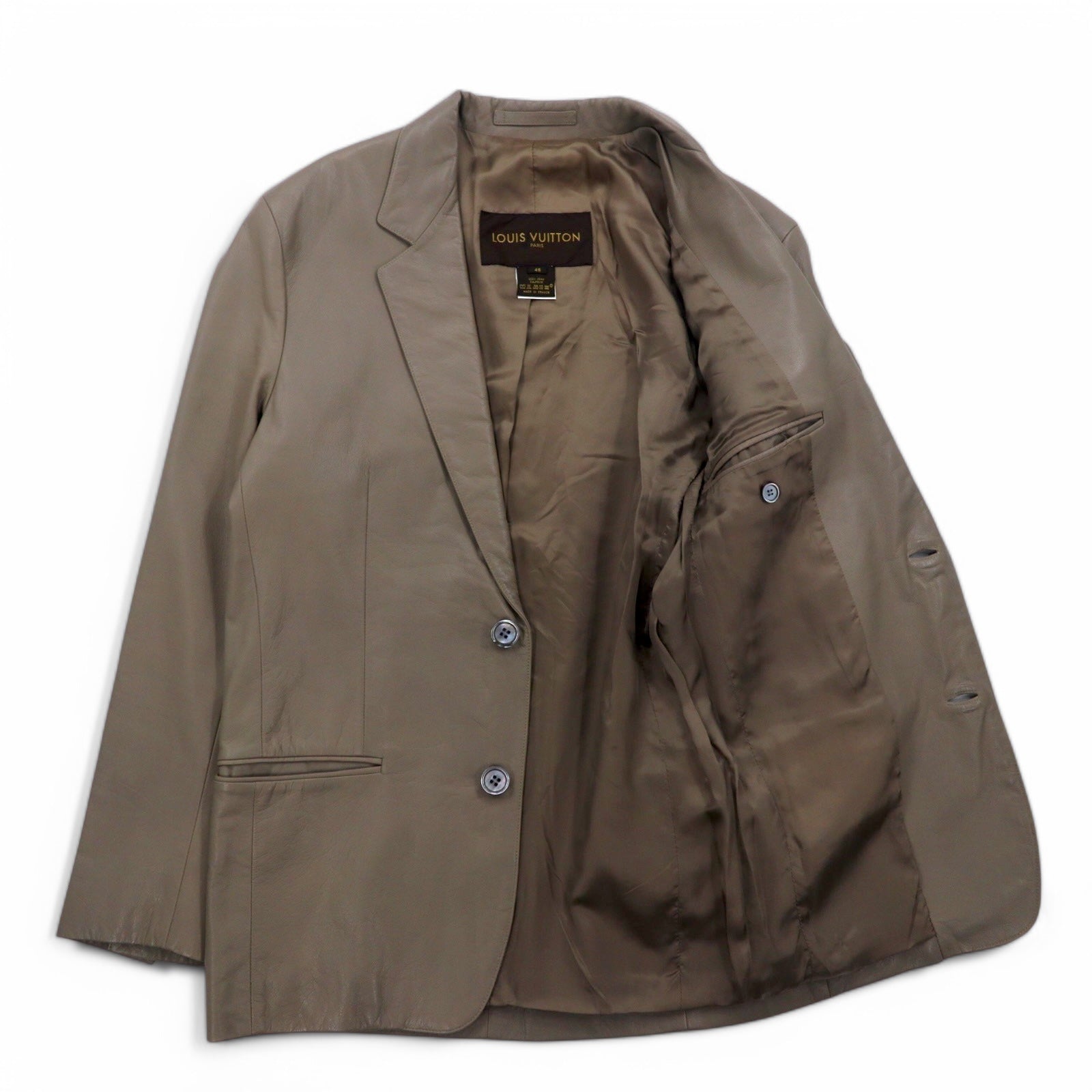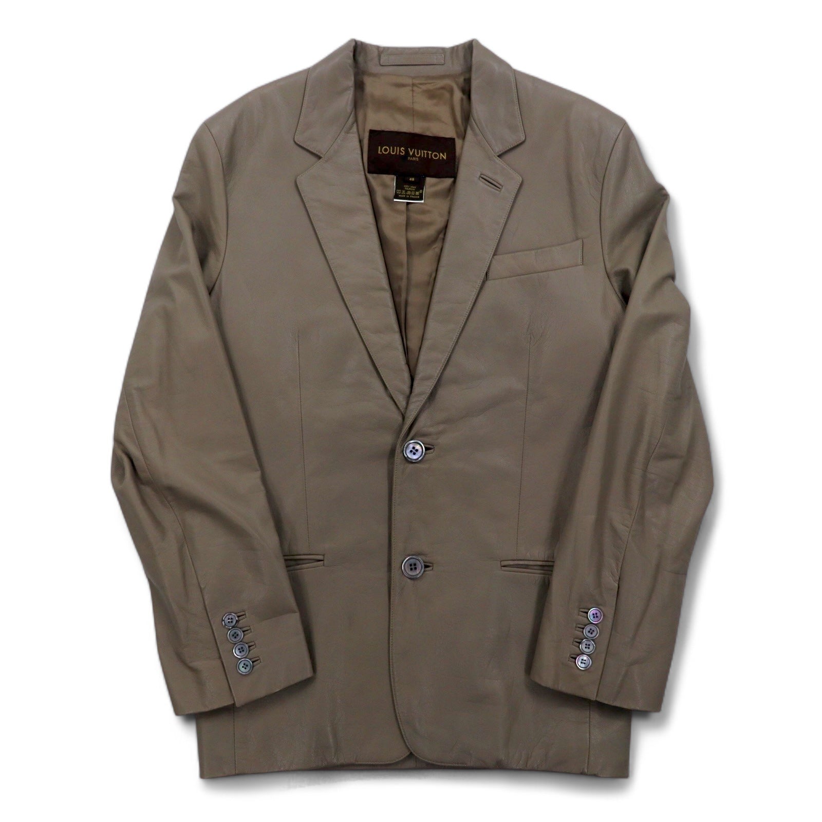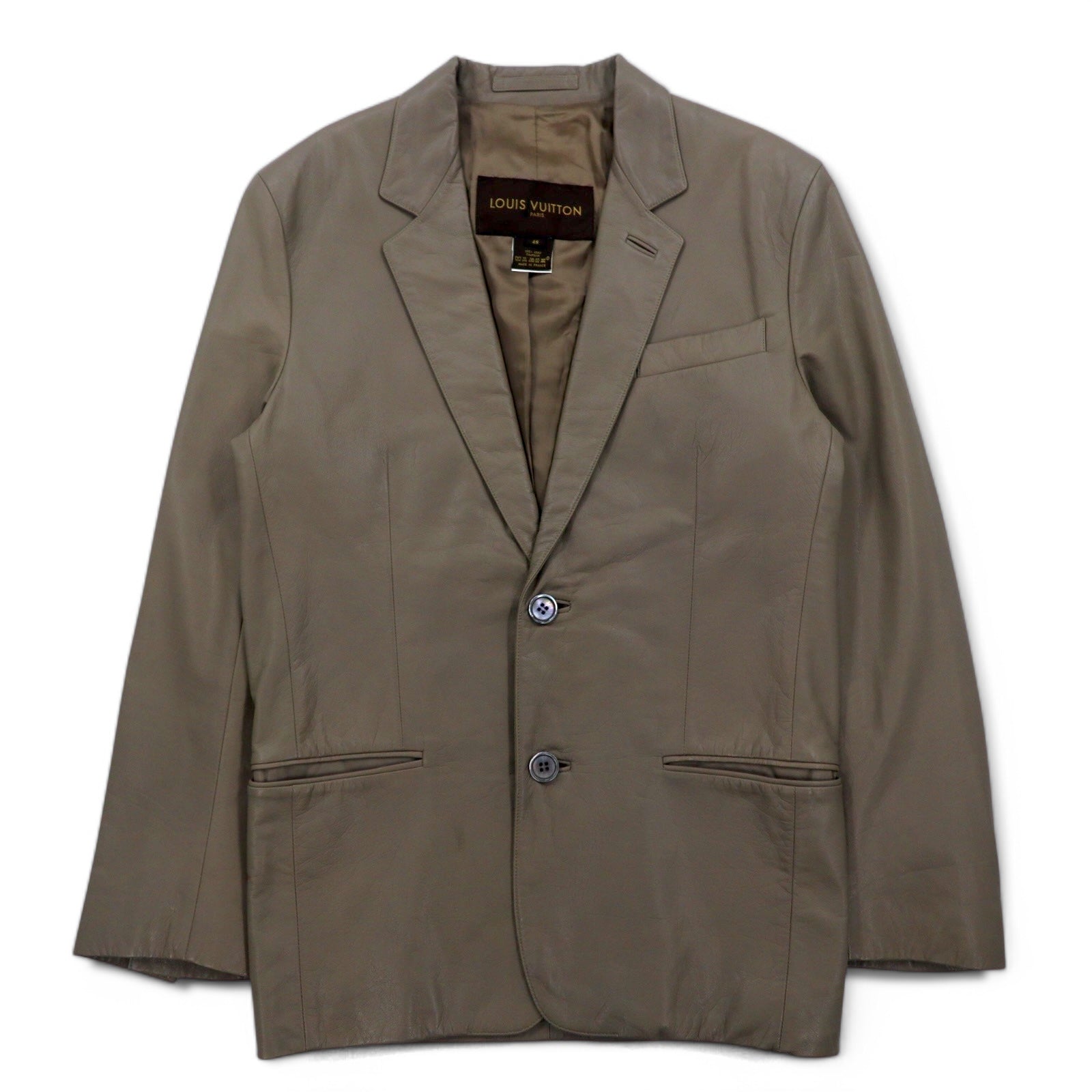 LOUIS VUITTON フランス製 カーフスキン 2B テーラードジャケット L ベージュ 牛革 LVJ 正規代理店