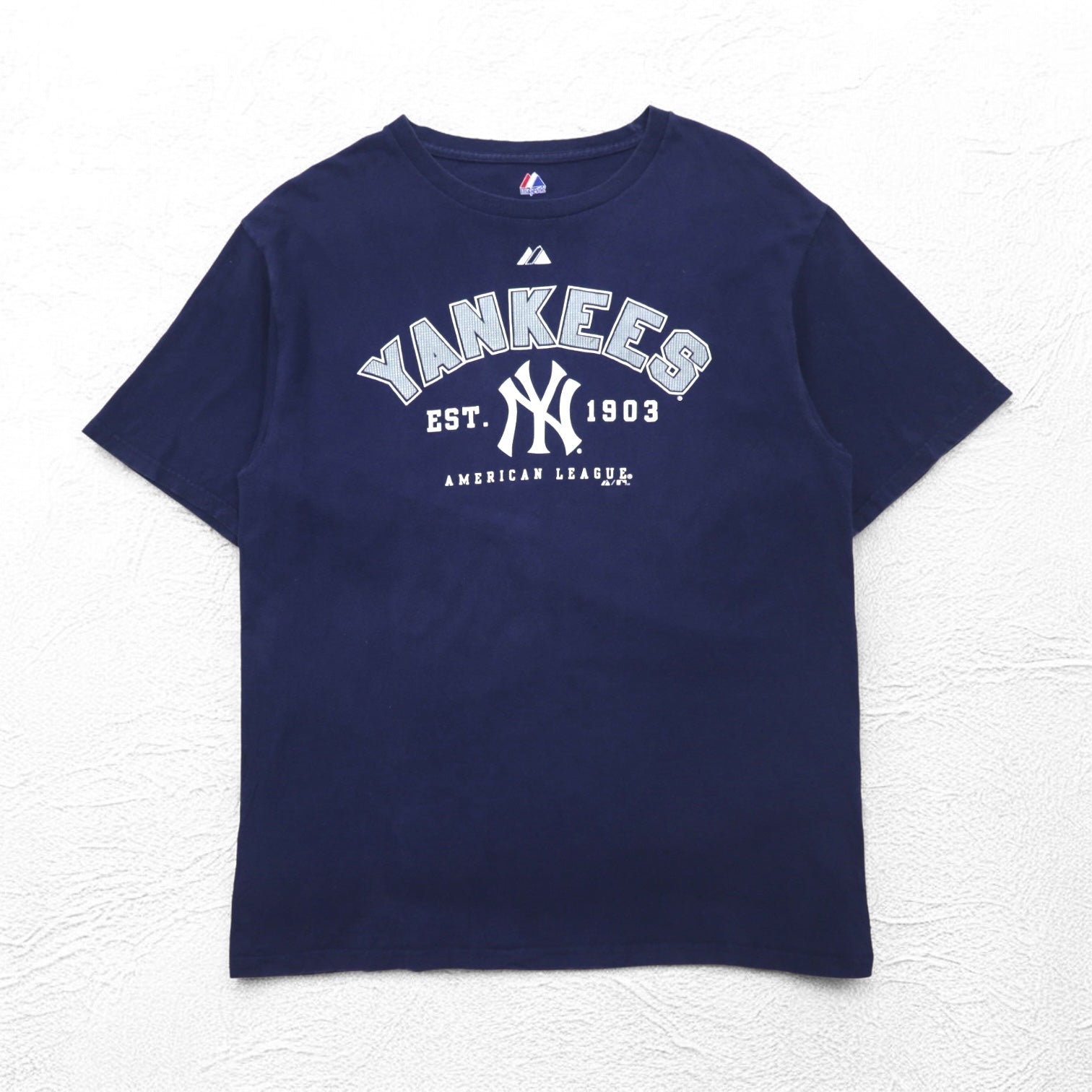 majestic ベースボール プリント Tシャツ L ネイビー MLB NEWYORK YANKEES ホンジュラス製