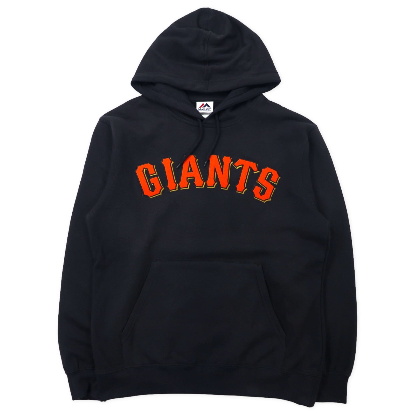 Majestic ベースボール プルオーバーパーカー M ブラック コットン 裏起毛 パキ綿 MLB GIANTS