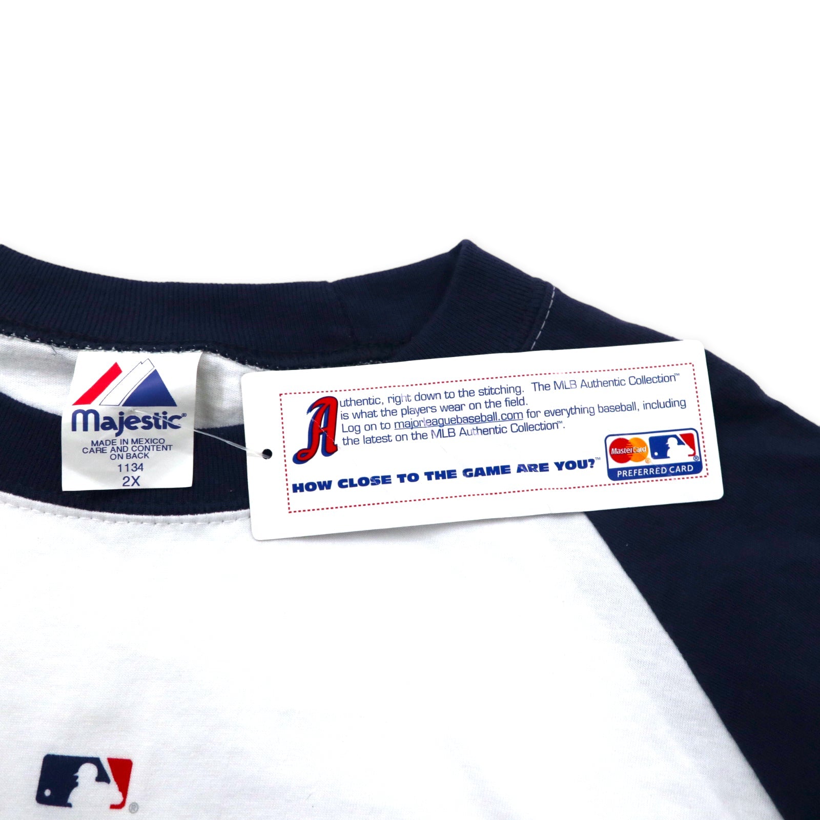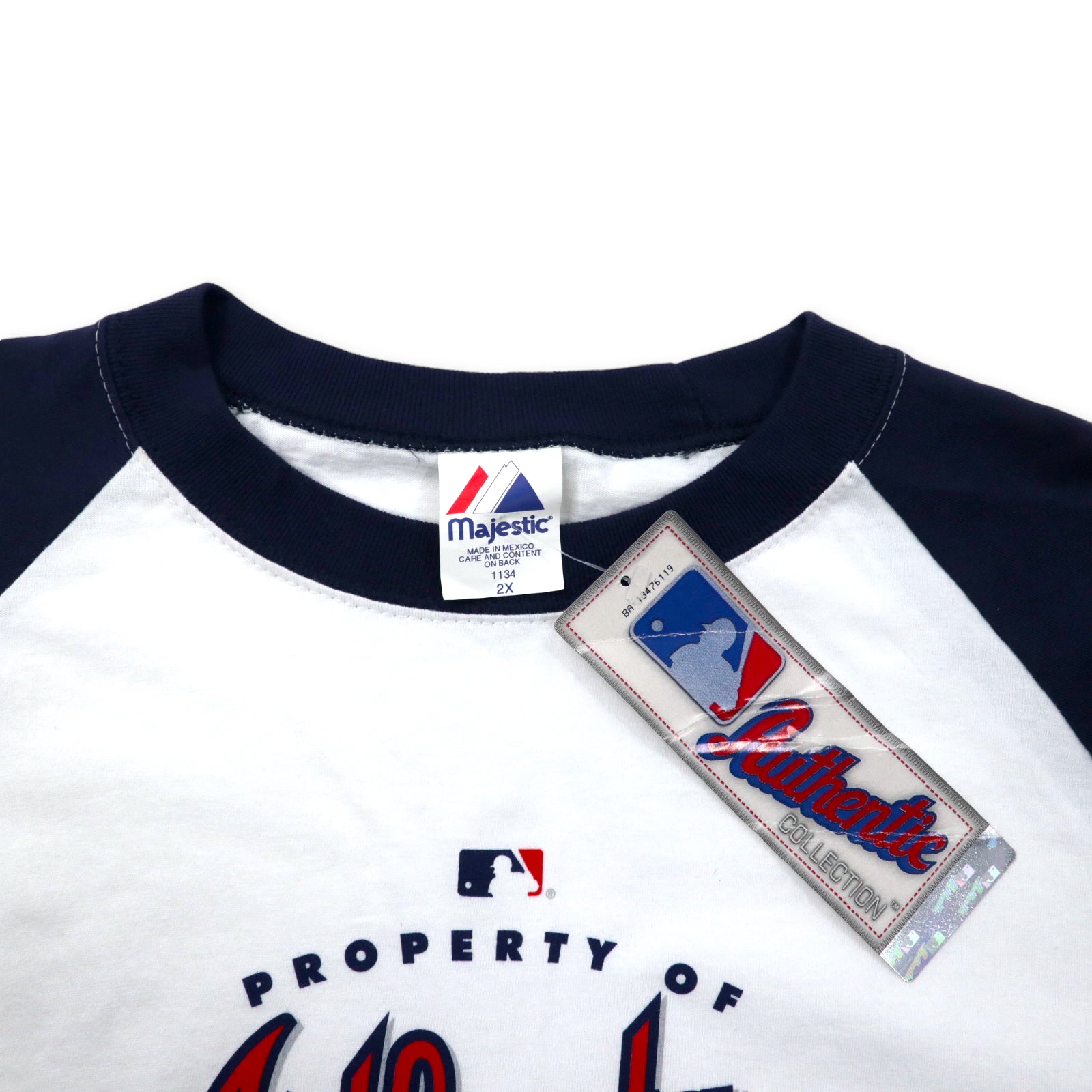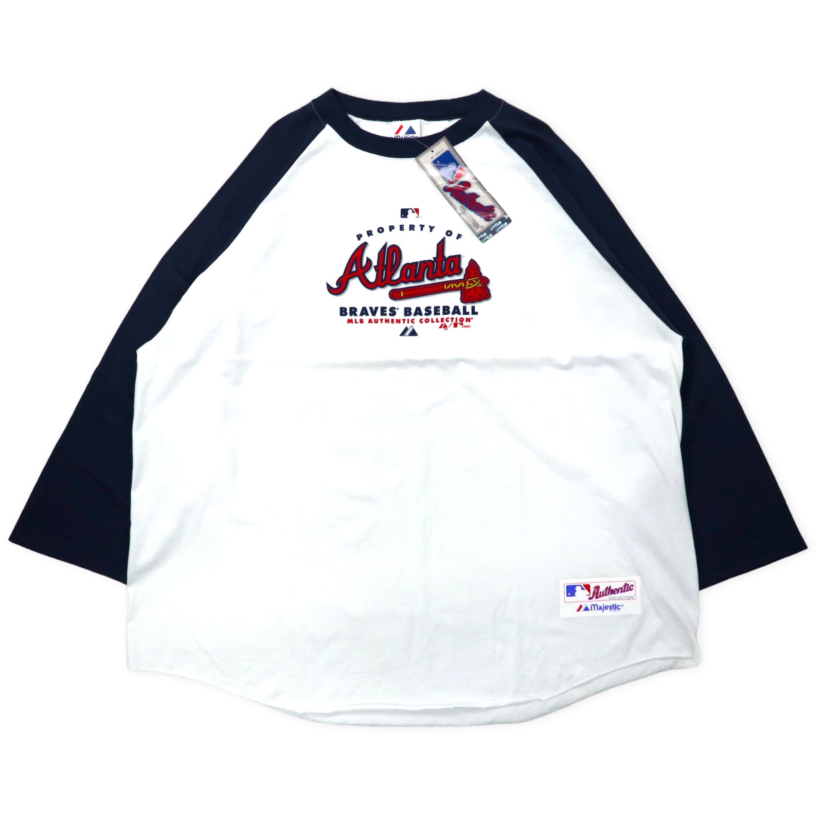 majestic 00年代 MLB AUTHENTIC COLLECTION ベースボール ラグランTシャツ 2X ホワイト ネイビー コットン Atlanta ビッグサイズ メキシコ製 未使用品