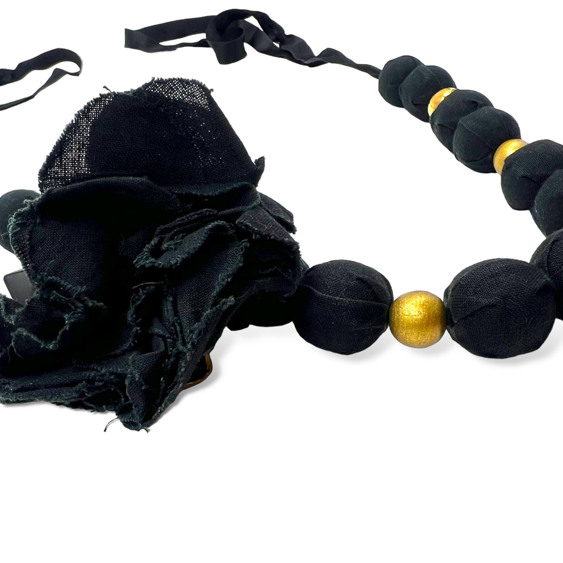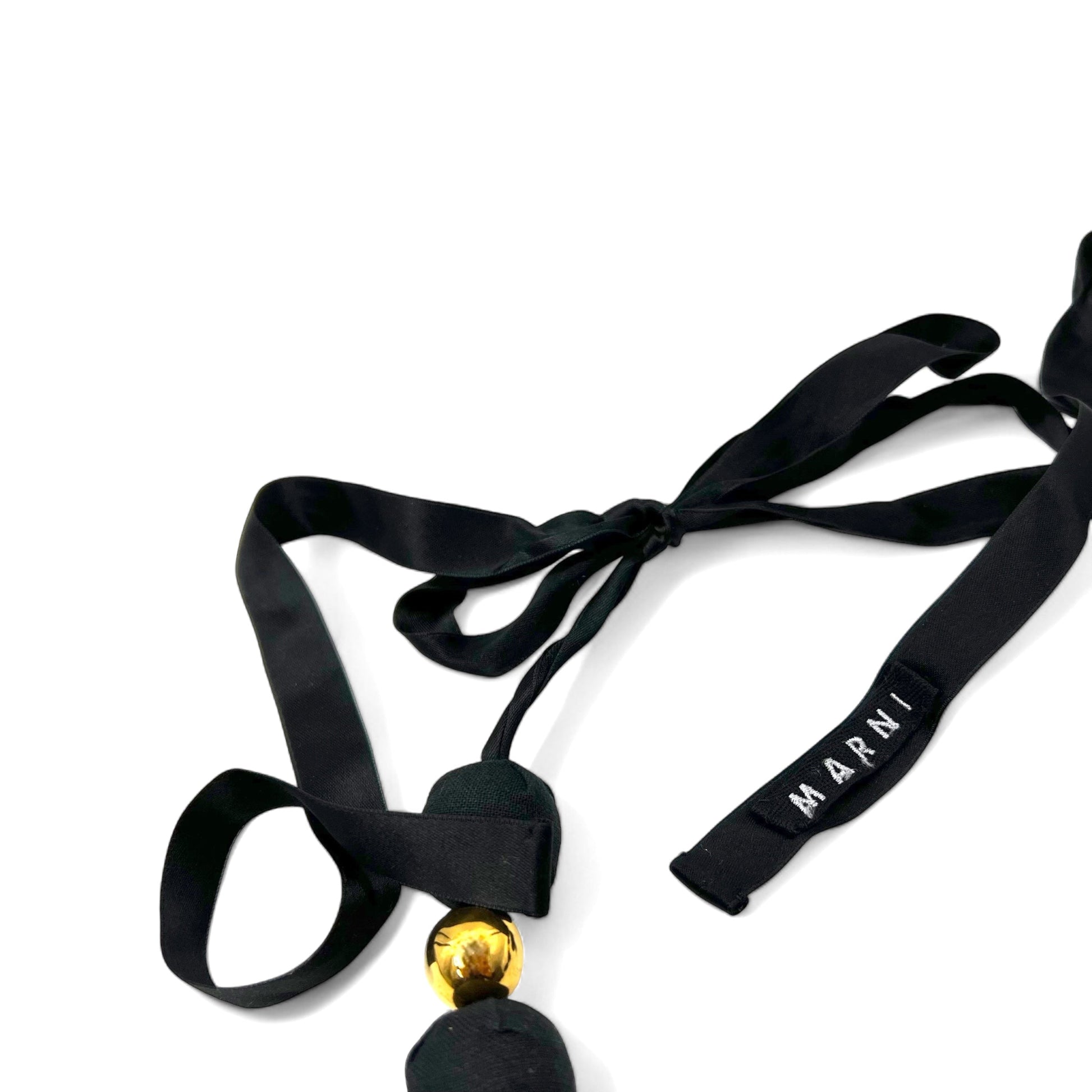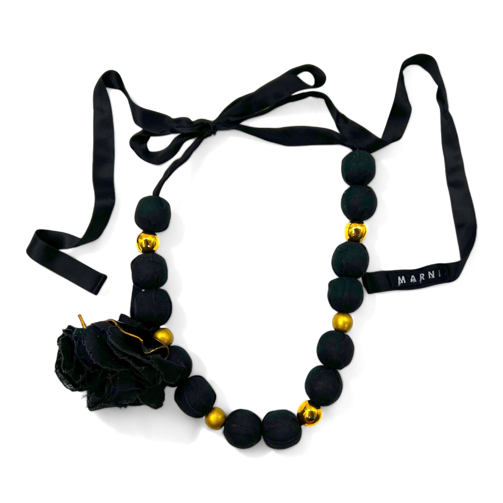 MARNI リボン フラワー ネックレス チョーカー ブラック ゴールド