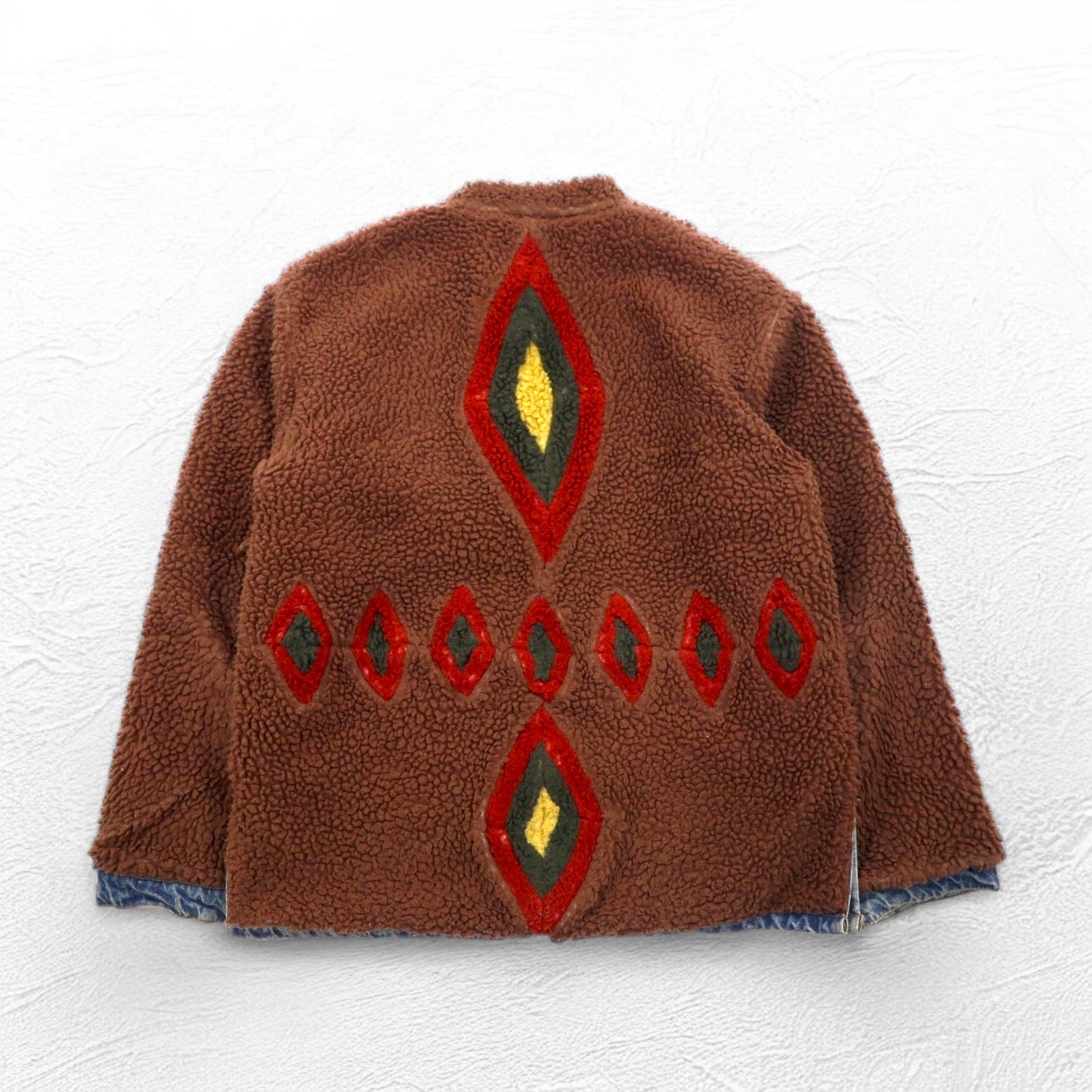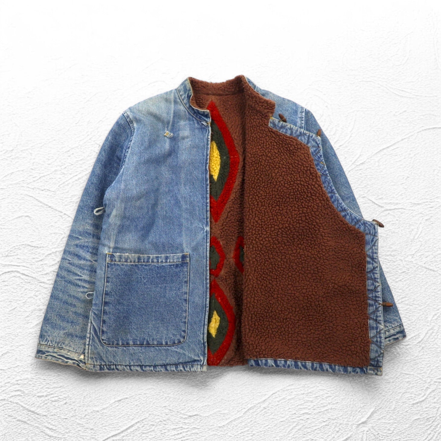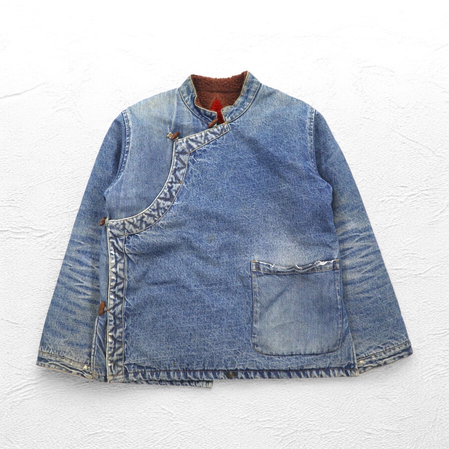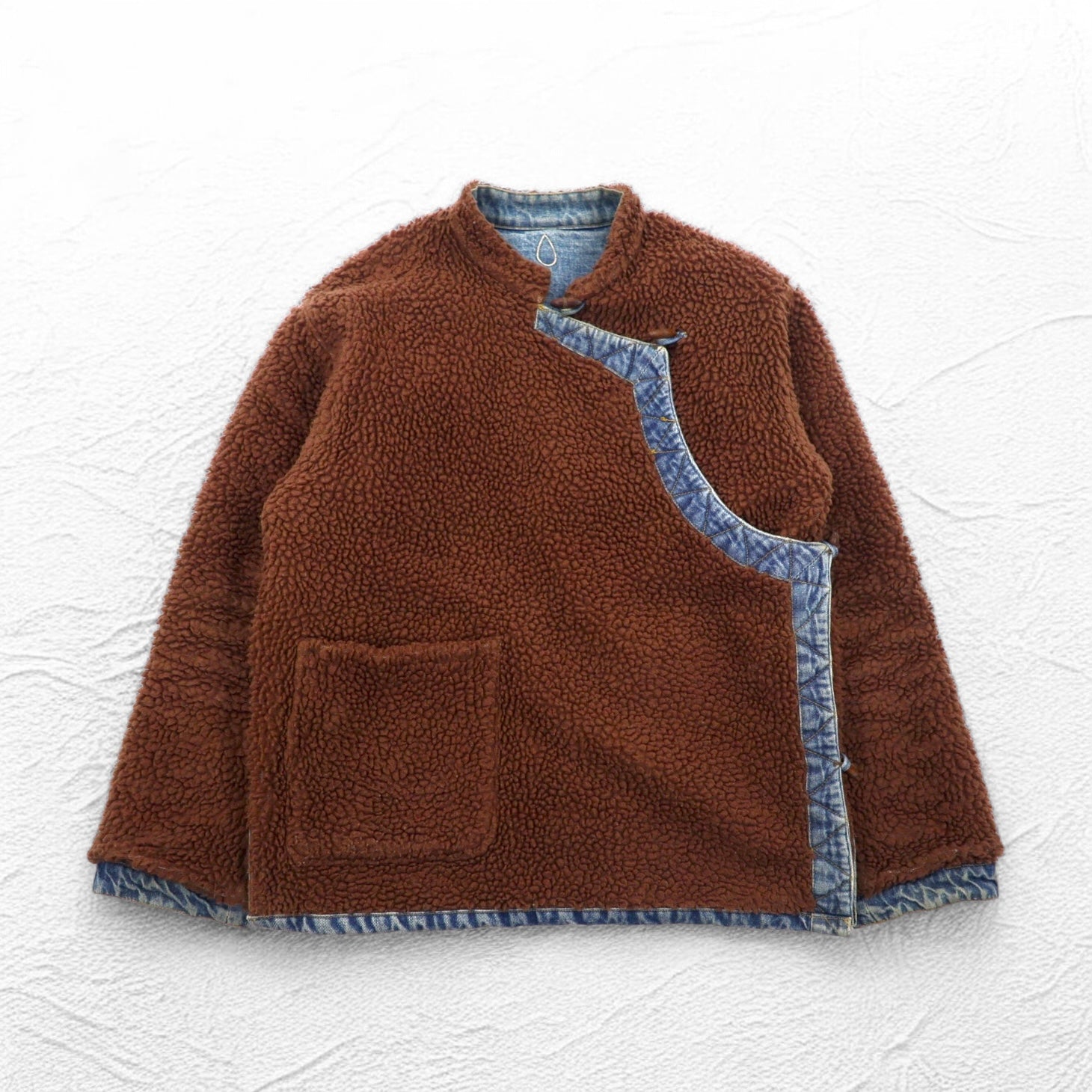MASH × Phatee チベタンジャケット リバーシブル 作務衣 ボア デニムジャケット M ブルー ブラウン