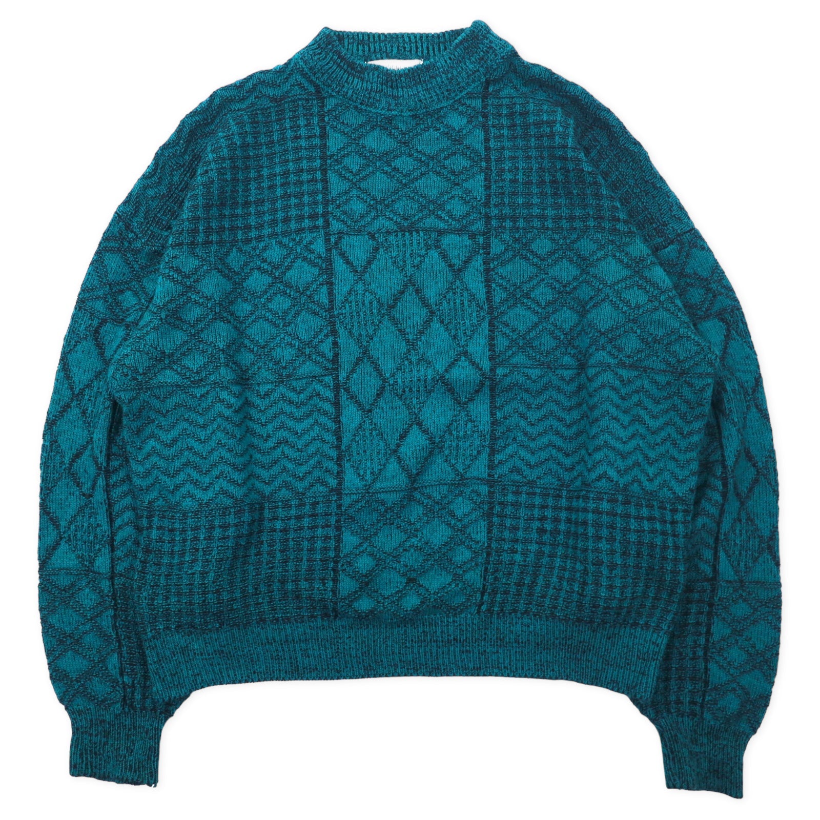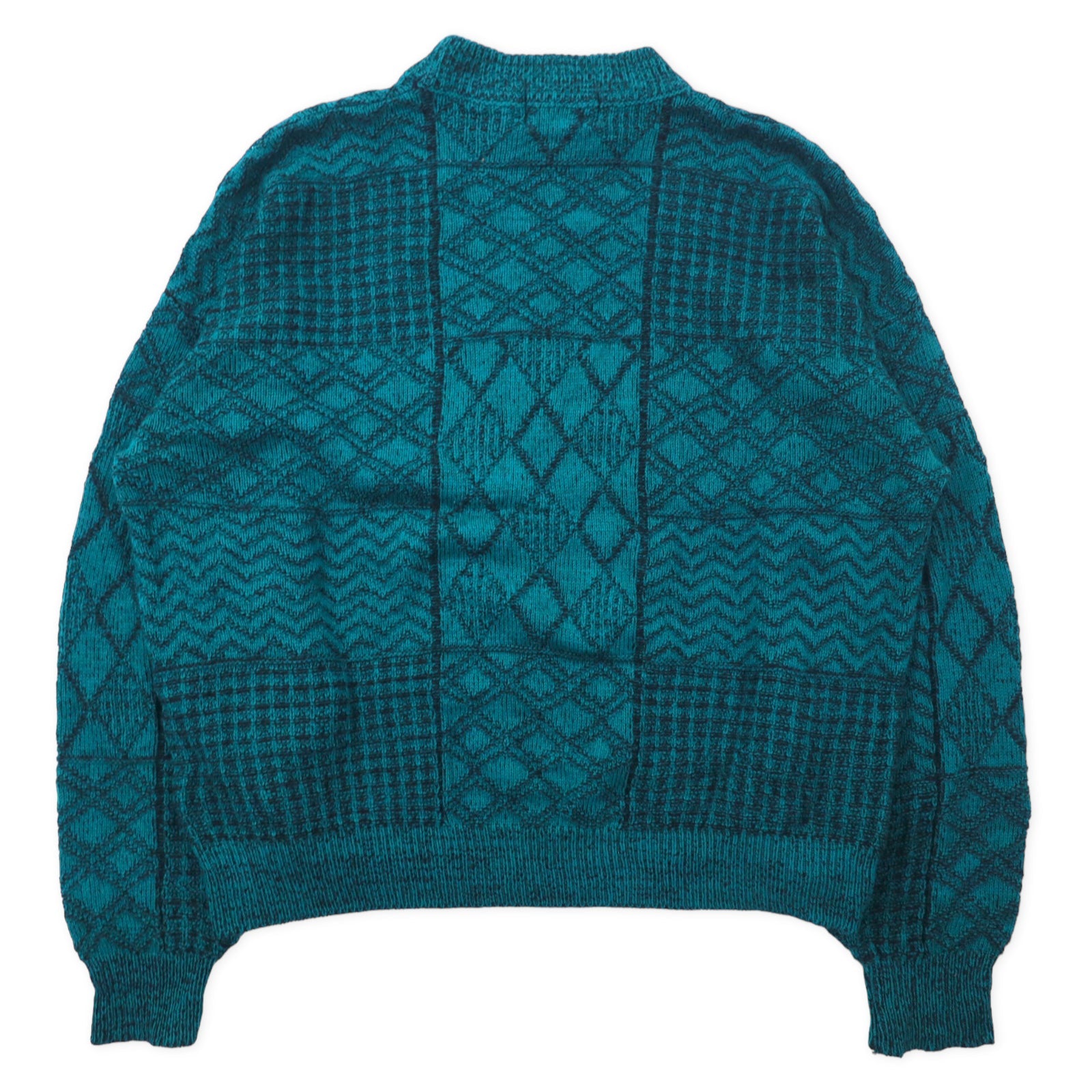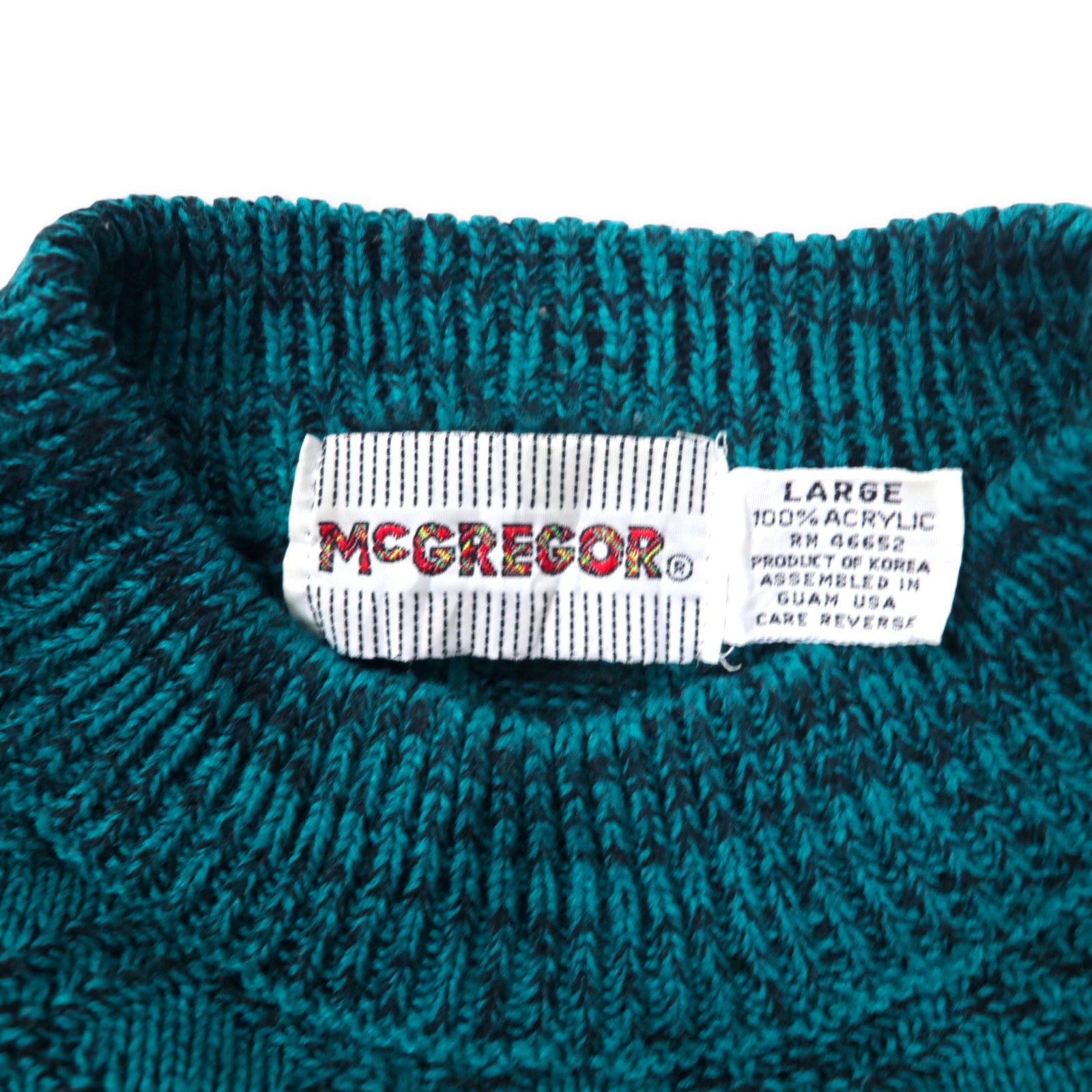 McGREGOR 80年代 ボトルネック ローゲージニット セーター L グリーン アクリル 総柄 クレイジーパターン