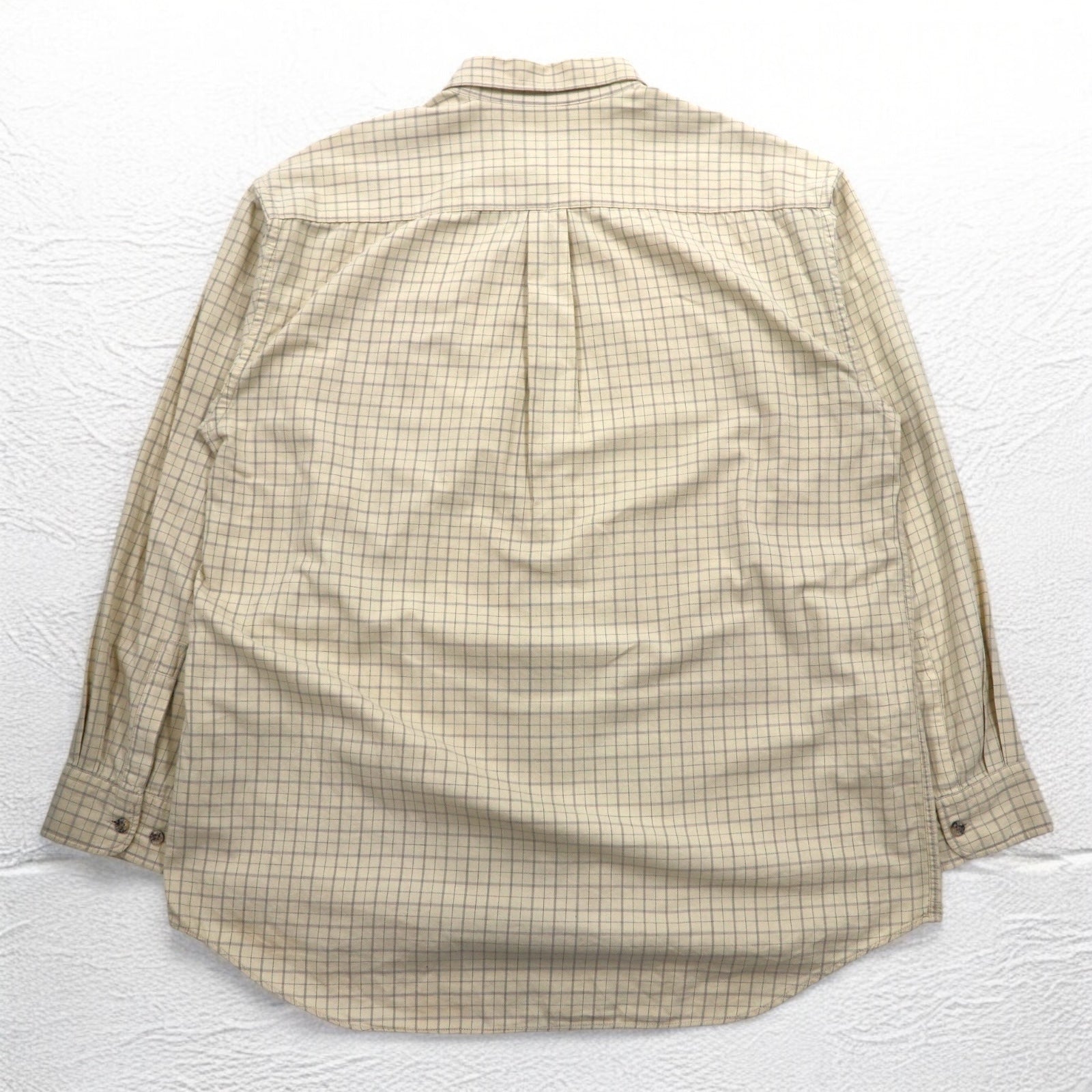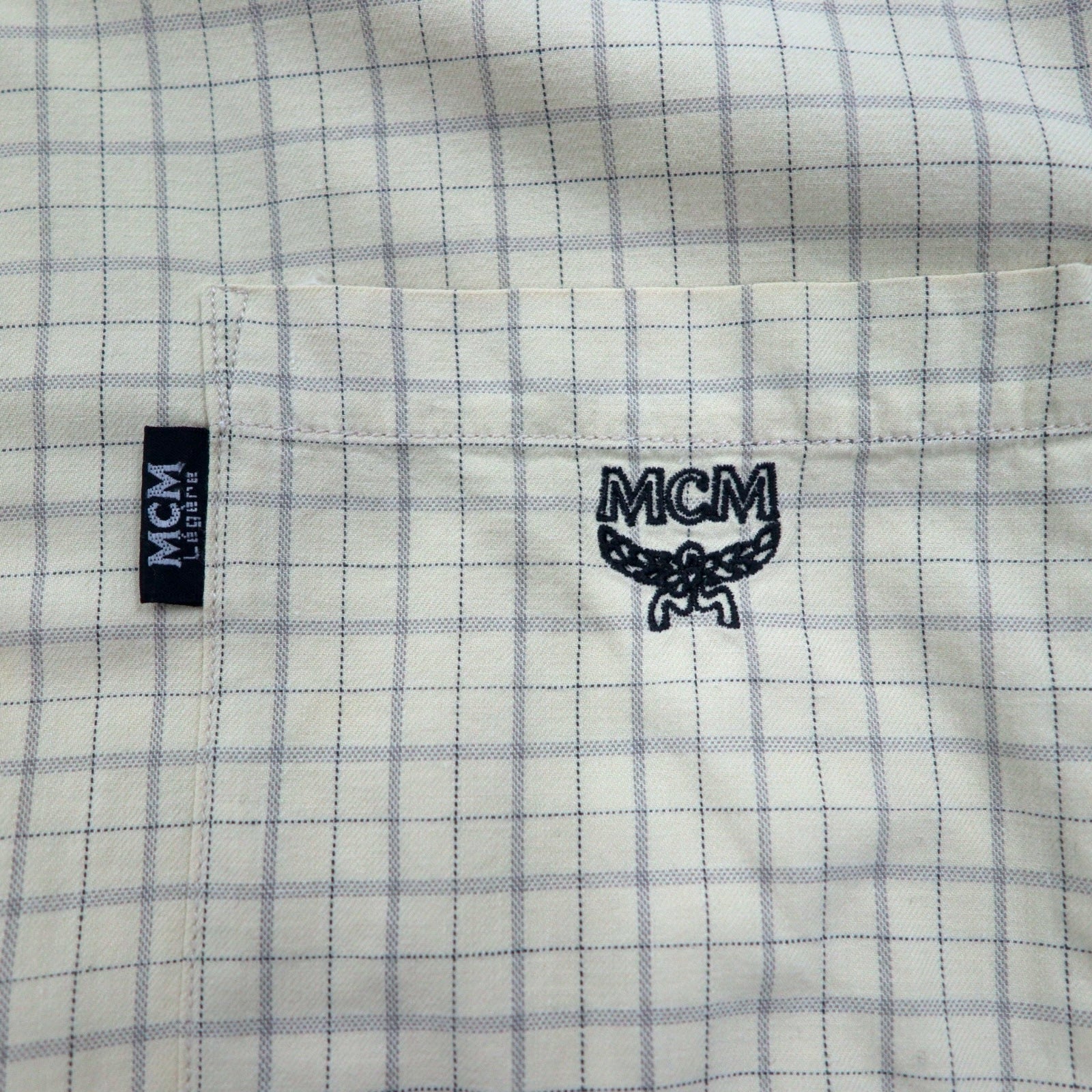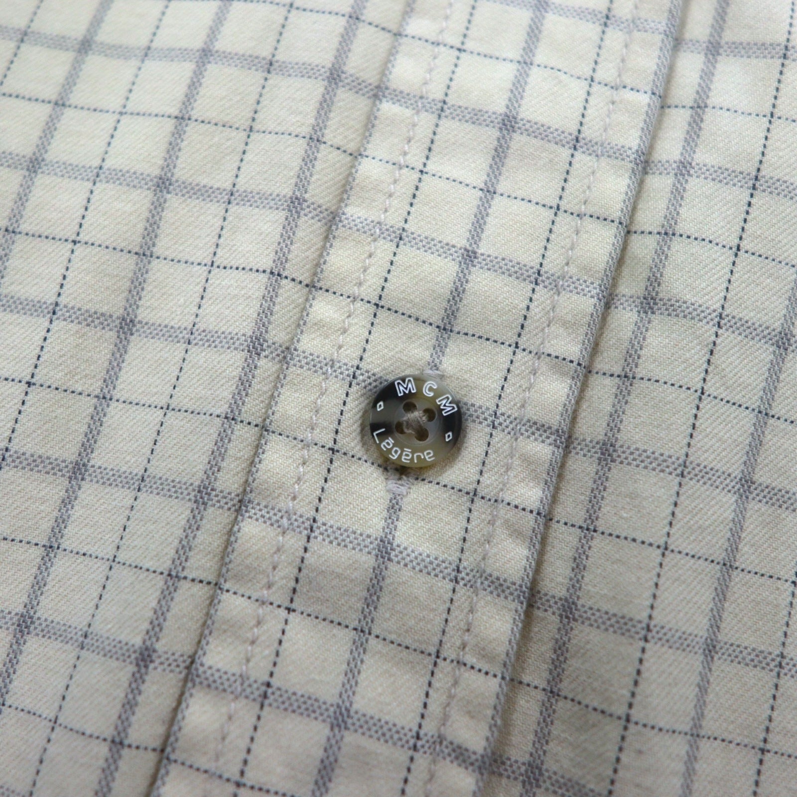 MCM ボタンダウンシャツ XL ベージュ チェック コットン 胸ポケット ワンポイントロゴ刺繍