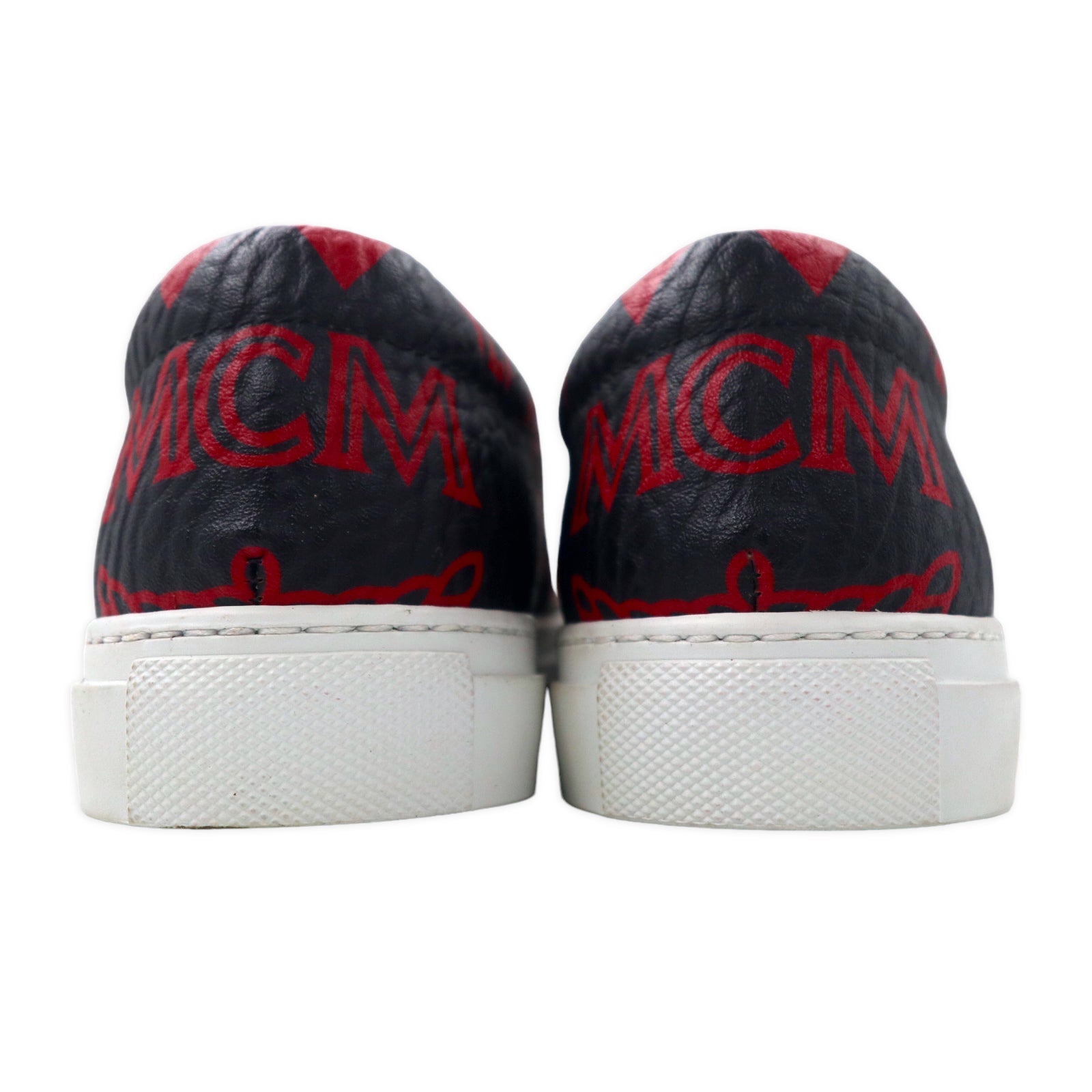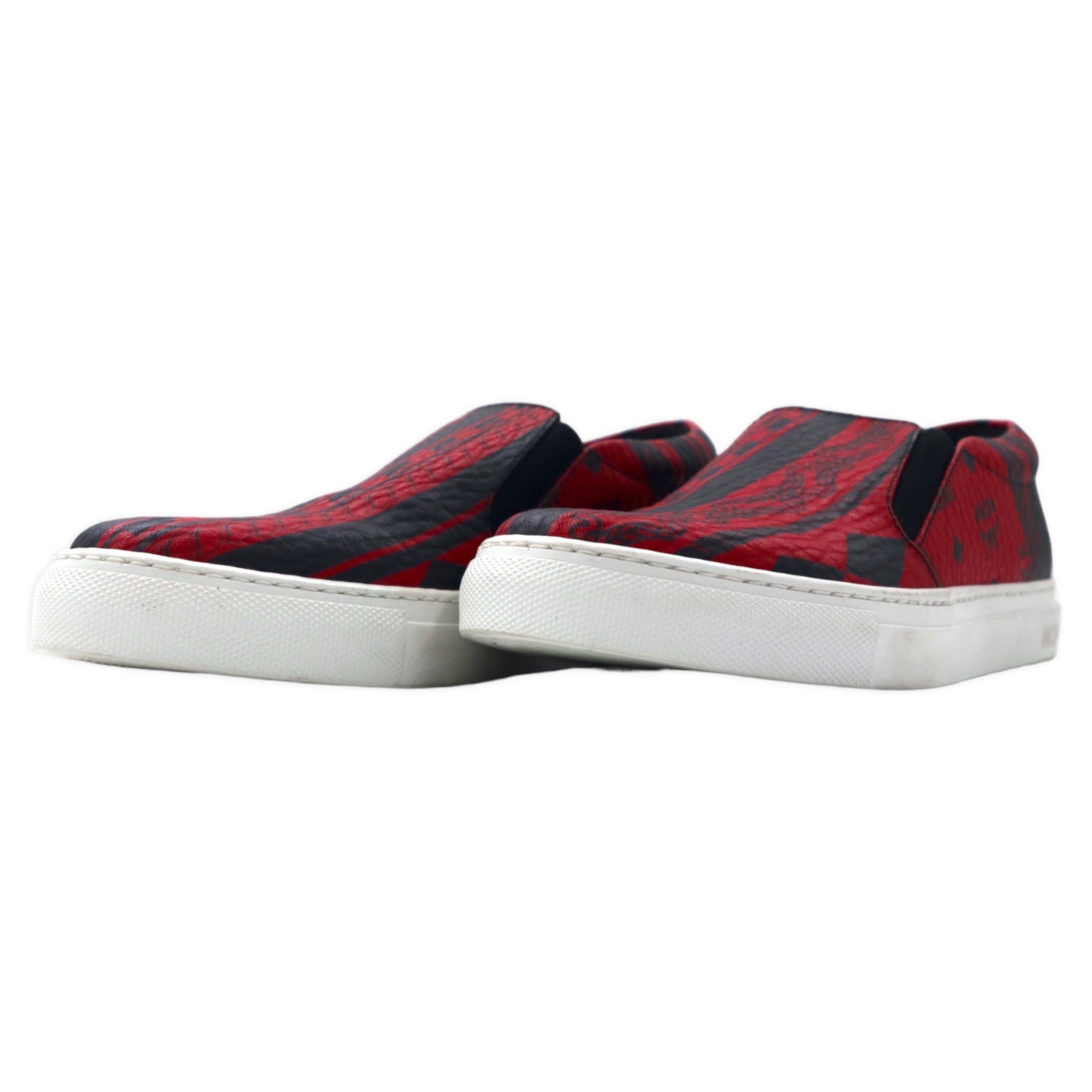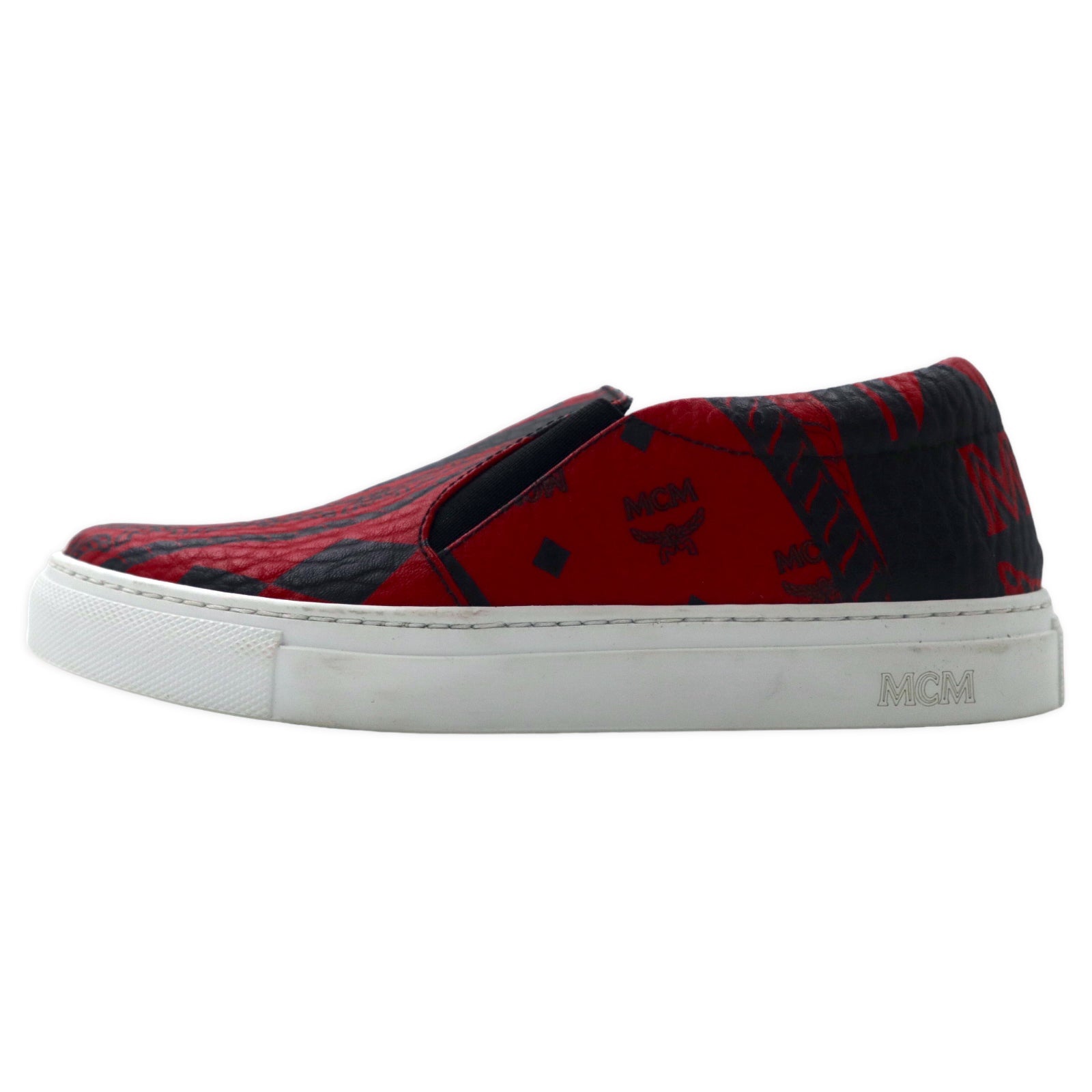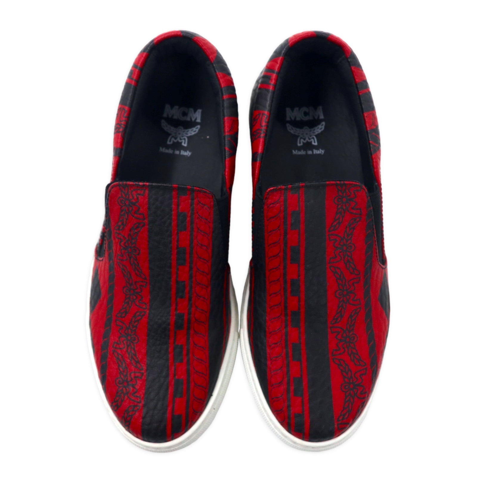 MCM スリッポン レザースニーカー 23cm レッド ロゴ総柄 ヴィセトス柄 イタリア製