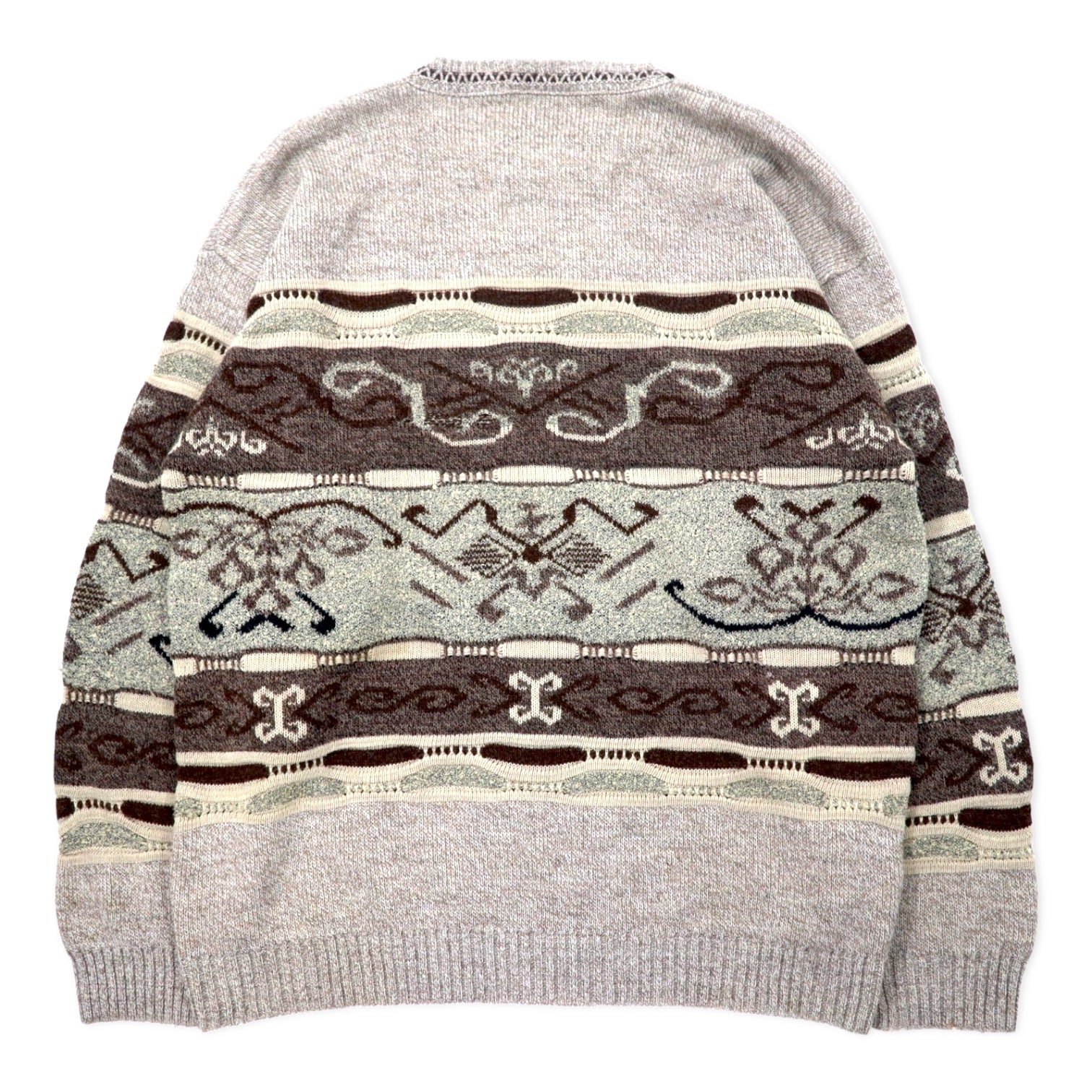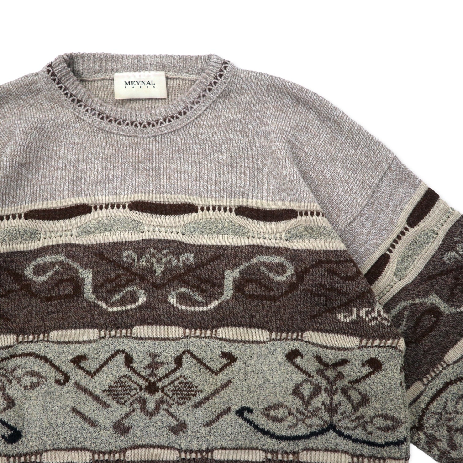 MEYNAL フランス製 3D ニット セーター XL ベージュ コットン 総柄