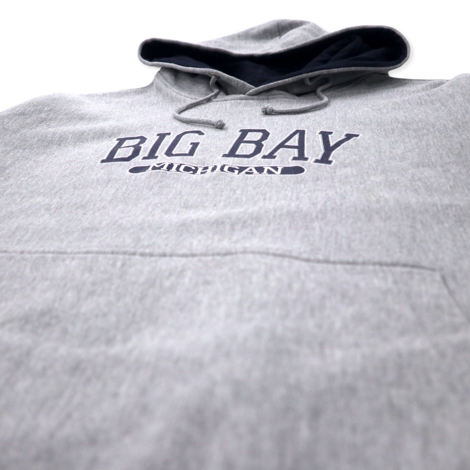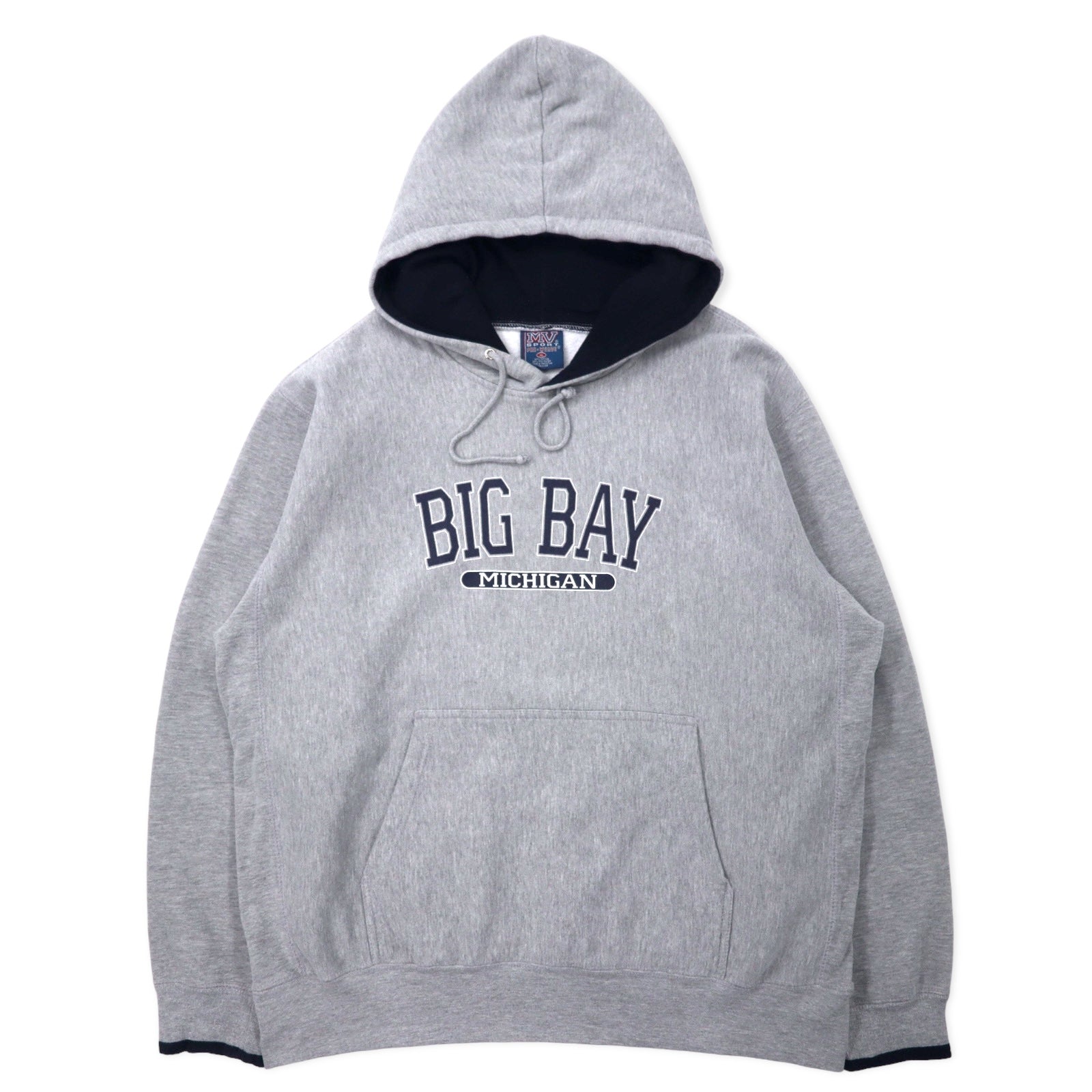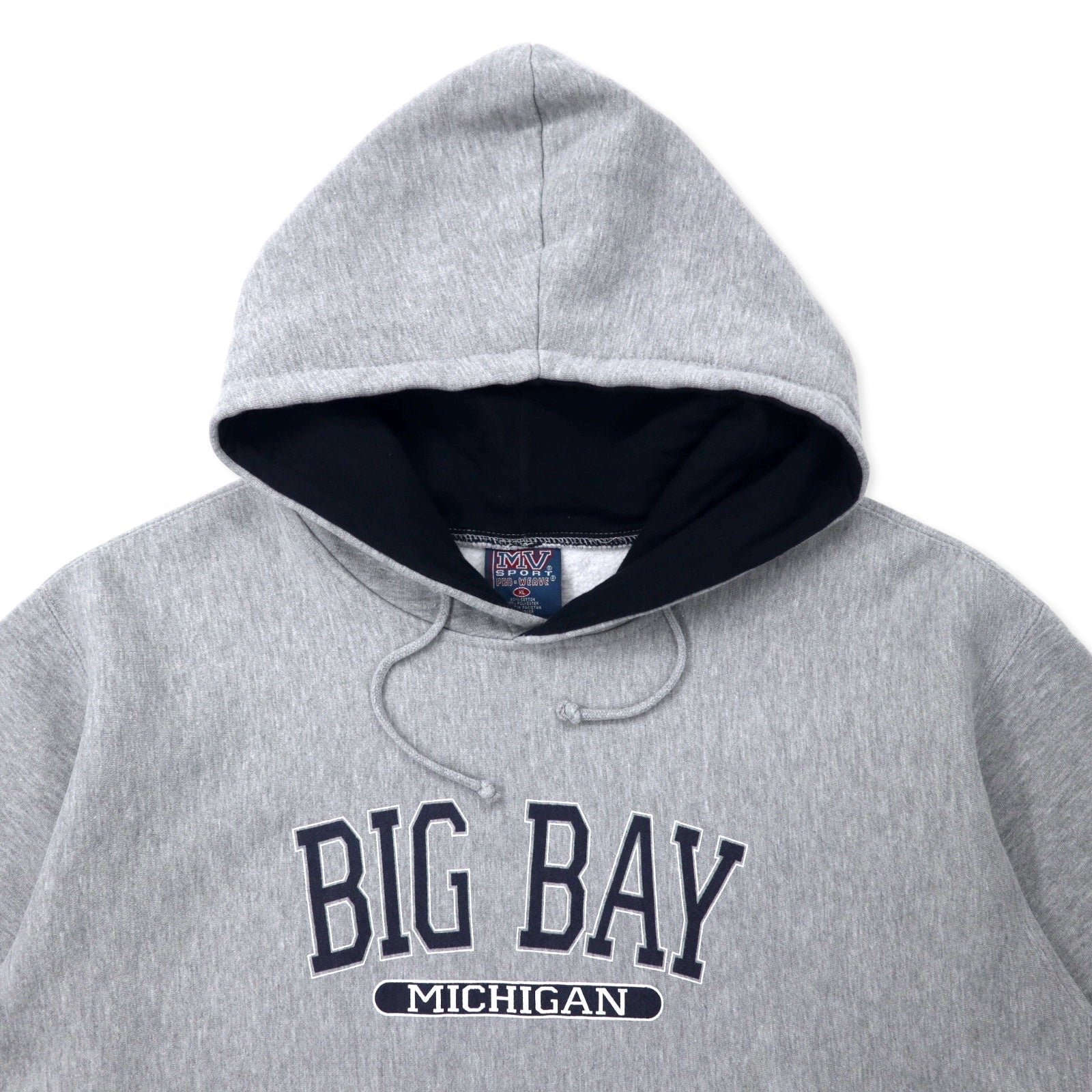 MV SPORT 90年代 リバースウィーブ パーカー XL グレー コットン 裏起毛 パキ綿 BIG BAY MICHIGAN カレッジプリント PRO-WEAVE ビッグサイズ
