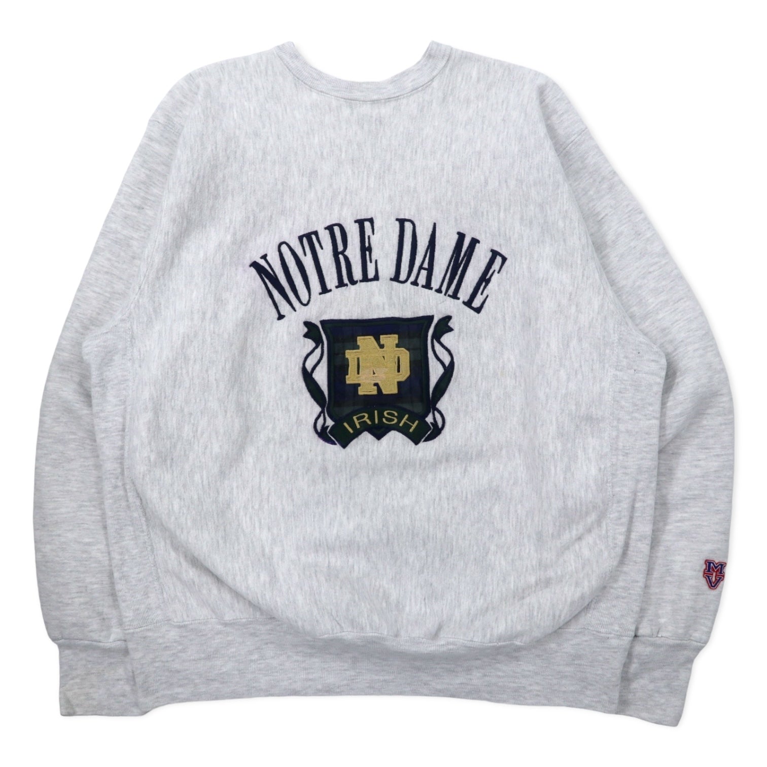 MV SPORT USA製 90年代 PRO WEAVE リバースウィーブ カレッジ刺繍 スウェット XL グレー コットン 裏起毛 NOTRE DAME アーチロゴ