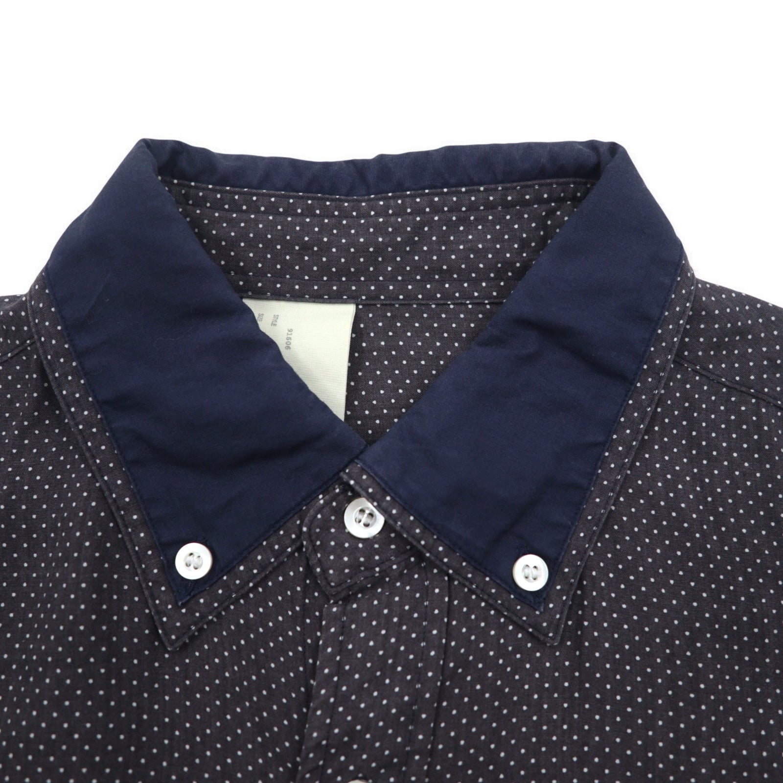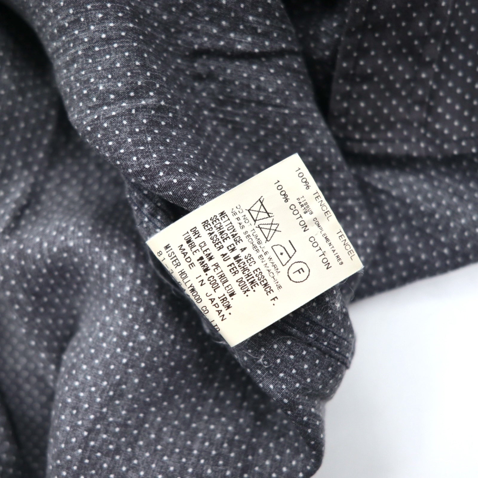 N.HOLLYWOOD レイヤードカラー ボタンダウンシャツ S グレー ドット柄 テンセル 91606 132-SH08 pieces 日本製