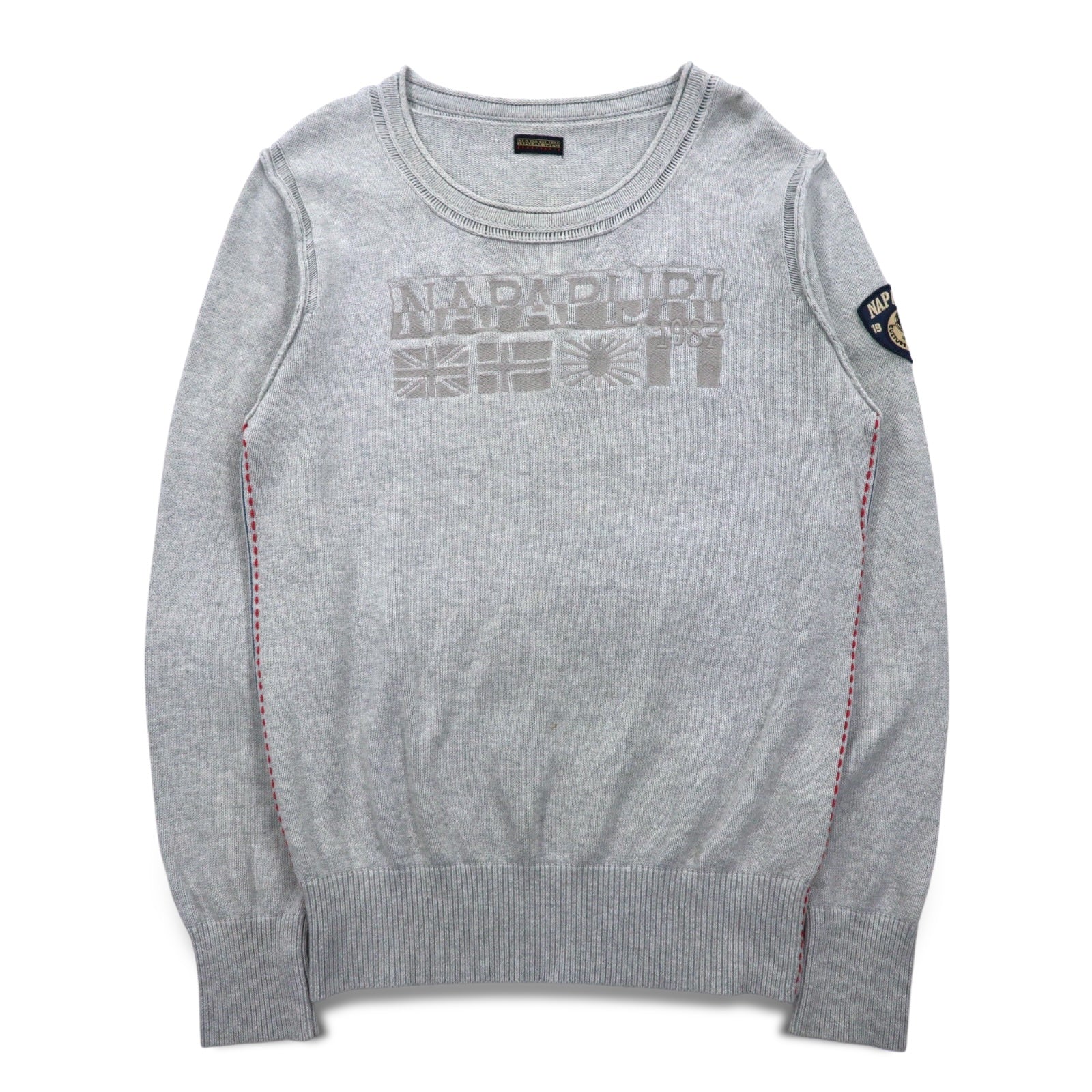 NAPAPIJRI コットン ニット セーター M グレー ワッペン S13-DELEVEN S1358E