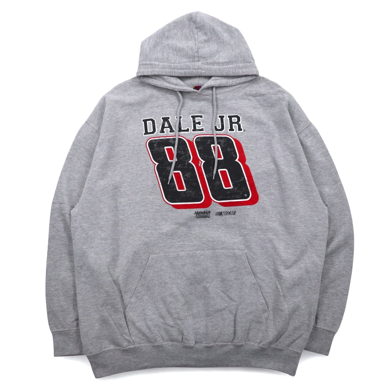 NASCAR ナンバリング プリント プルオーバーパーカー L グレー コットン レーシング DALE JR