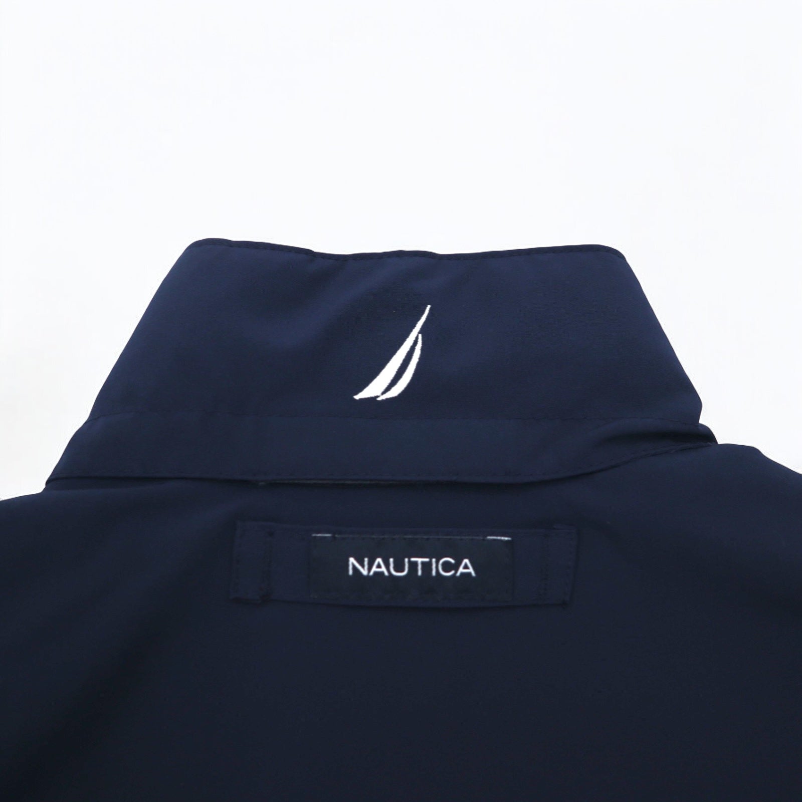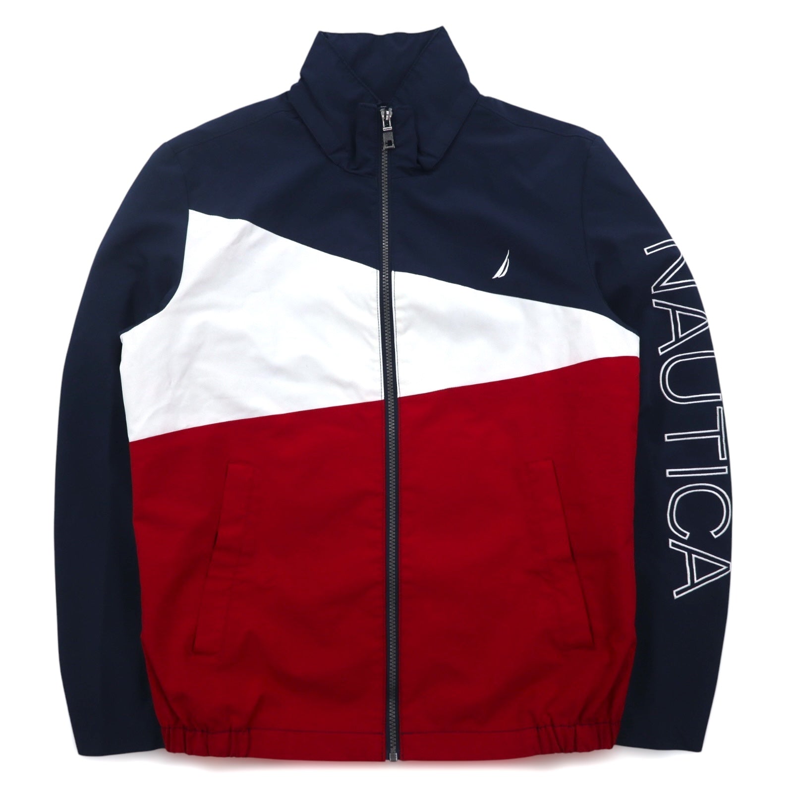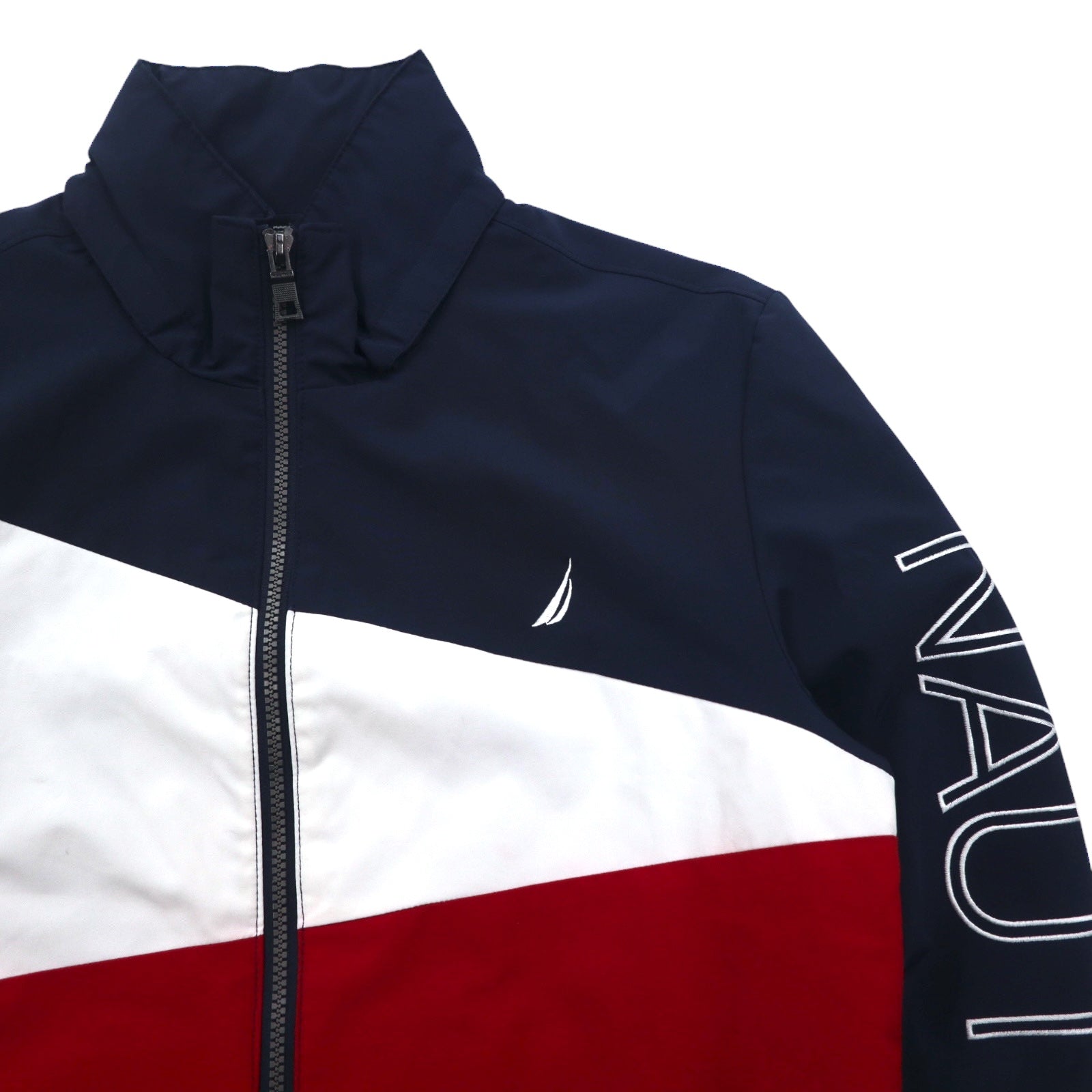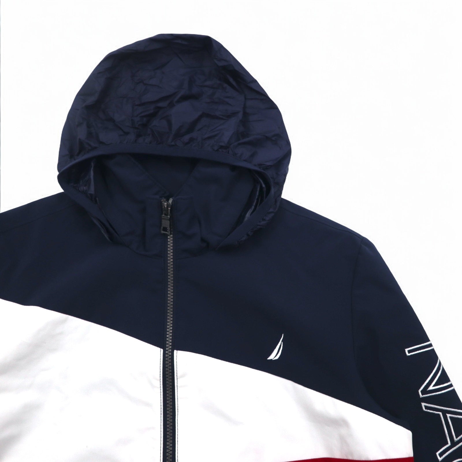 NAUTICA セーリングジャケット ナイロンジャケット M トリコロールカラー ネイビー 袖ロゴ フード収納式