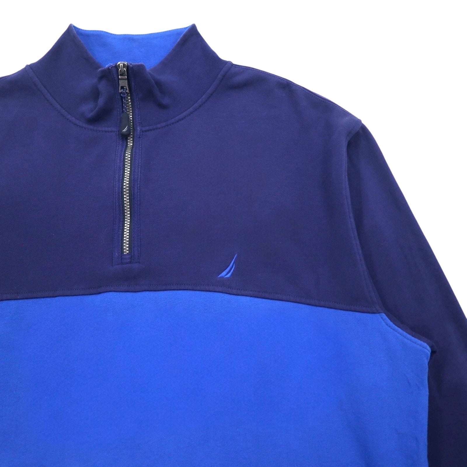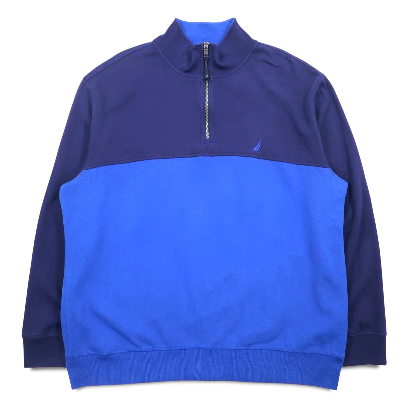 NAUTICA ハーフジップ スウェット XXL ネイビー ブルー ツートン 裏起毛 ワンポイントロゴ刺繍
