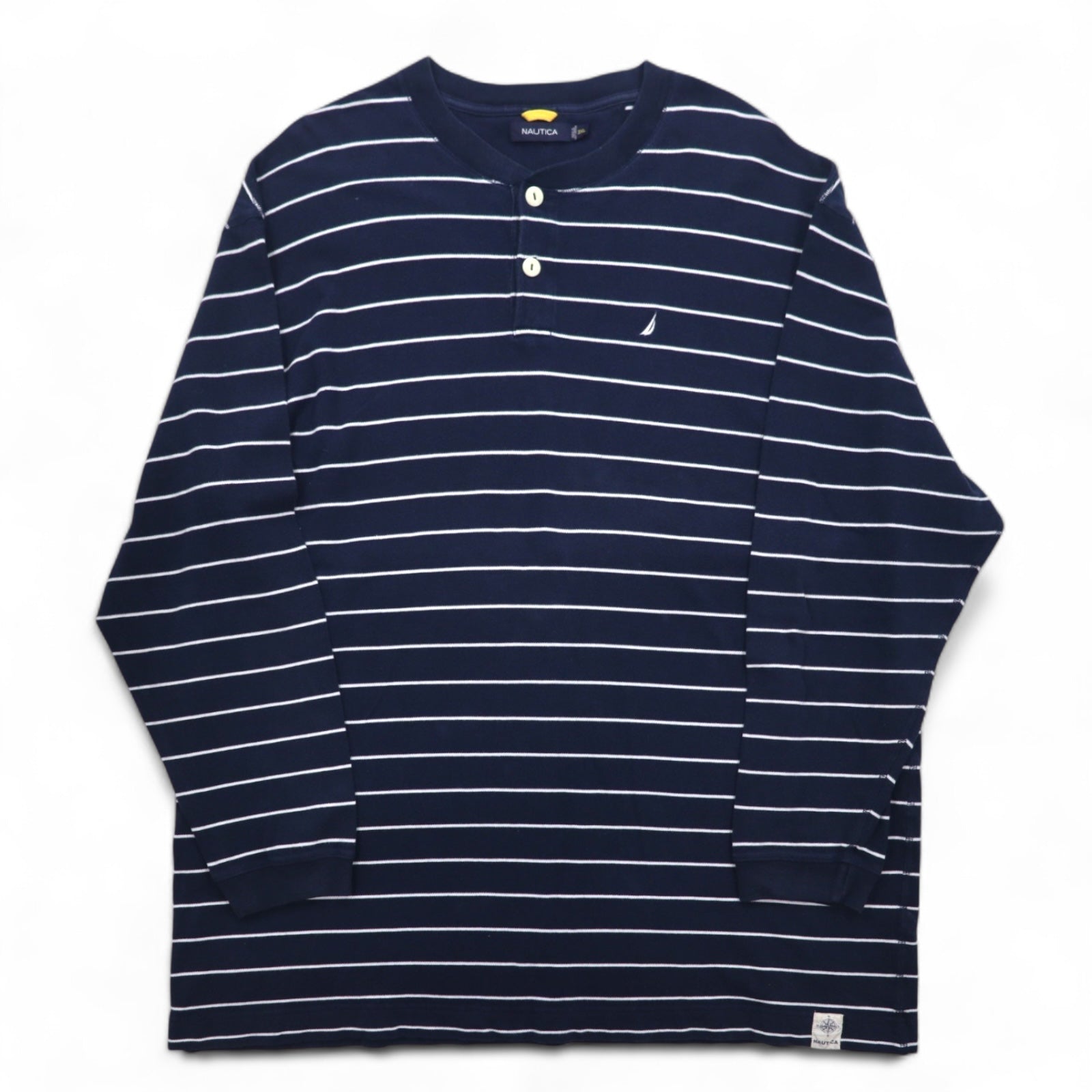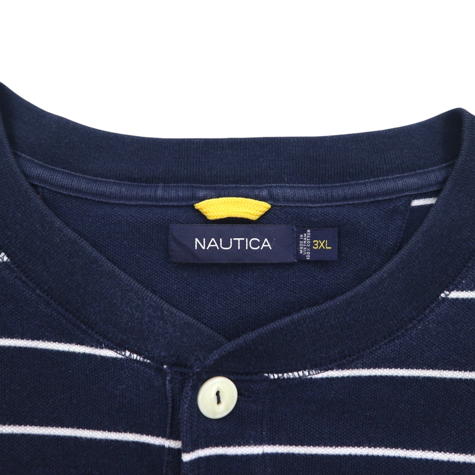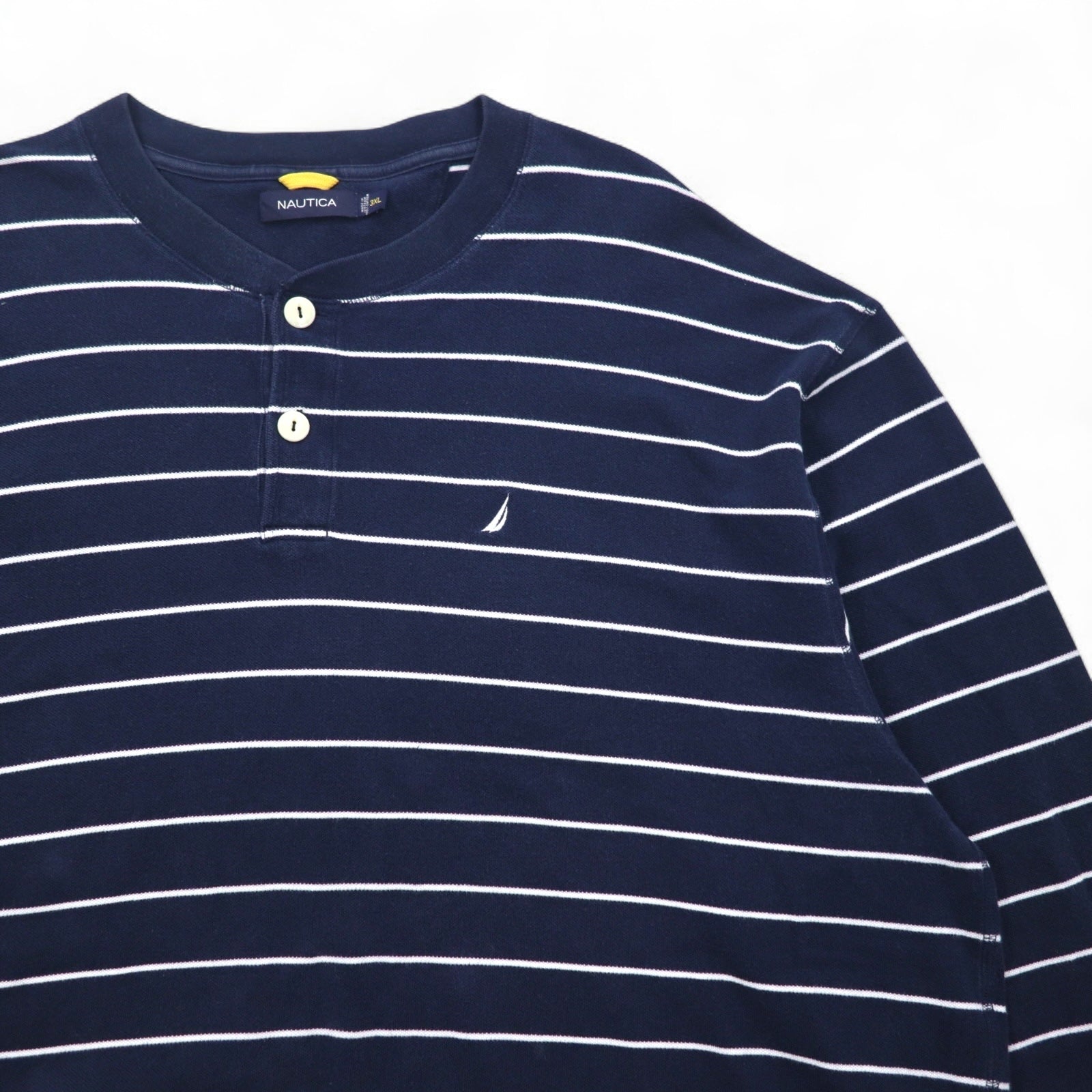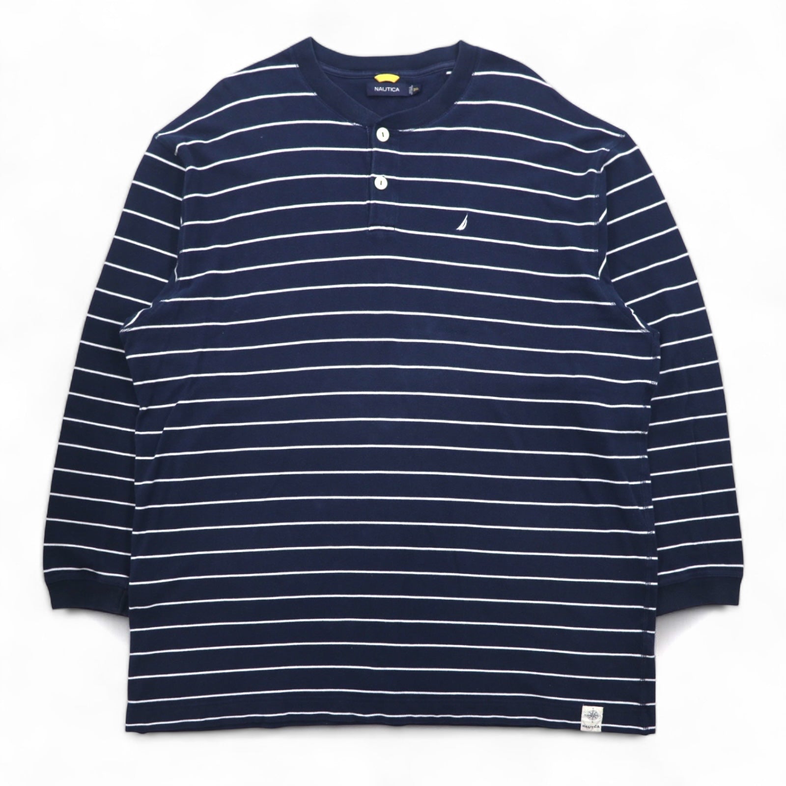 NAUTICA ヘンリーネック ロングスリーブTシャツ ロンT 3XL ネイビー ボーダー ビッグサイズ