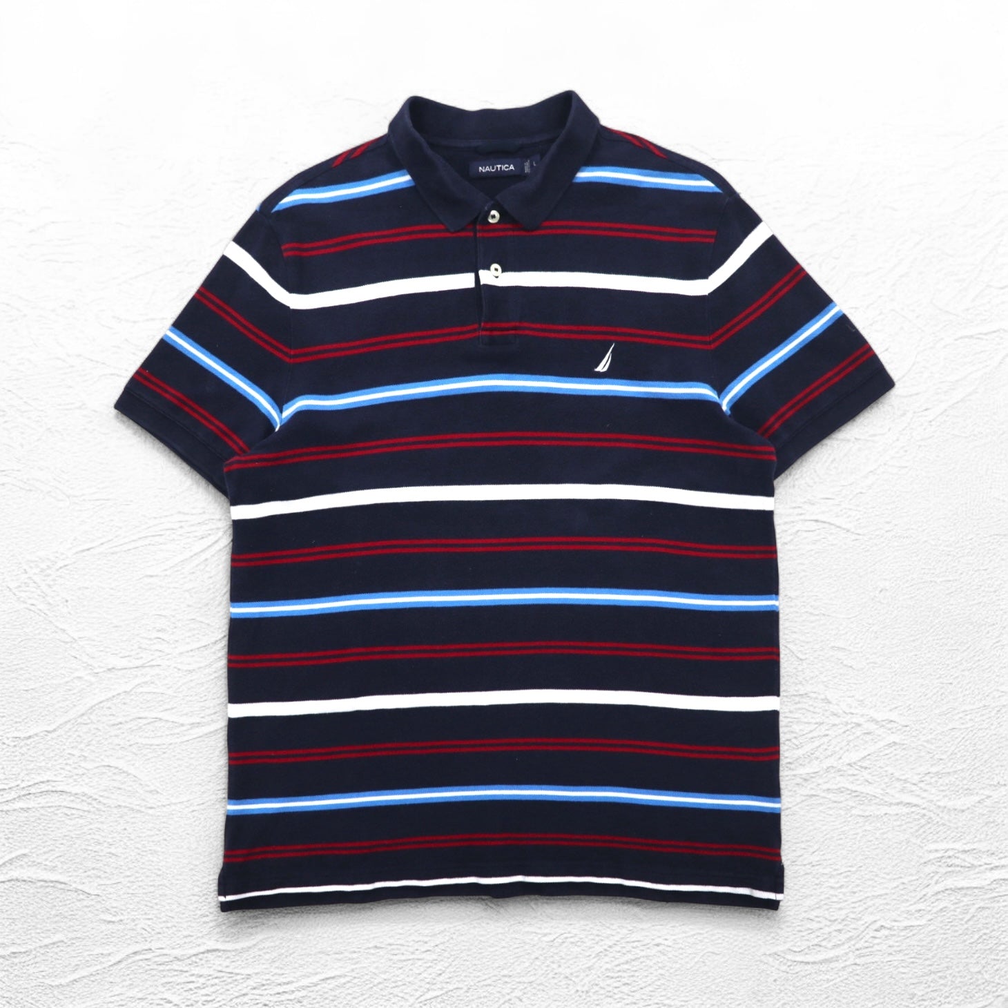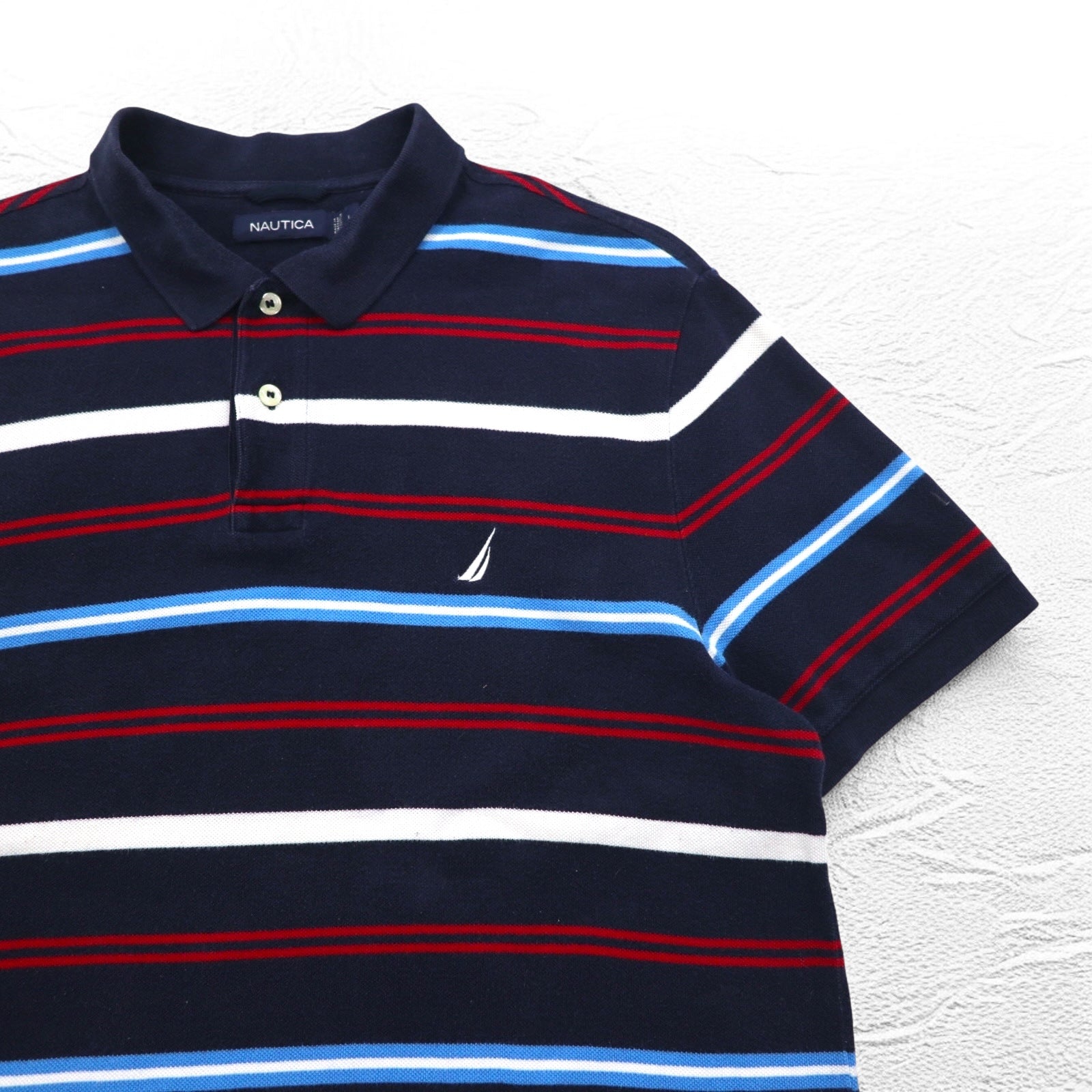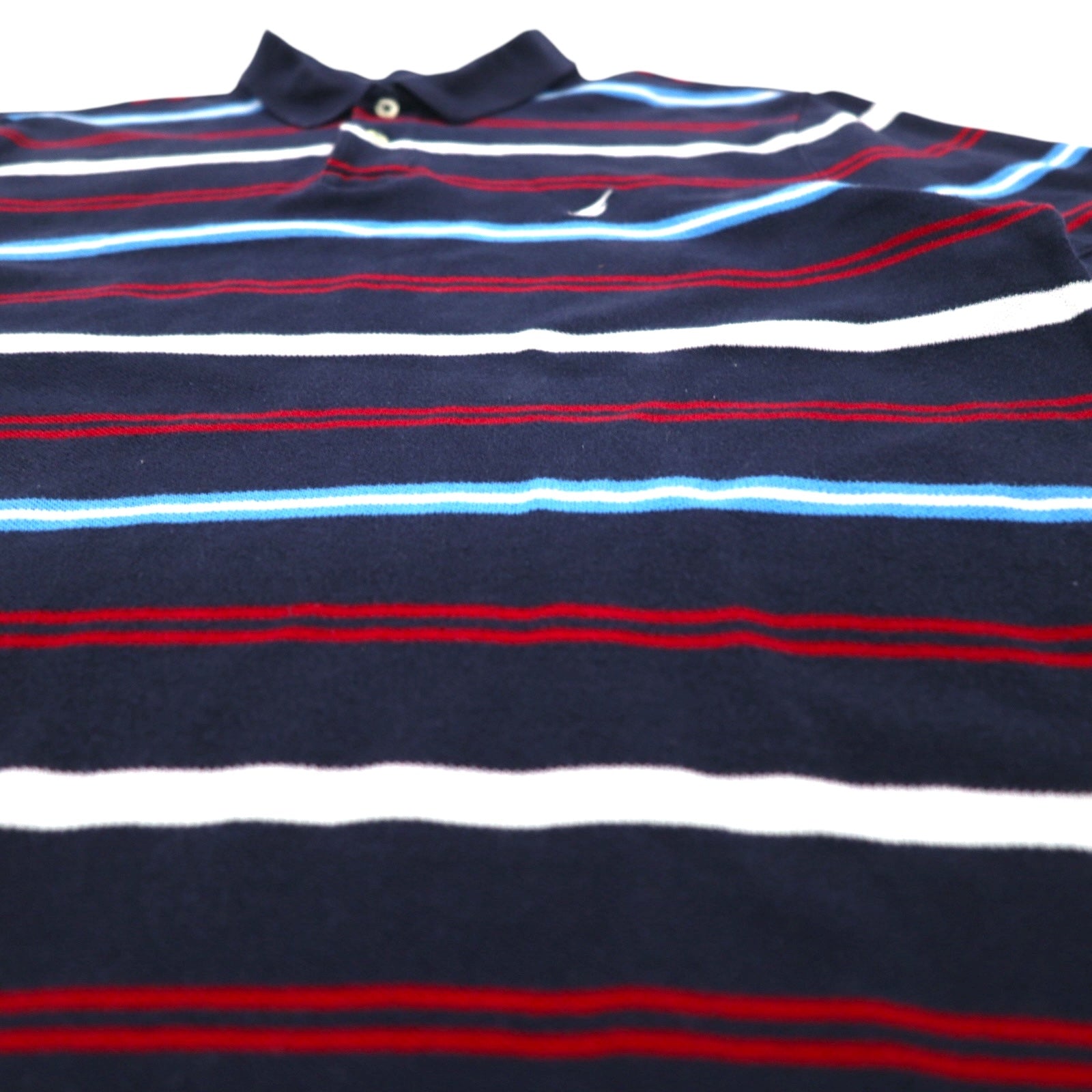NAUTICA ボーダー ポロシャツ L ネイビー コットン 鹿の子 ワンポイントロゴ刺繍