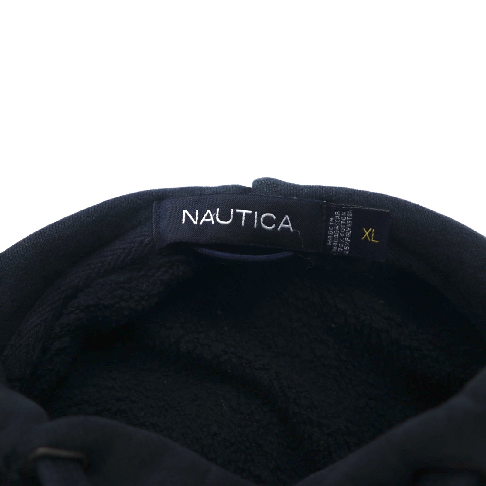 NAUTICA リバースウィーブ プルオーバー パーカー XL ブラック コットン 裏起毛 ロゴ刺繍