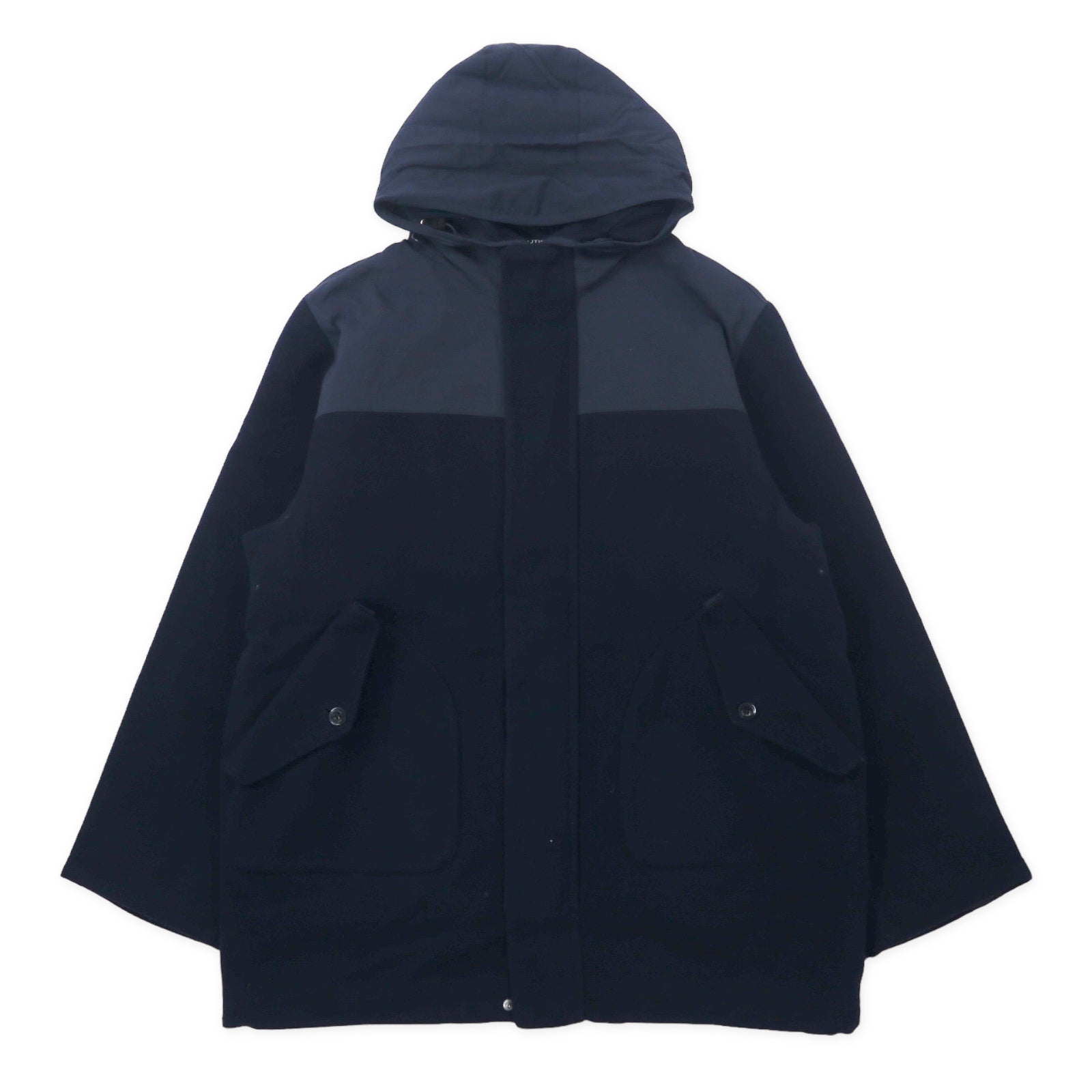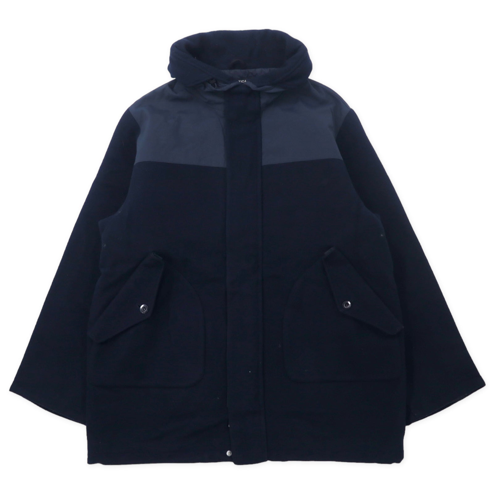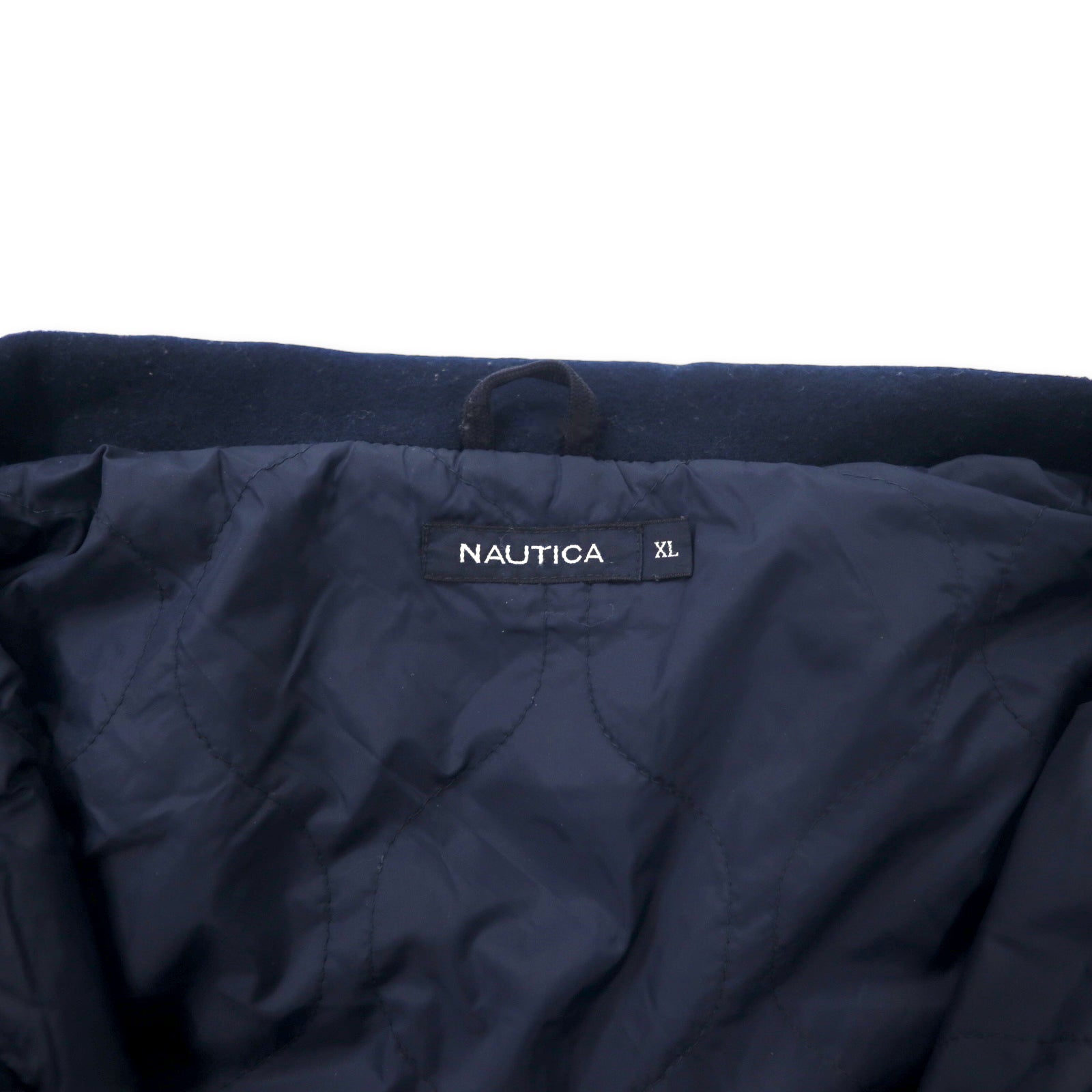 NAUTICA 異素材切り替え オーバーコート XL ネイビー ウール フード収納式 ダブルジップ