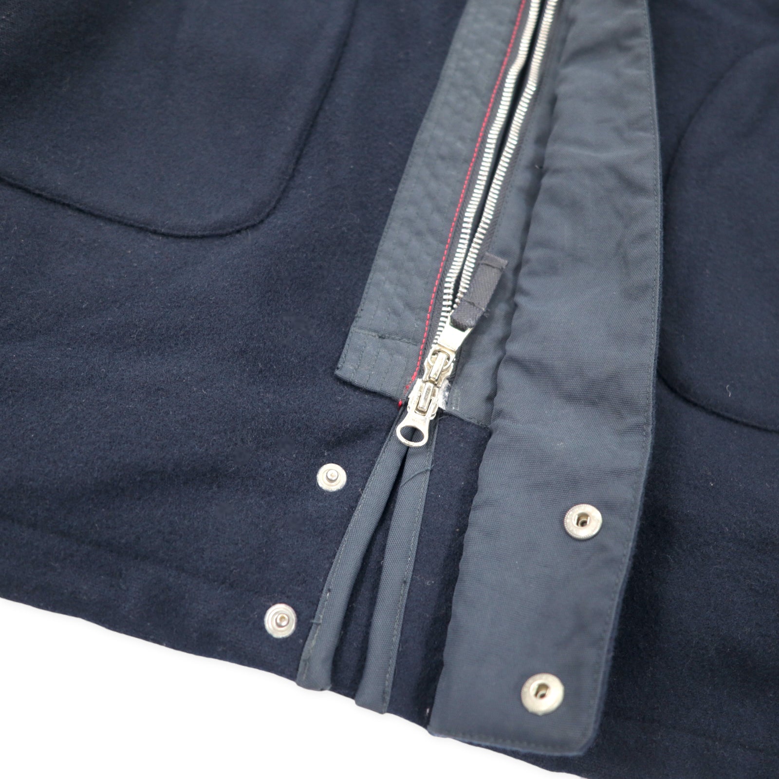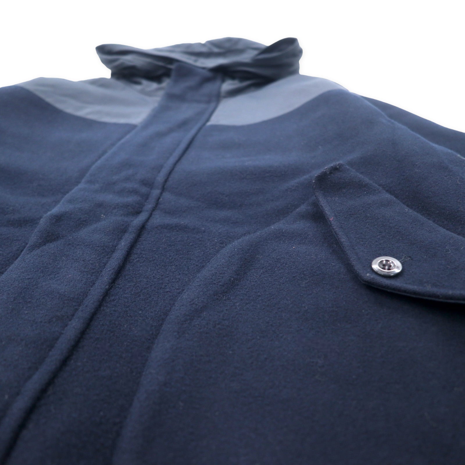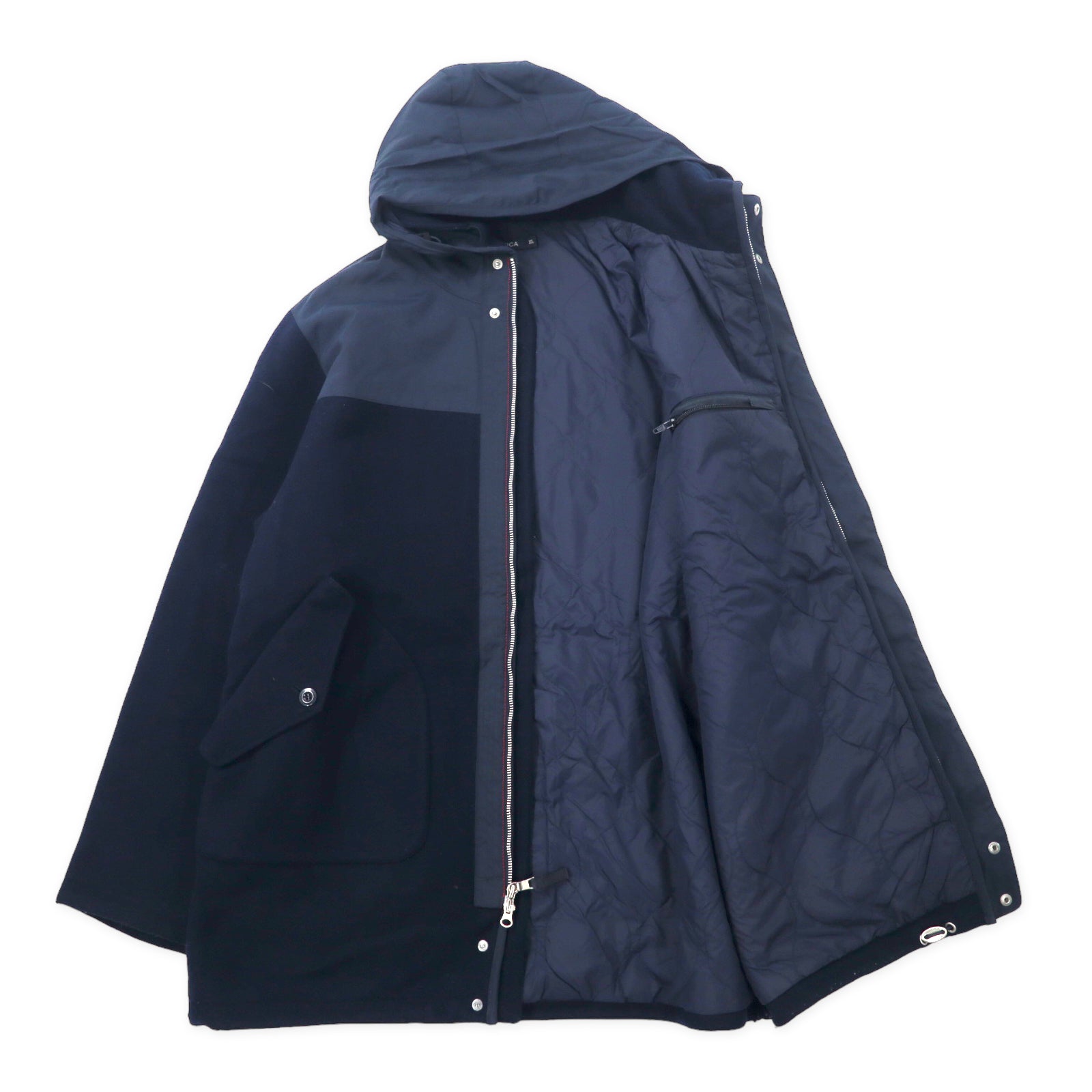 NAUTICA 異素材切り替え オーバーコート XL ネイビー ウール フード収納式 ダブルジップ