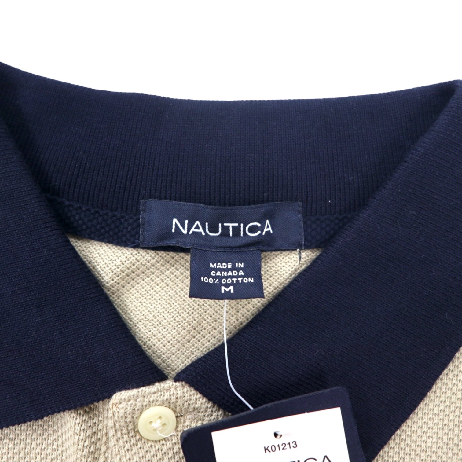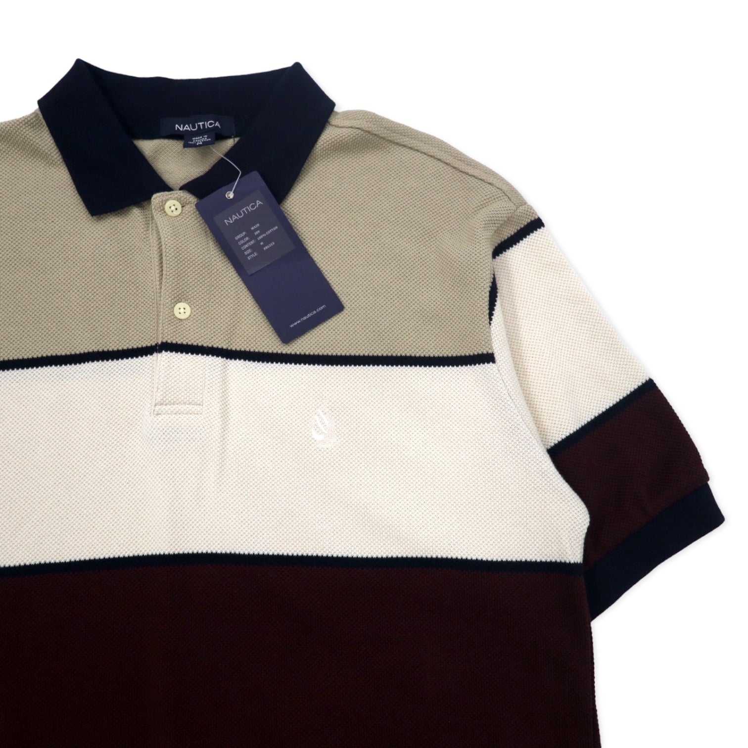 NAUTICA 鹿の子 ニット ポロシャツ M ベージュ ボーダー コットン 未使用品