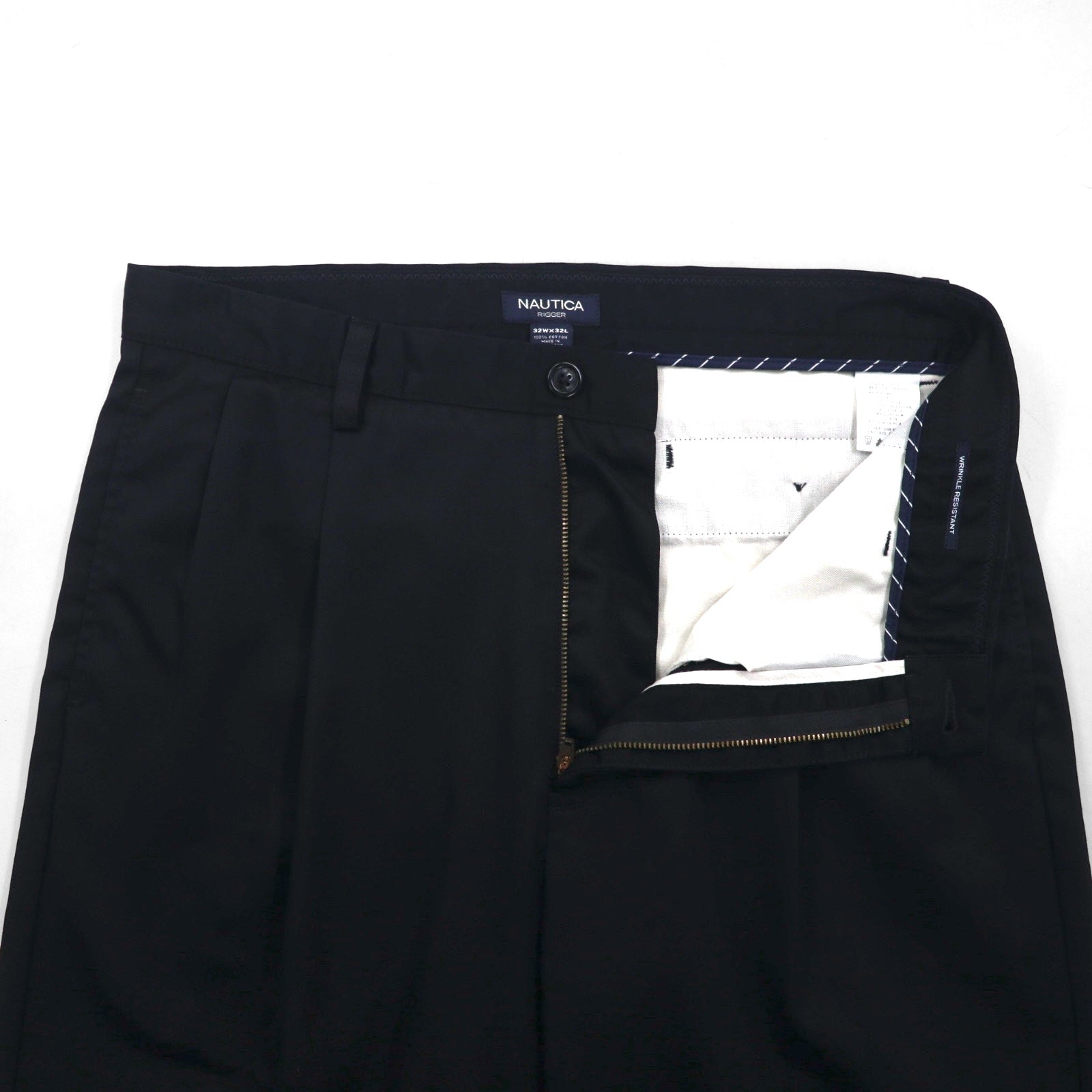 NAUTICA 2タック ワイド スラックスパンツ M ブラック RIGGER コットン