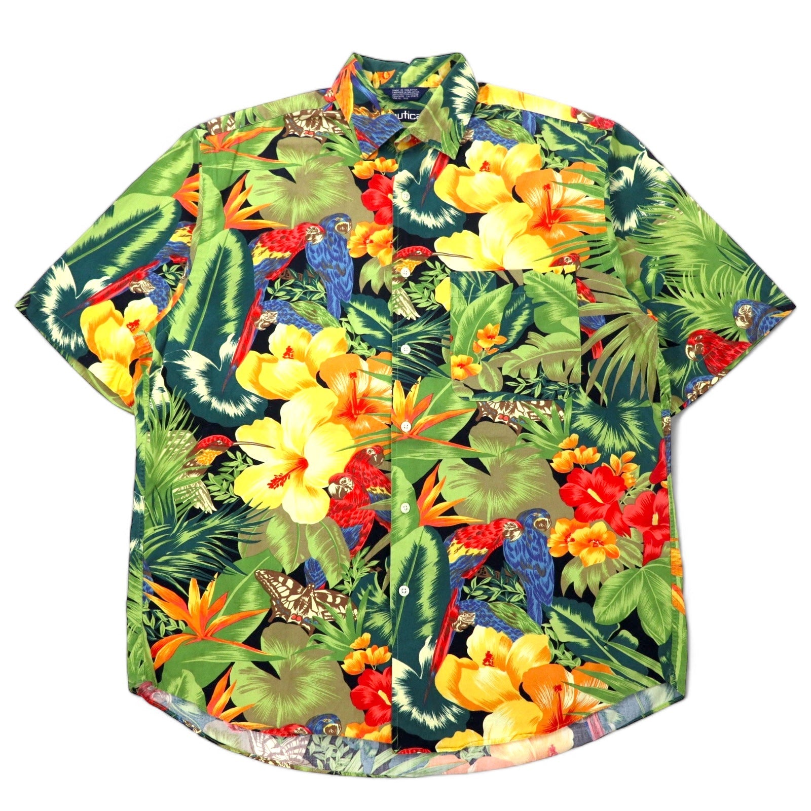 nautica 90年代 アロハシャツ M マルチカラー コットン 花柄 ボタニカル