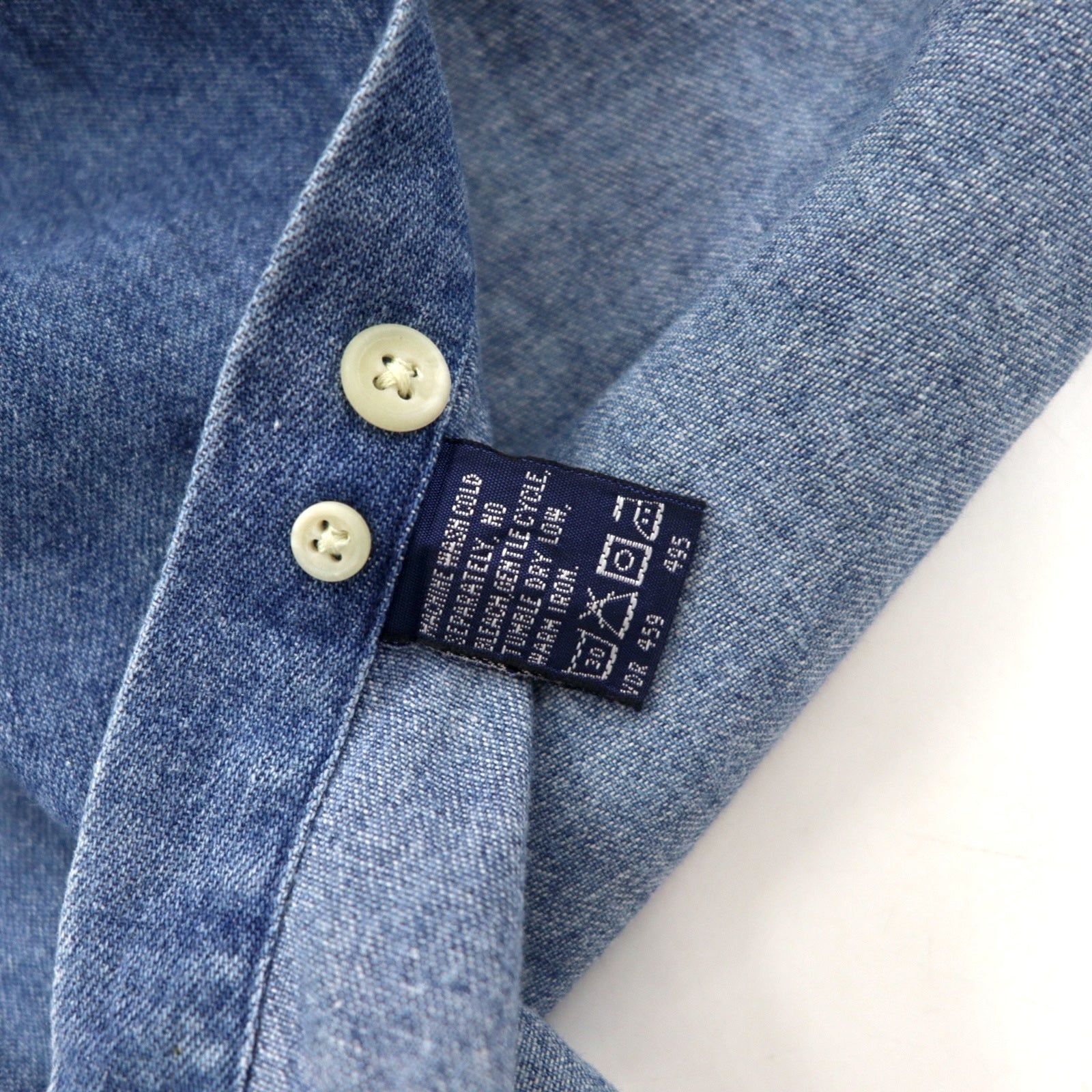 nautica 90年代 デニム ボタンダウンシャツ XL ブルー コットン ワンポイントロゴ 刺繍