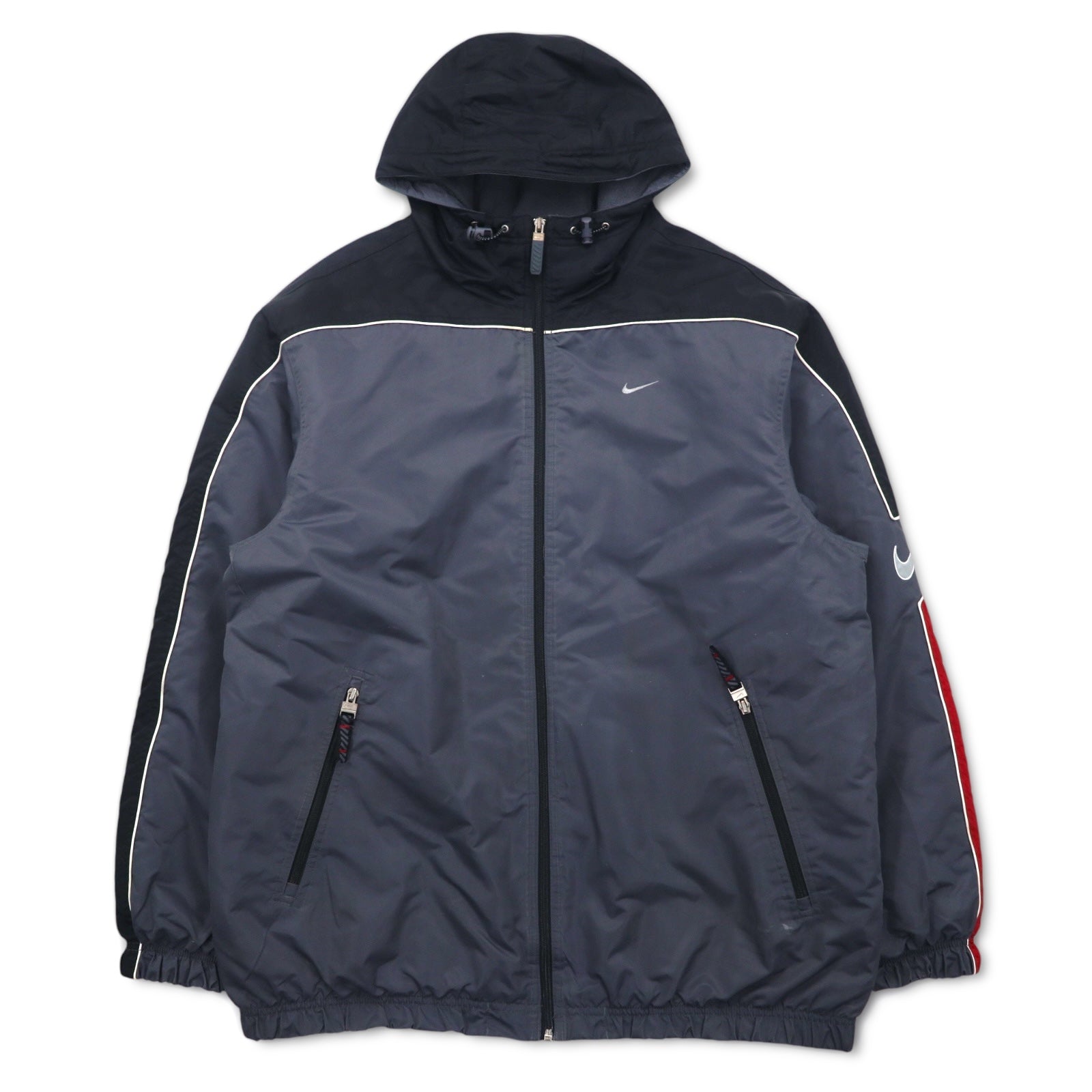 NIKE 00年代 ナイロンジャケット インサレーションパーカー L シルバー 中綿 スウォッシュロゴ