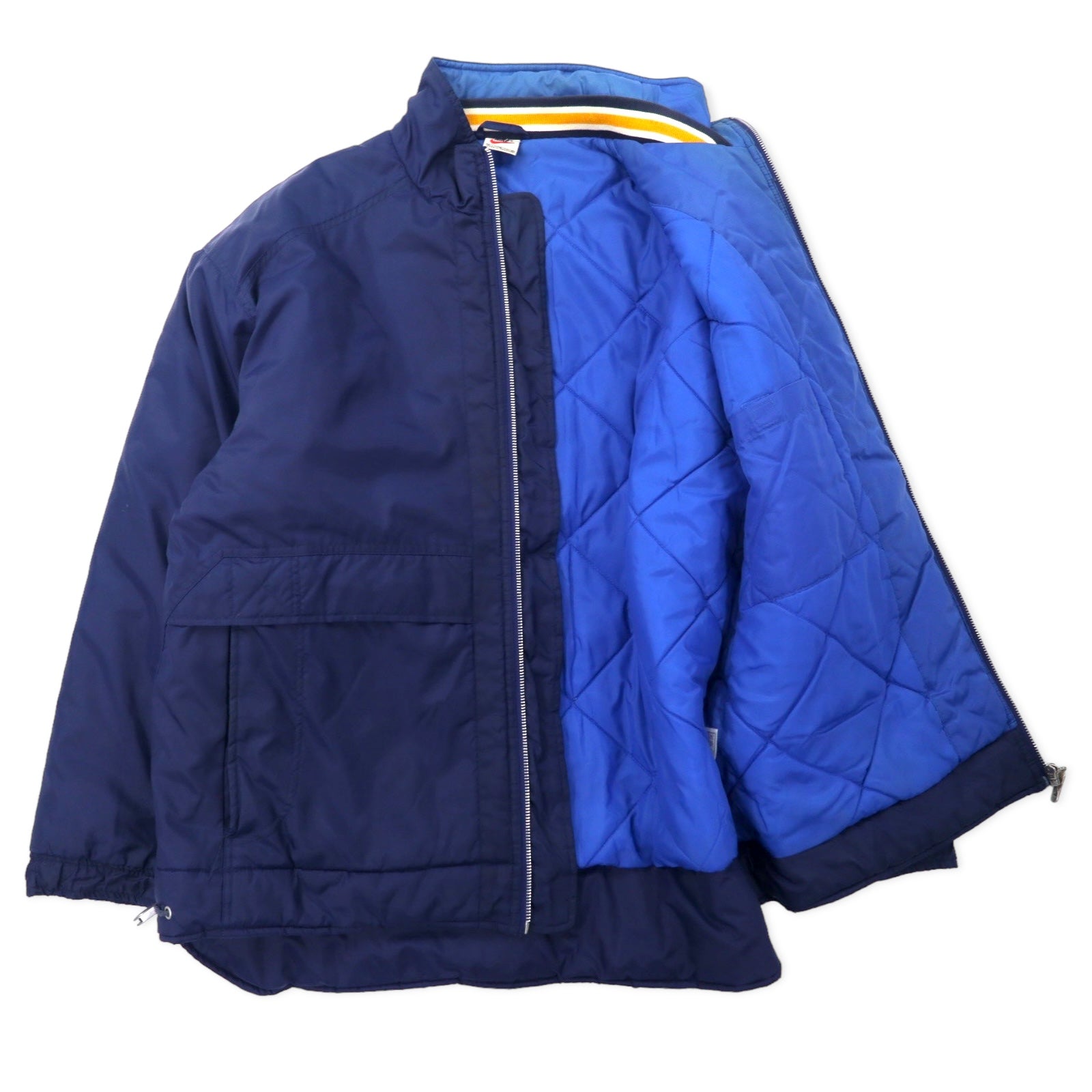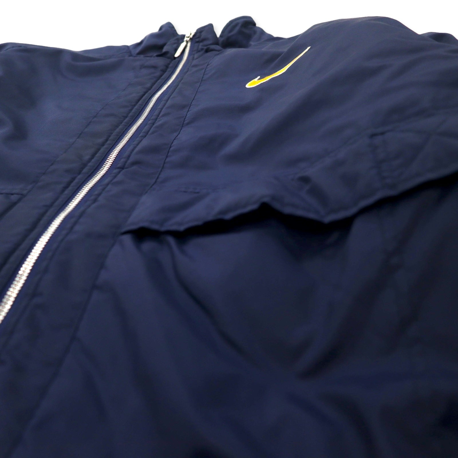 NIKE 90年代 スウォッシュロゴ パデット ナイロンジャケット M ネイビー バックロゴ刺繍 キルティングライナー 銀タグ