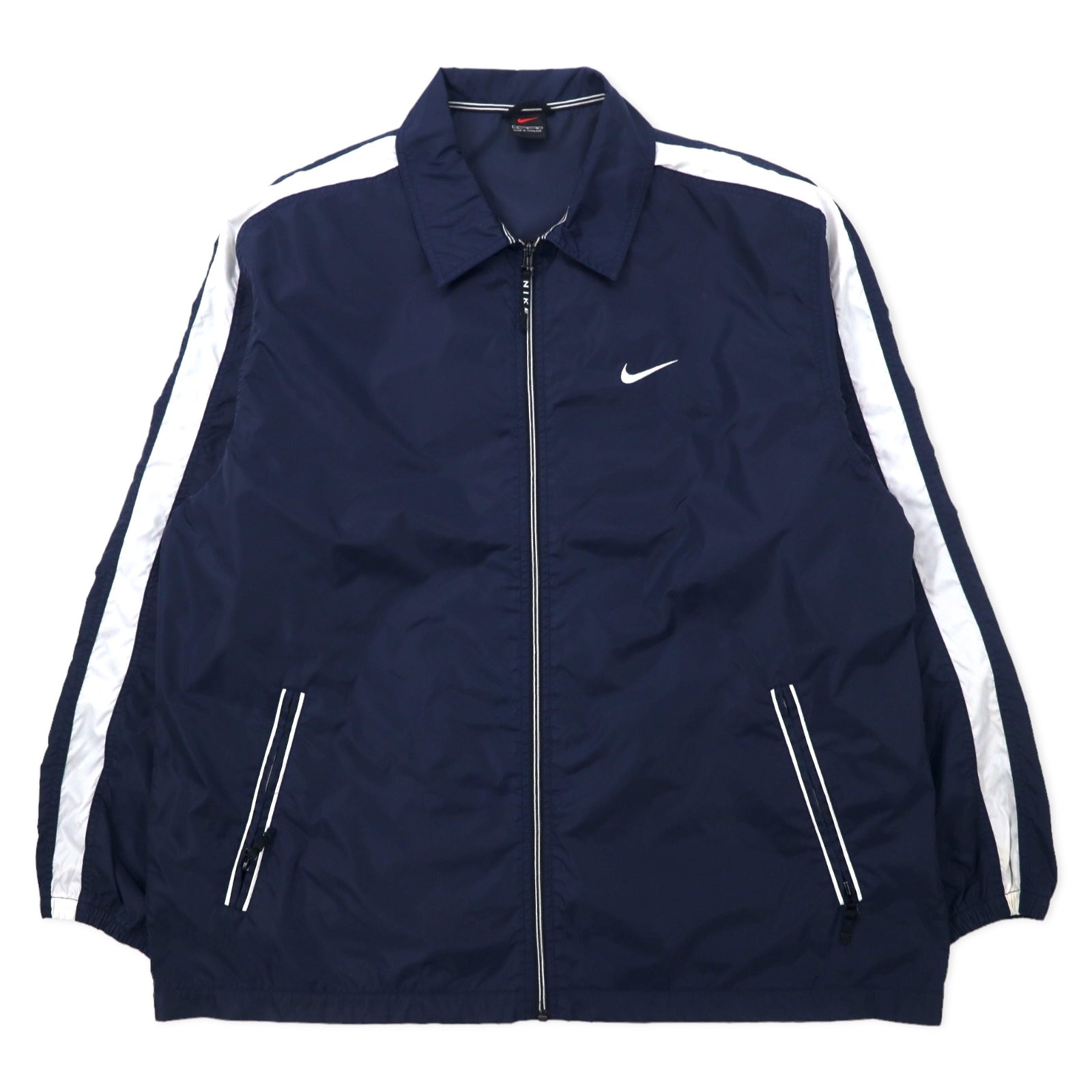 NIKE 90年代 ナイロンジャケット スポーツジャケット L ネイビー サイドライン スウォッシュロゴ 黒タグ ビッグサイズ