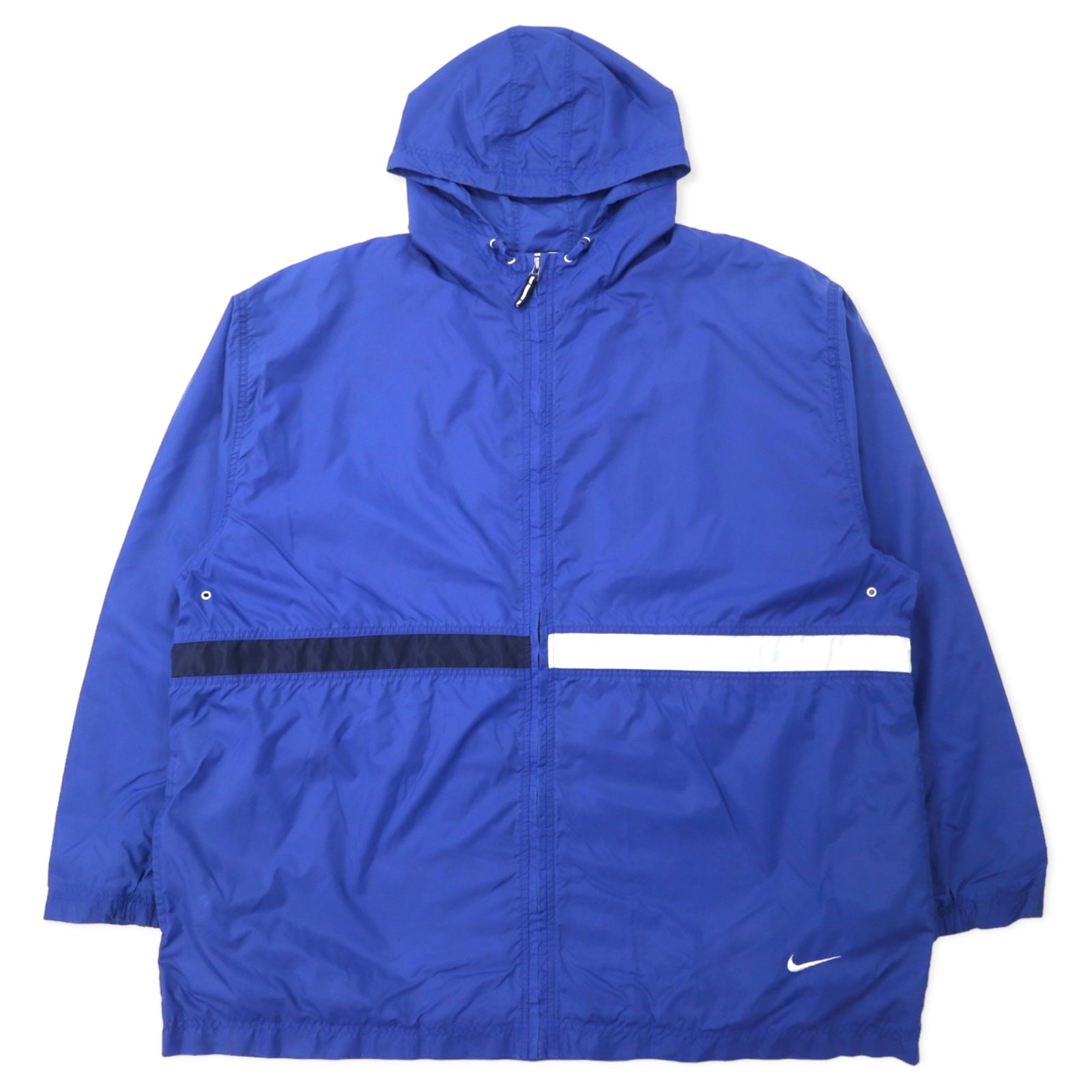 NIKE 90年代 ナイロンジャケット フーディー XXL ブルー スウォッシュロゴ刺繍 銀タグ ビッグサイズ