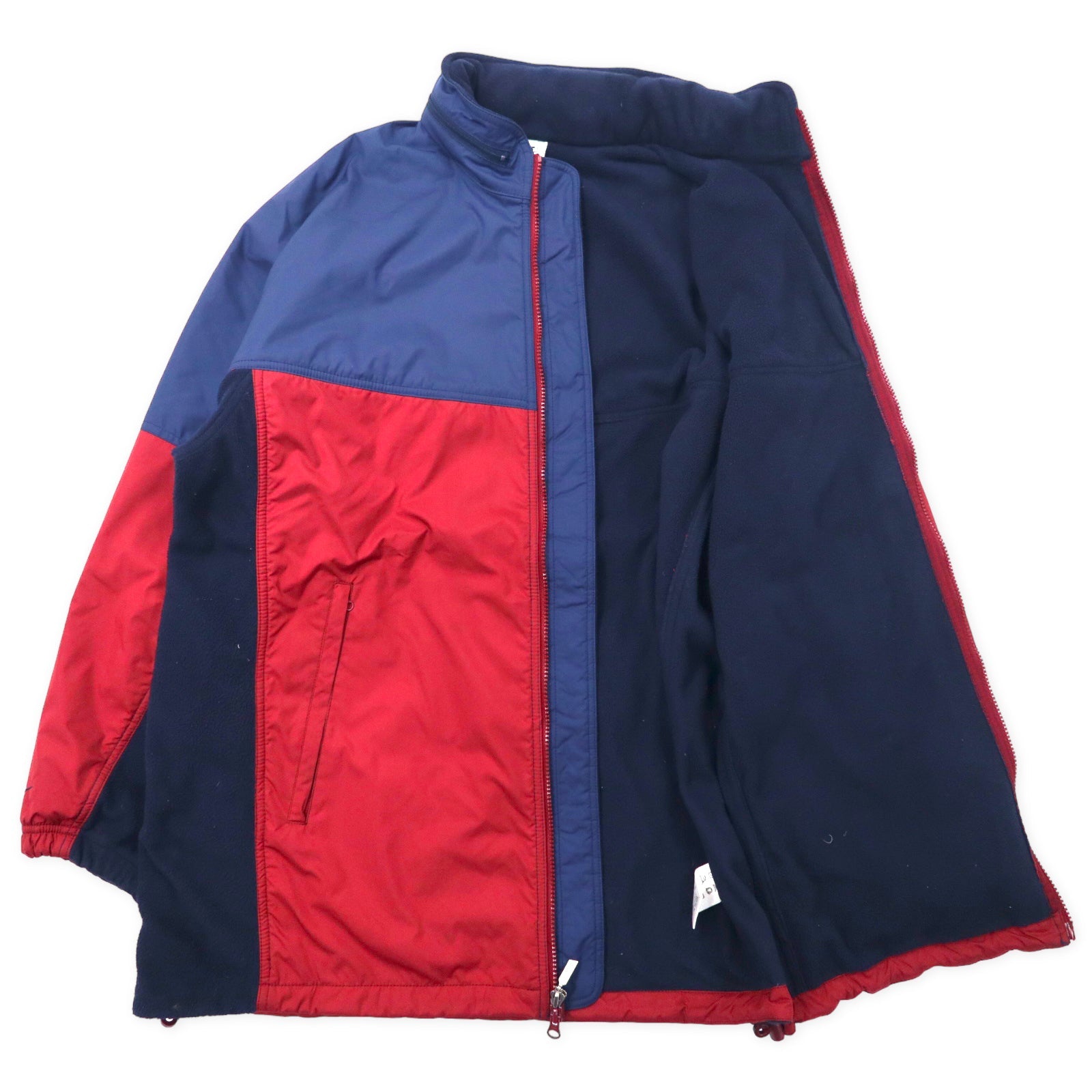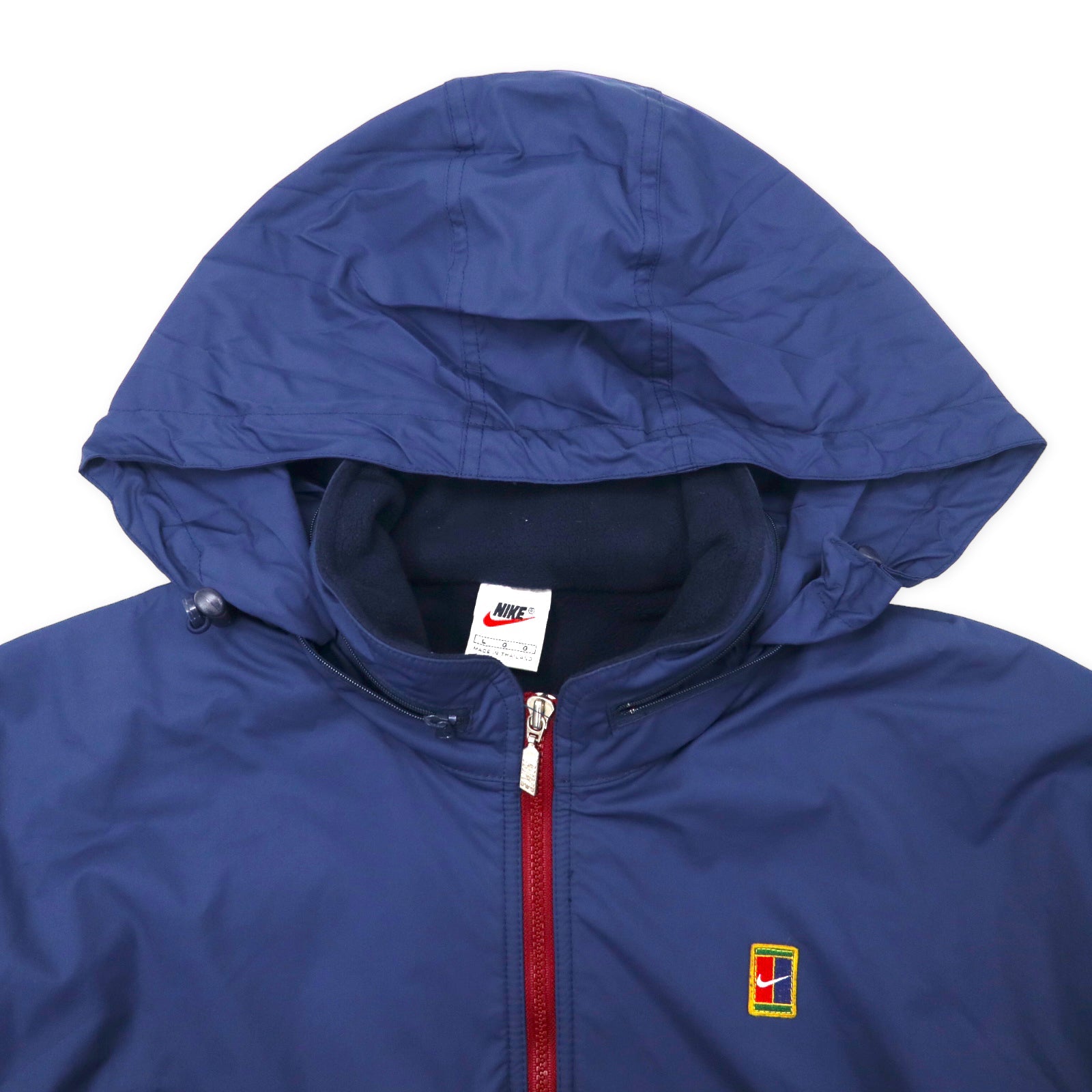 NIKE 90年代 フリース切替 ソフトシェルジャケット L ネイビー スウォッシュロゴ 銀タグ フード収納式 ビッグサイズ