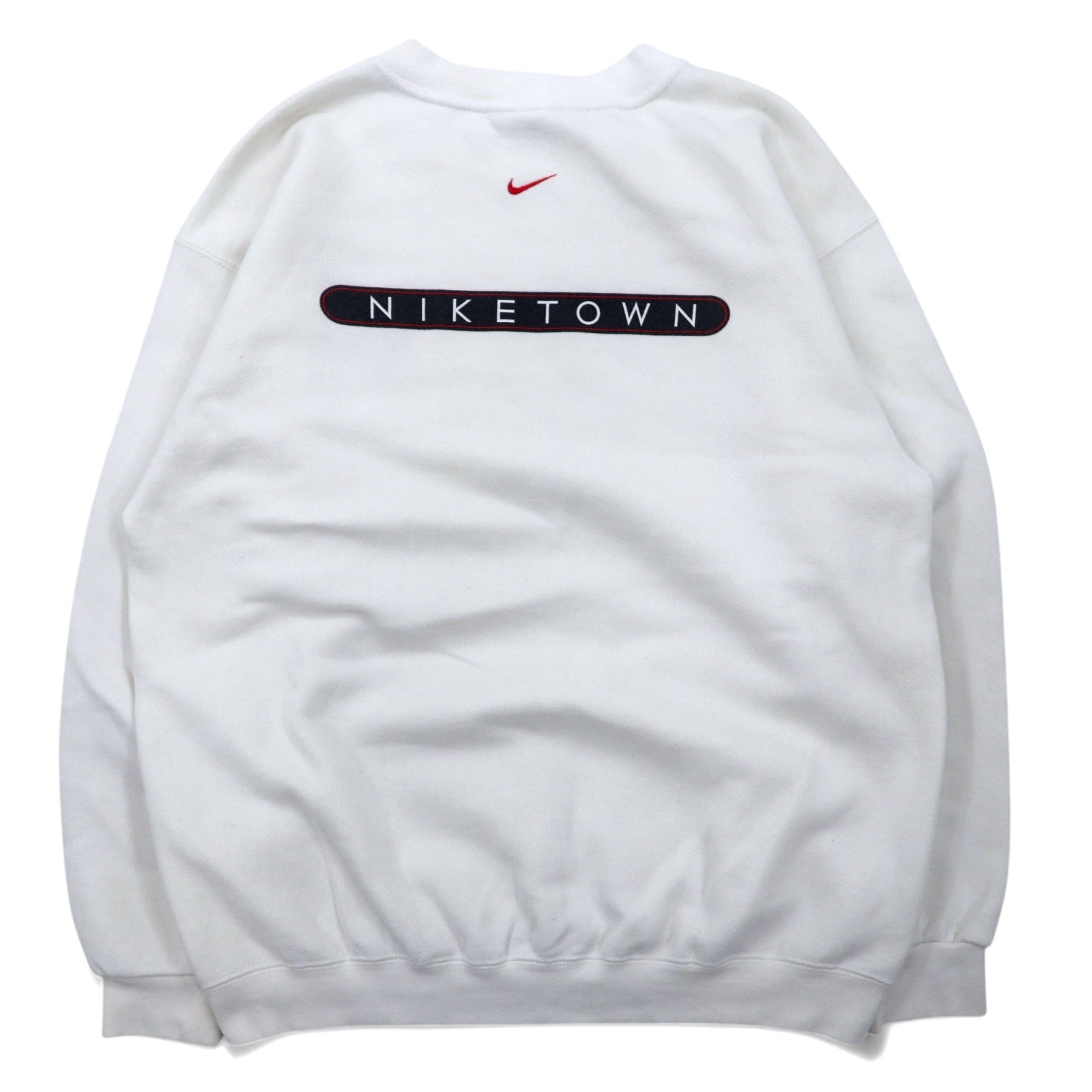 NIKE 90年代 USA製 スウッシュロゴ 刺繍 スウェット M ホワイト コットン NIKE TOWN バックロゴ プリント