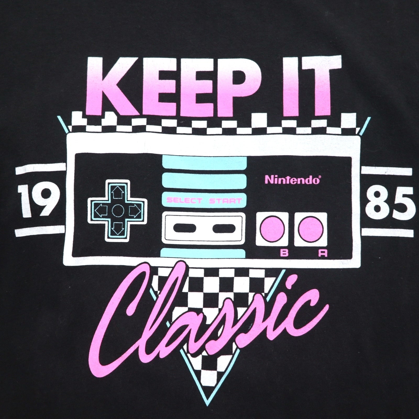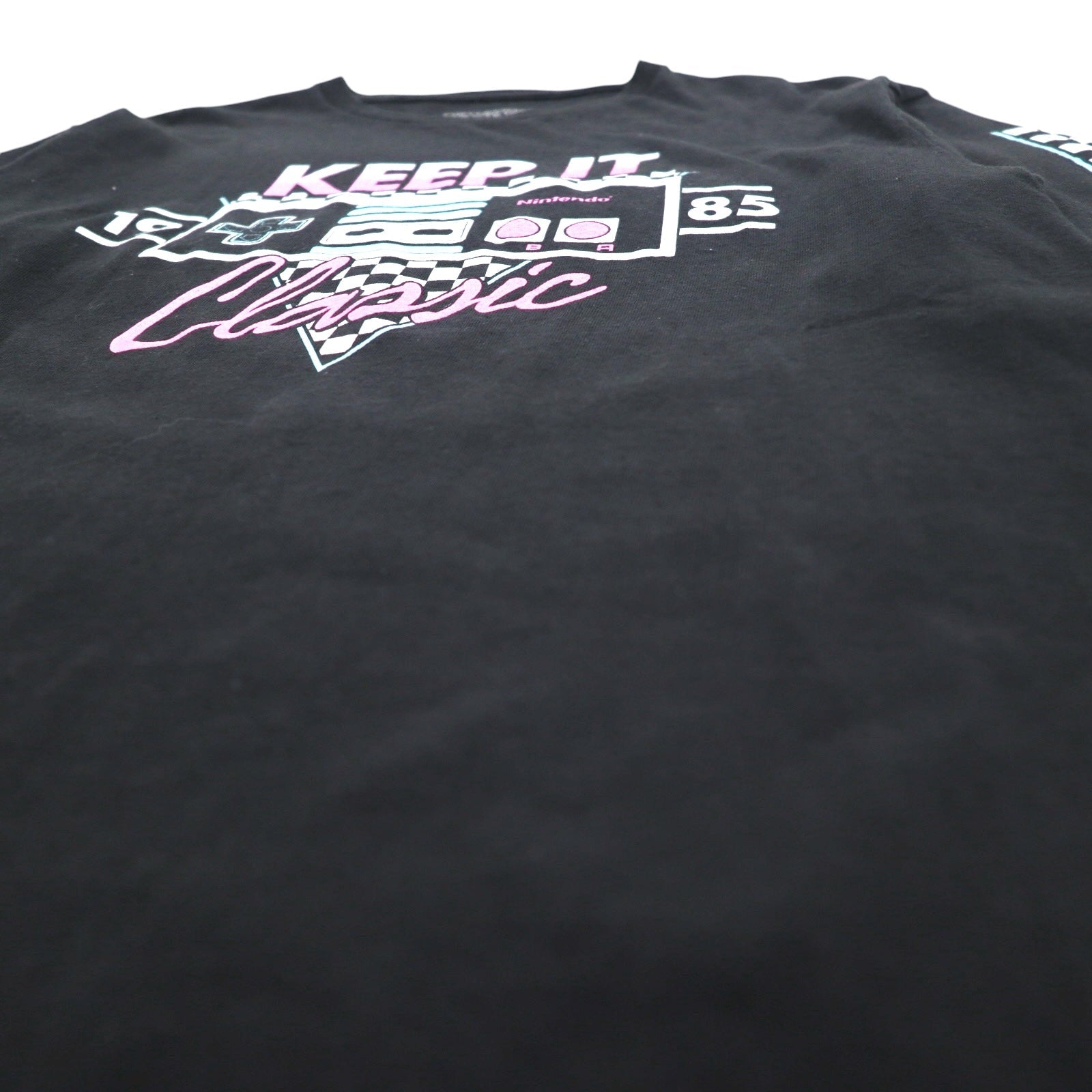 NINTENDO 1985 任天堂 ロングスリーブTシャツ ロンT M ブラック 袖プリント フラッグチェック
