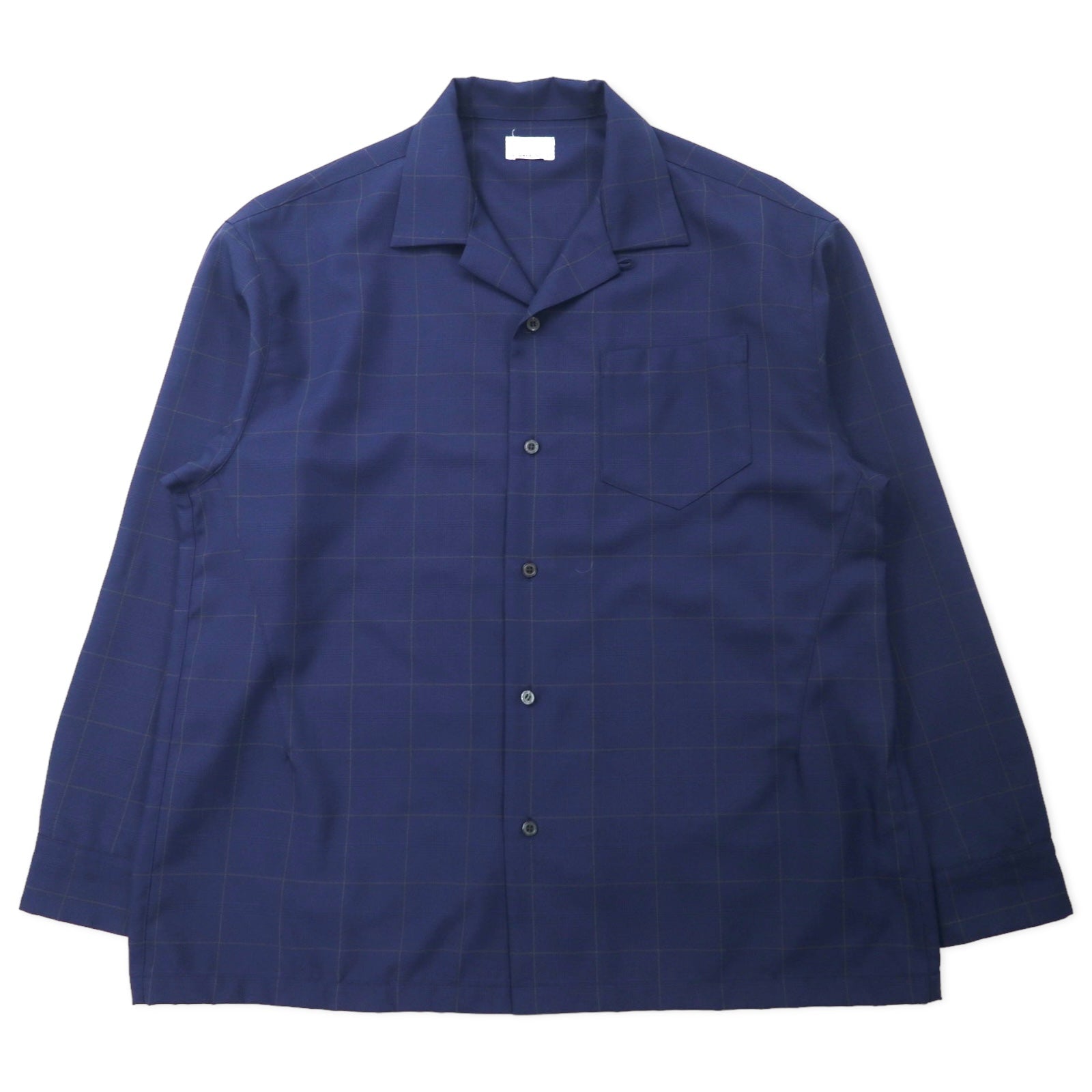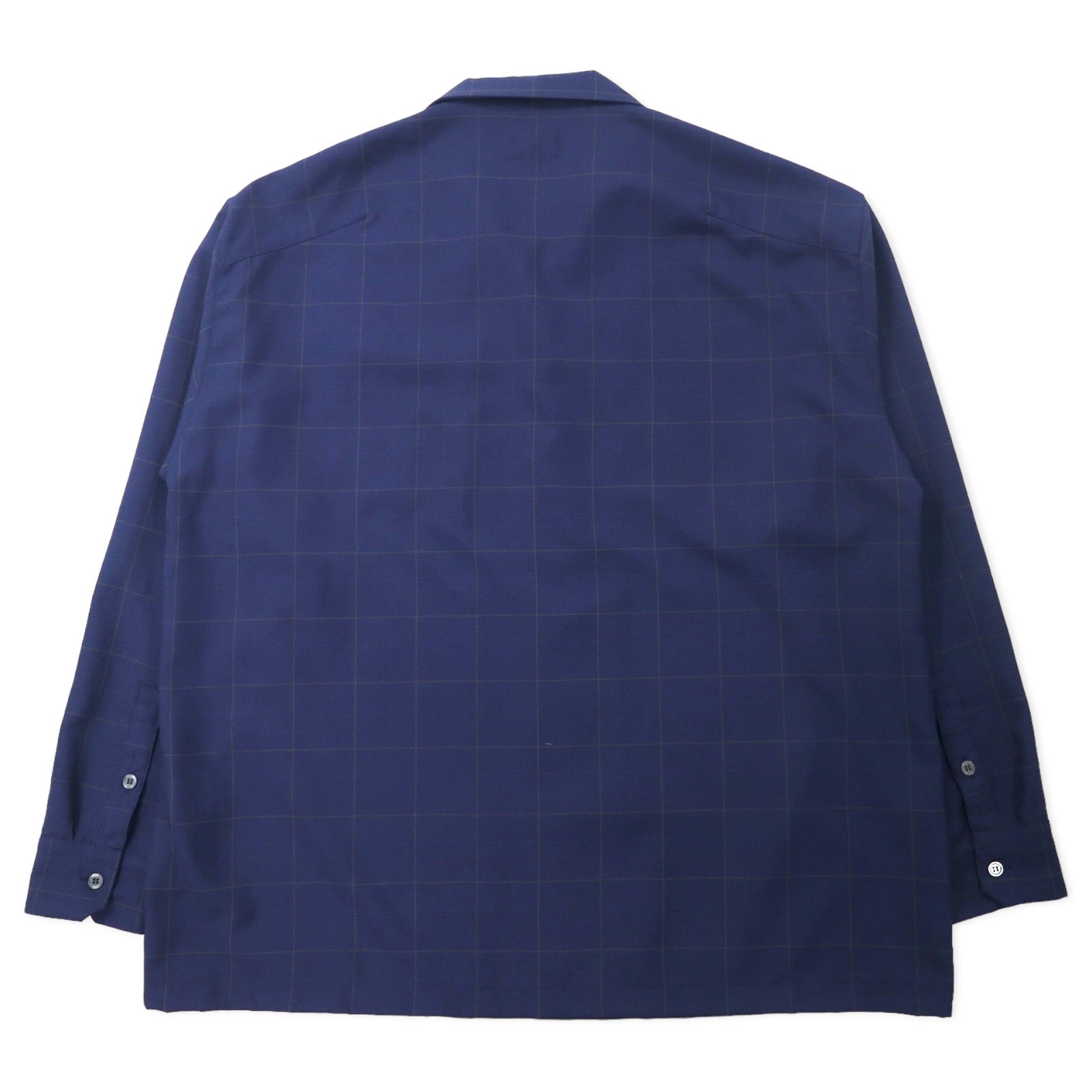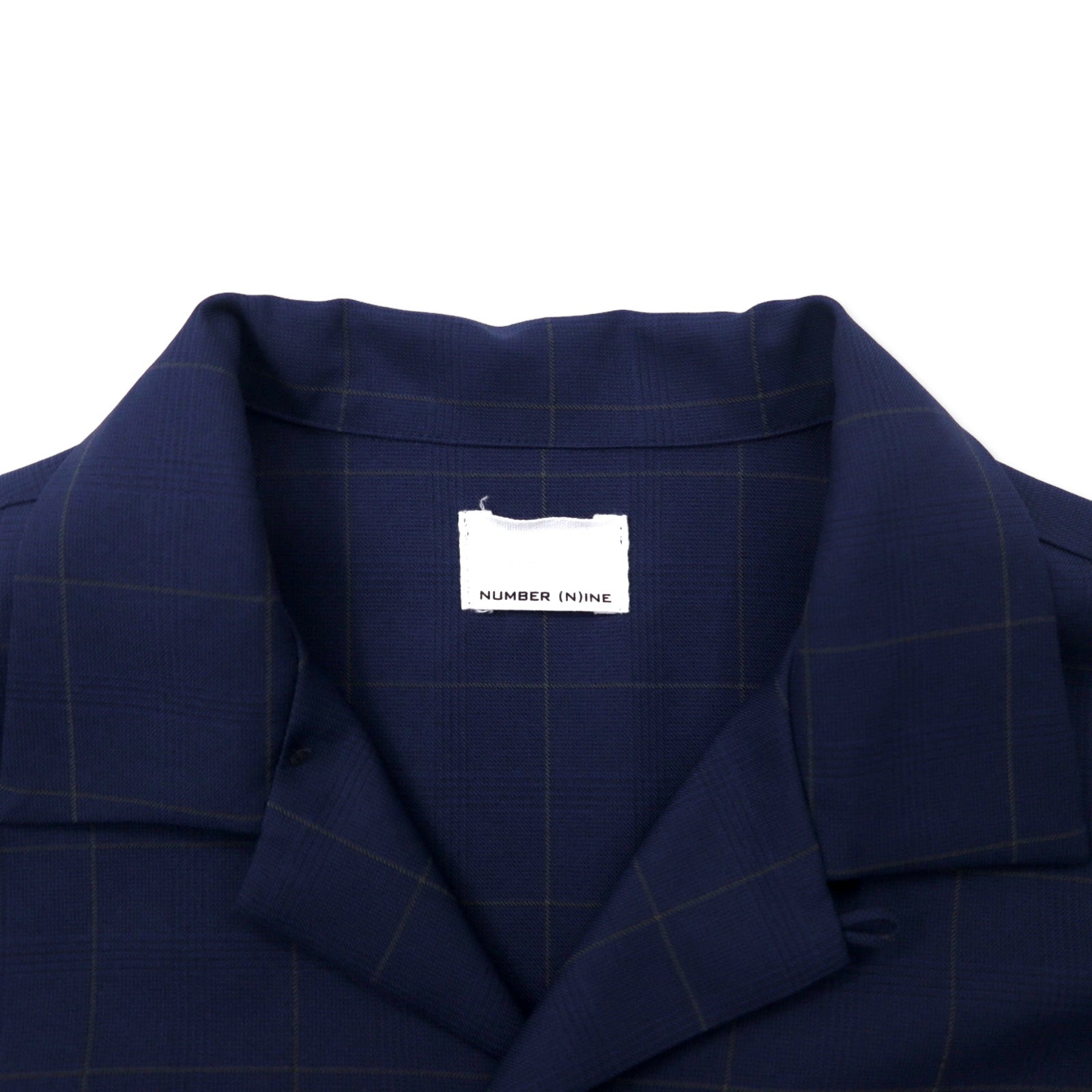 NUMBER (N)INE オープンカラーL/Sシャツ 3 ネイビー チェック ポリエステル 810200001 日本製