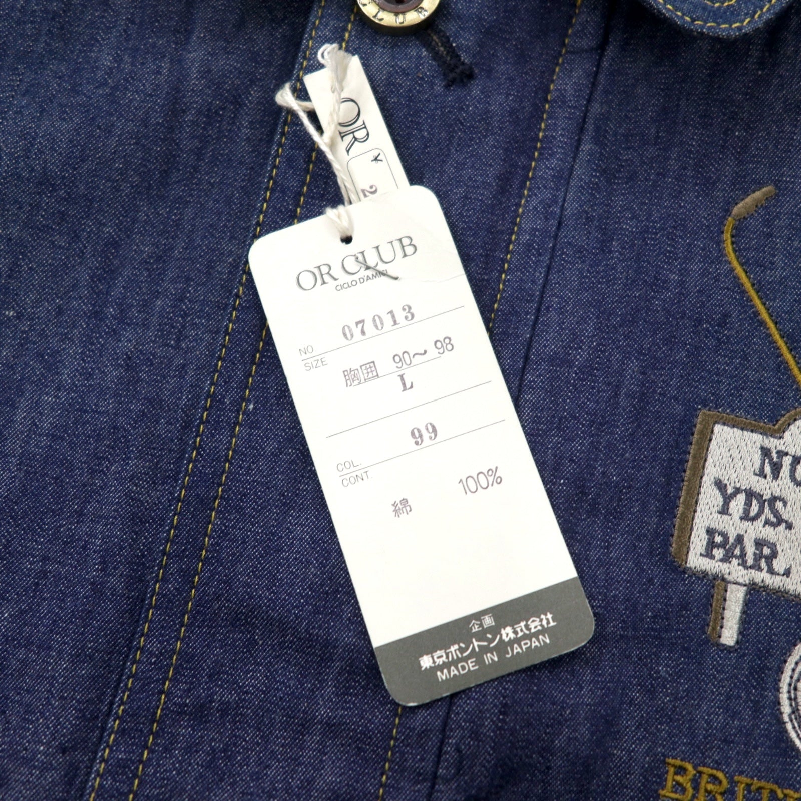 OR CLUB 80年代 デニム スウィングトップ ハリントンジャケット デニムジャケット L ブルー 濃紺 コットン レトロ 刺繍 日本製 未使用品