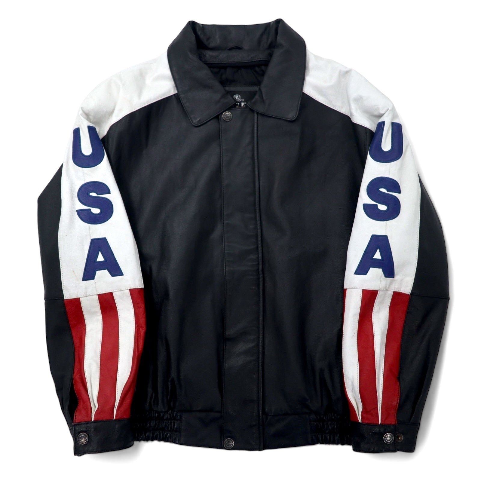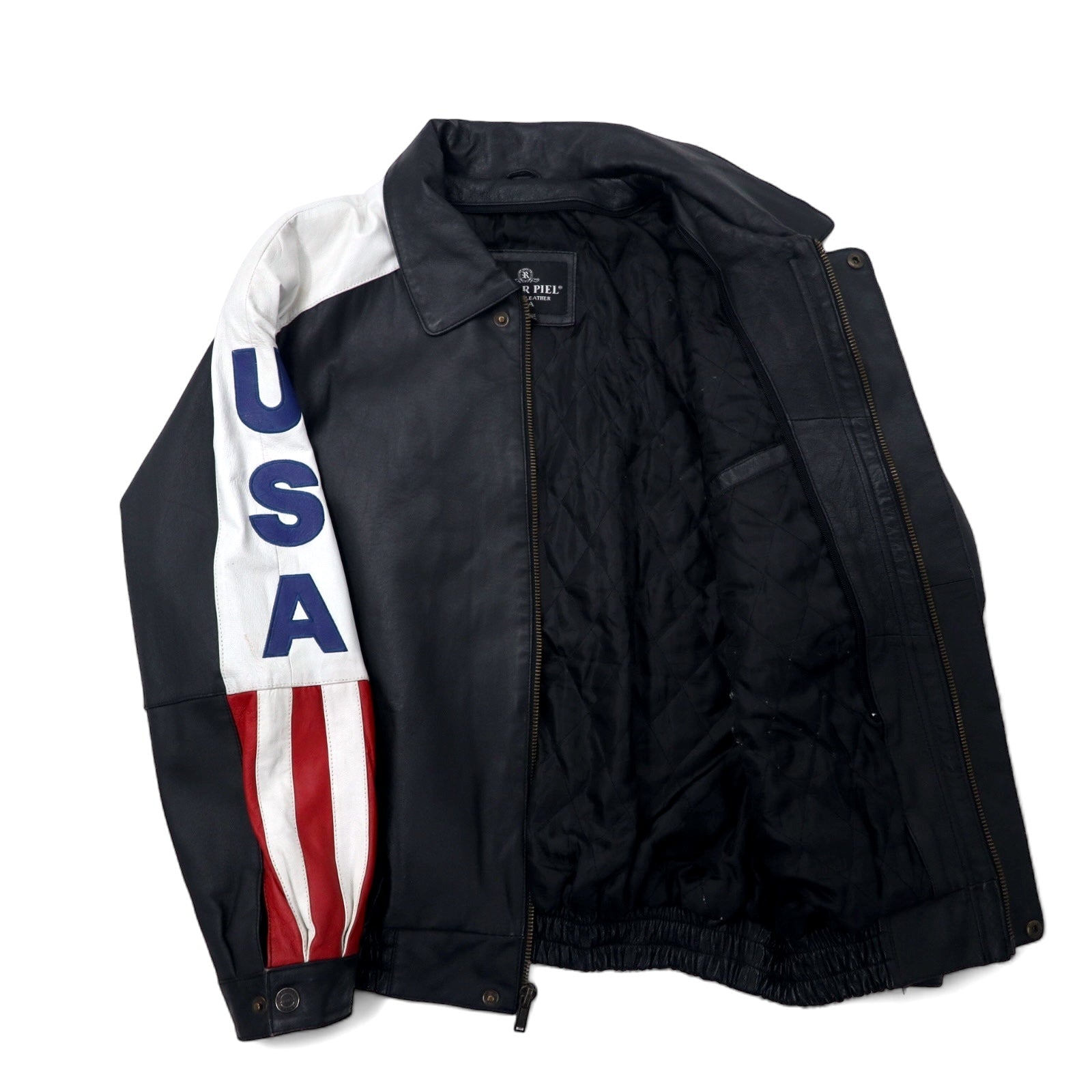 OSCAR PIEL レザージャケット A-2 フライトジャケット L ブラック USA 星条旗