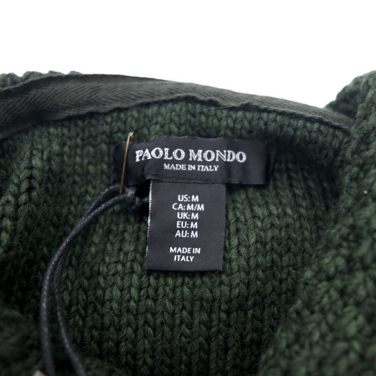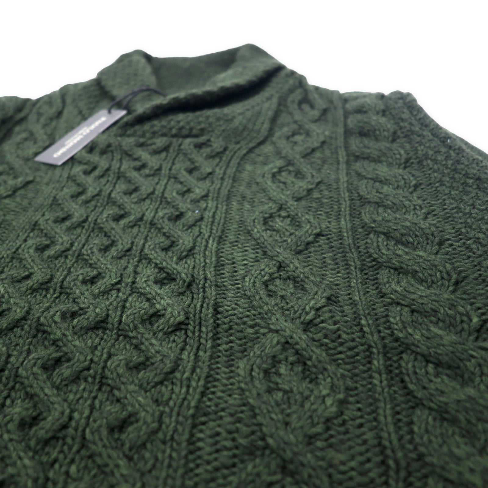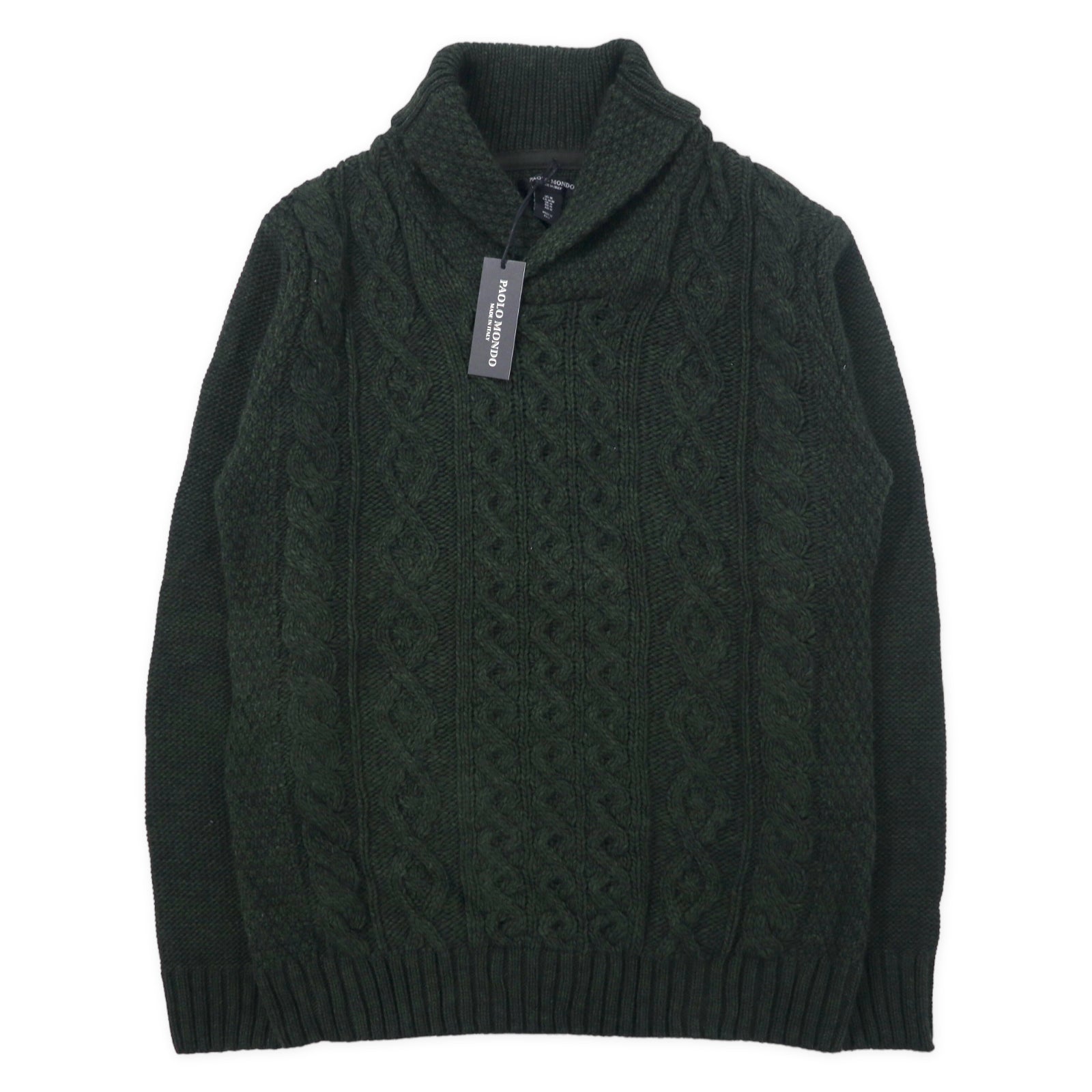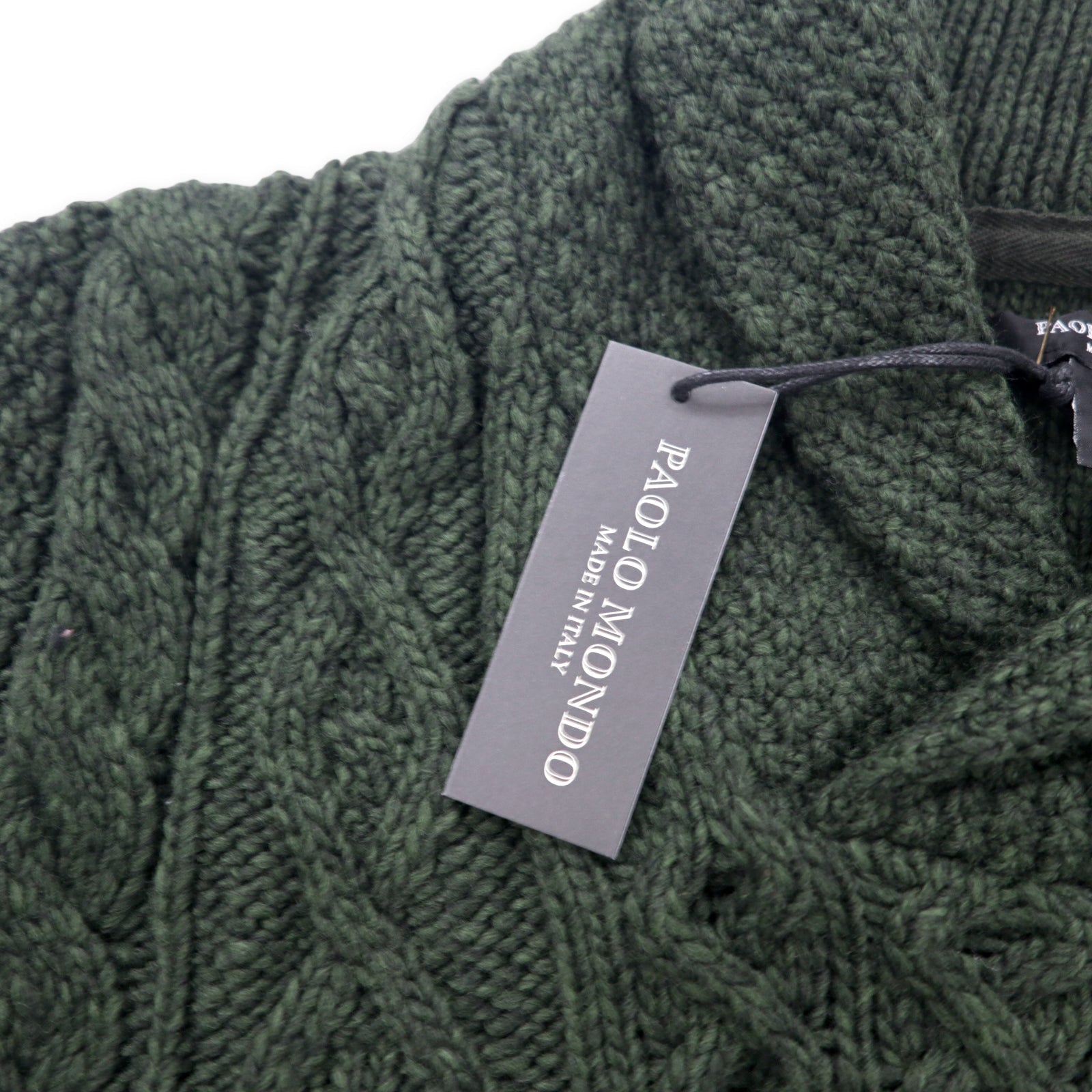 PAOLO MONDO イタリア製 ショールカラー アランニット セーター M カーキ アクリル ウール 未使用品