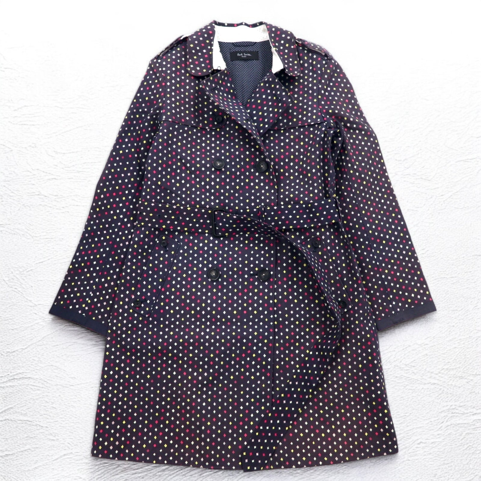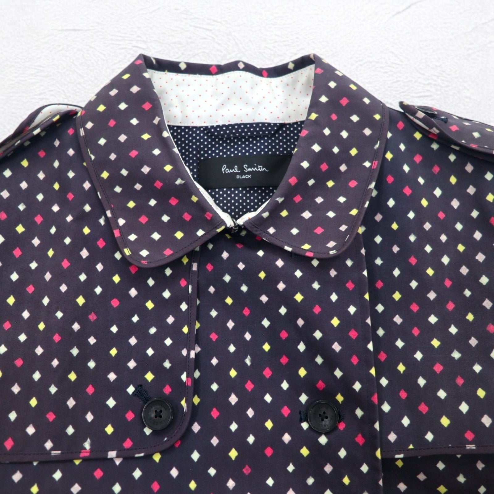 Paul Smith BLACK ゴム引き トレンチコート L ネイビー 総柄 ドット ダブルブレスト ベルト付き 防水