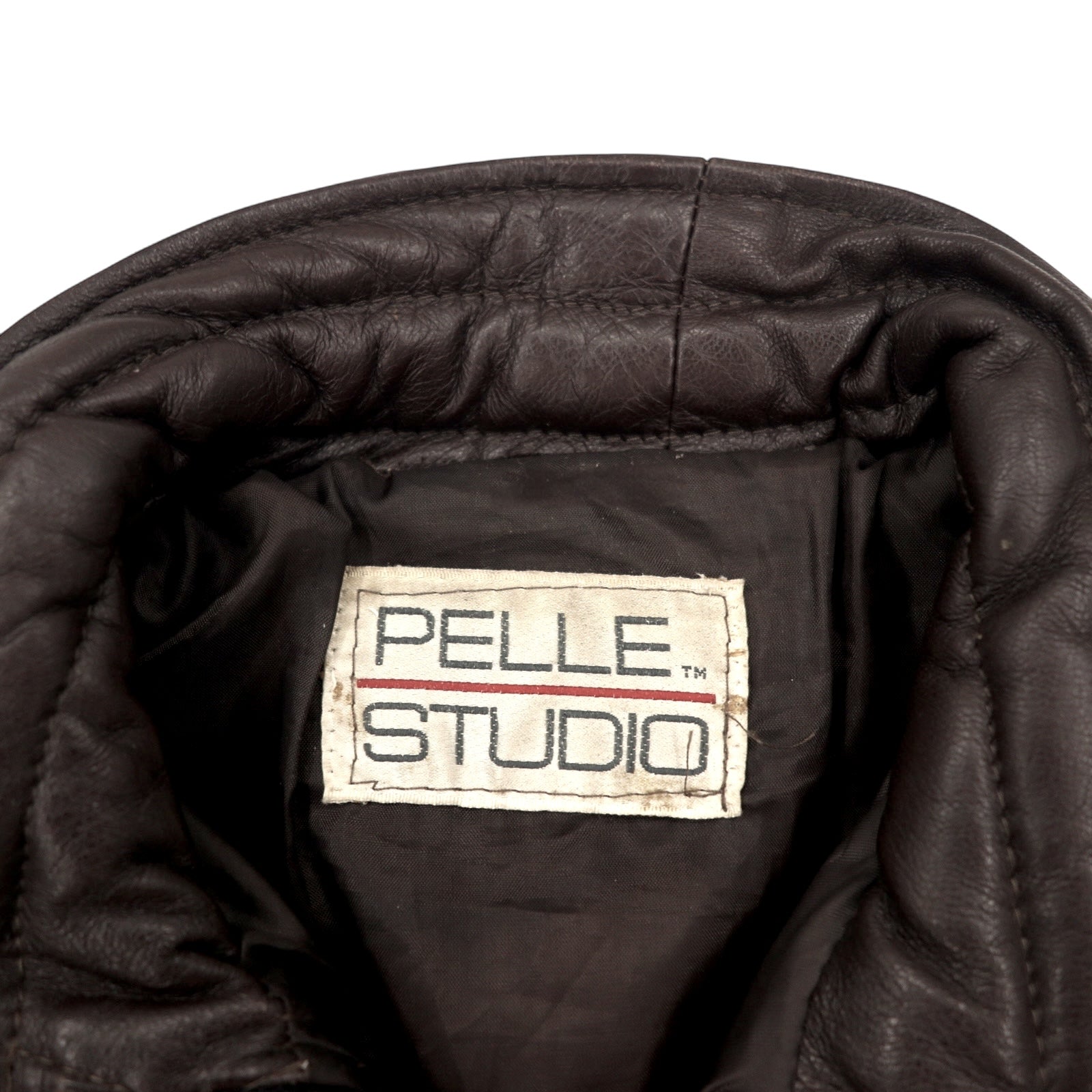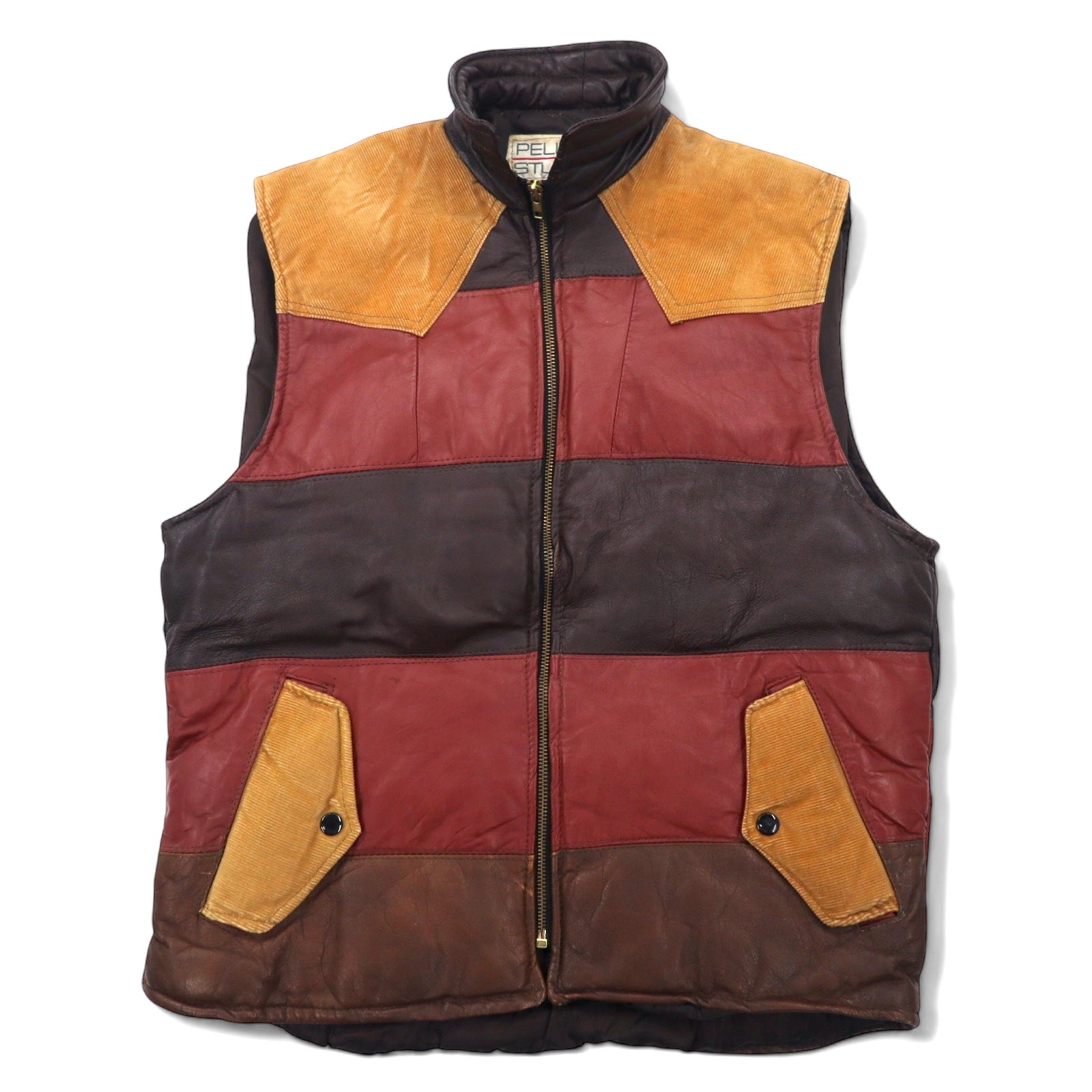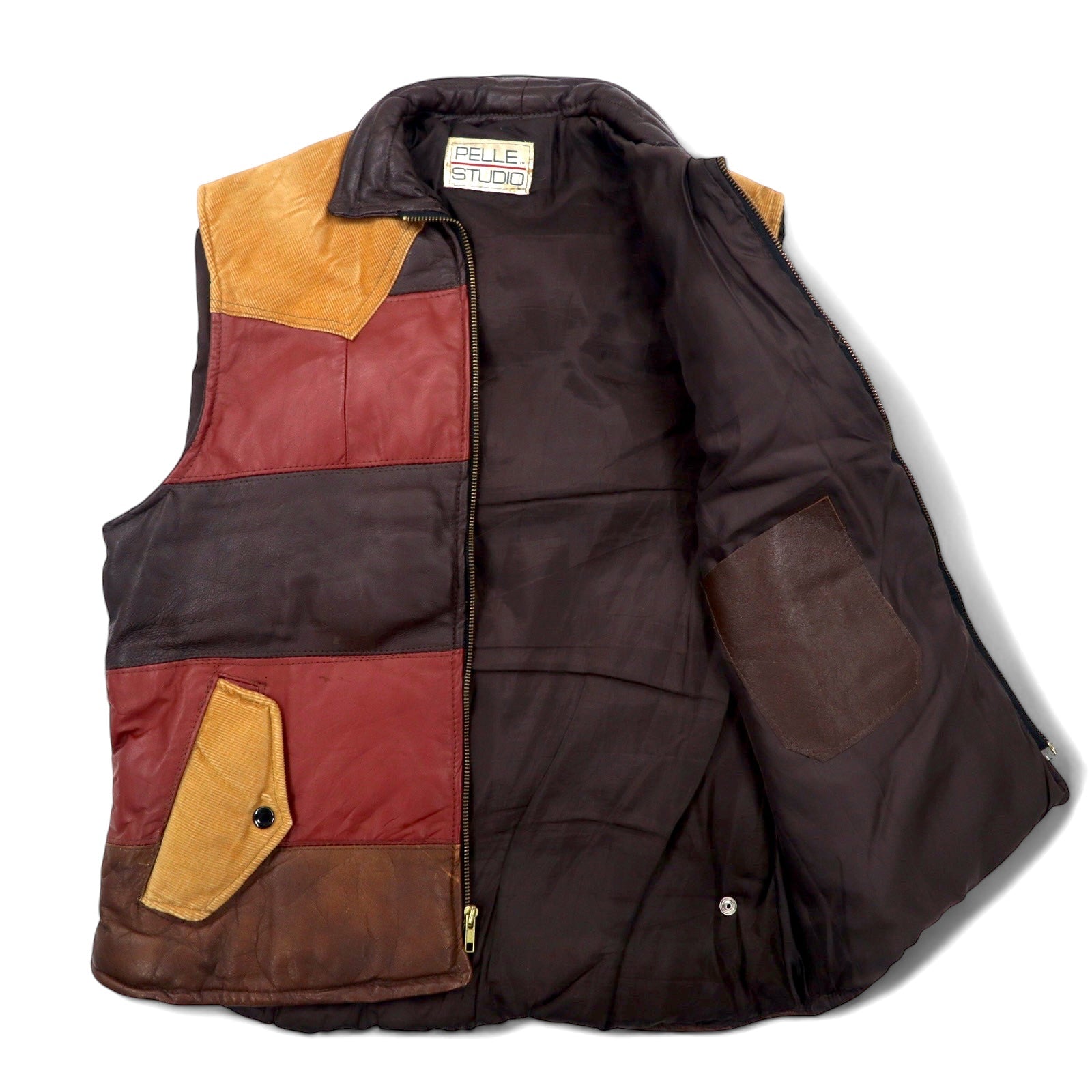 PELLE STUDIO 90年代 レザー ダウンベスト 中綿 L ブラウン マルチカラー コーデュロイ
