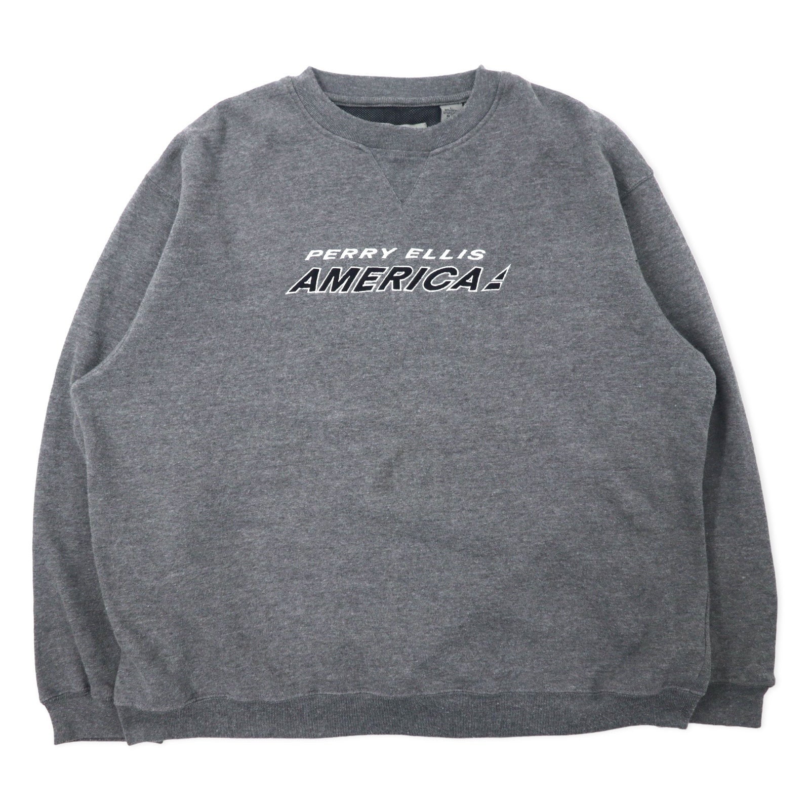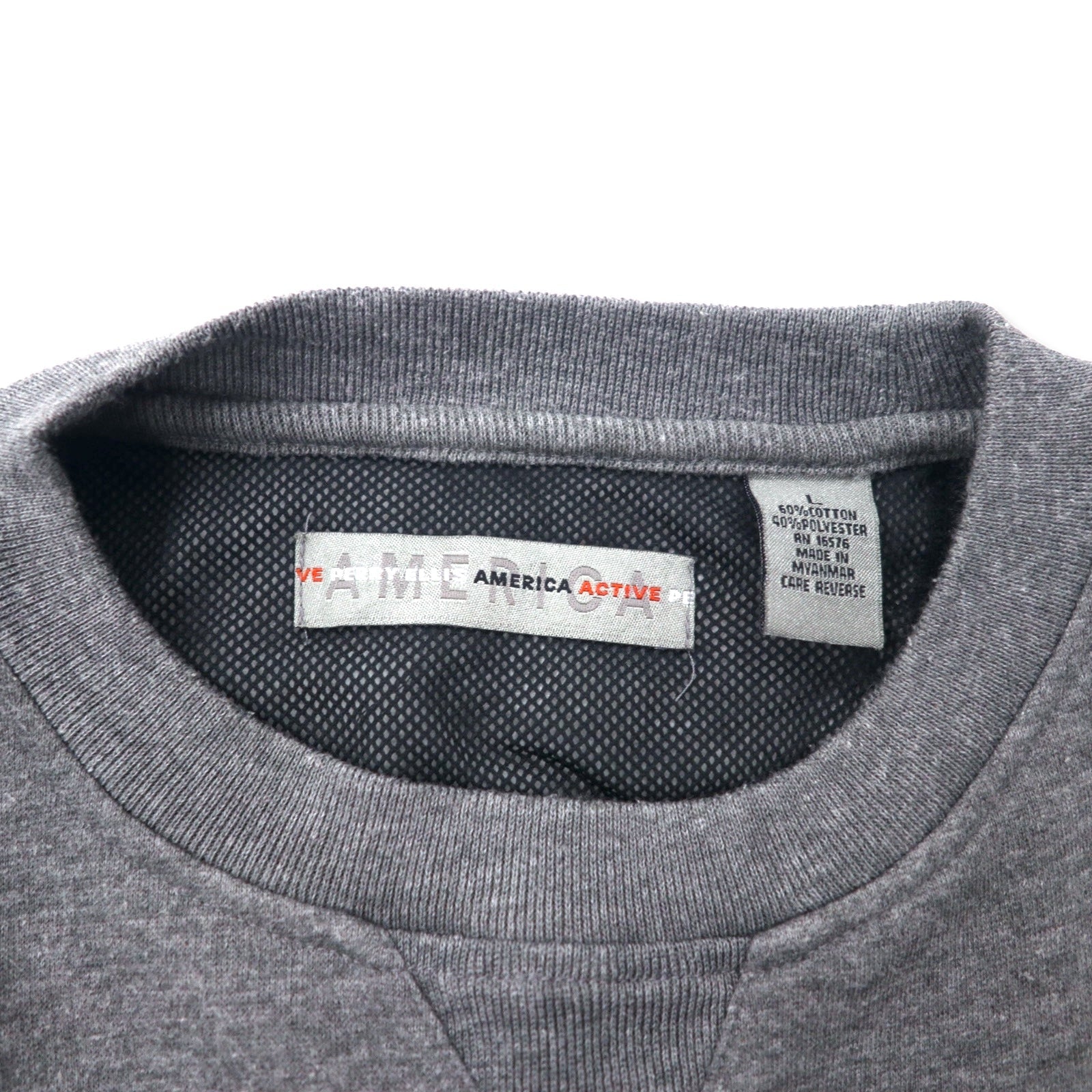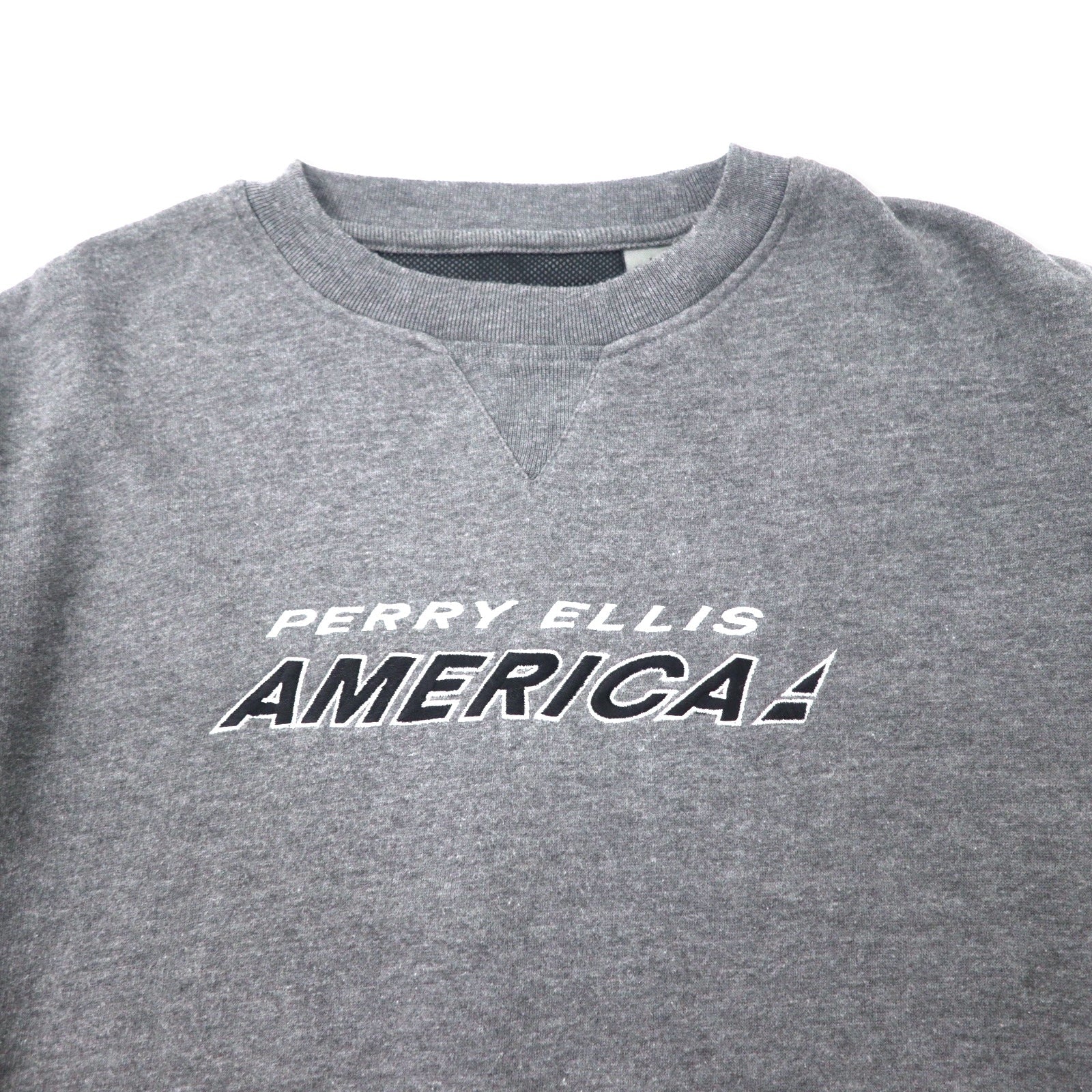 PERRY ELLIS AMERICA ACTIVE 90年代 ロゴ刺繍 スウェット L グレー コットン メッシュライナー 前V