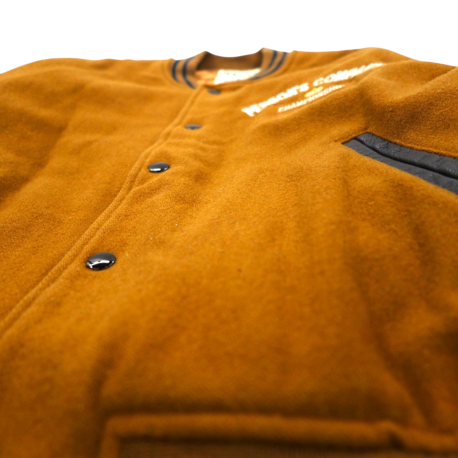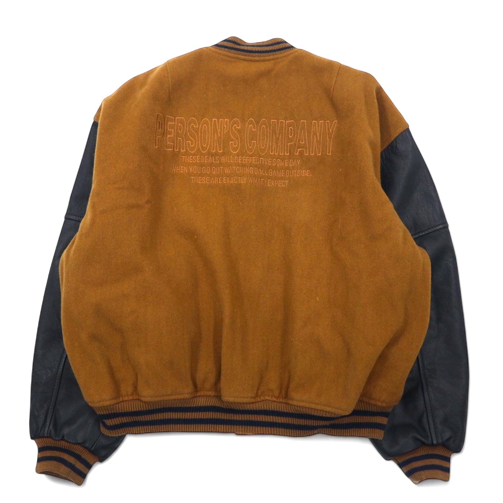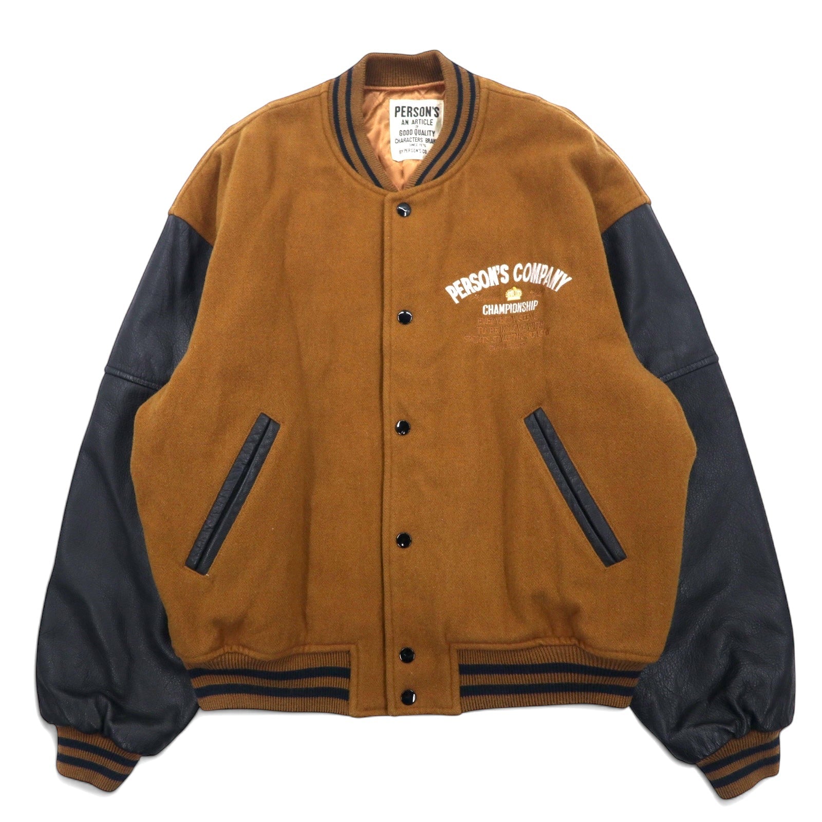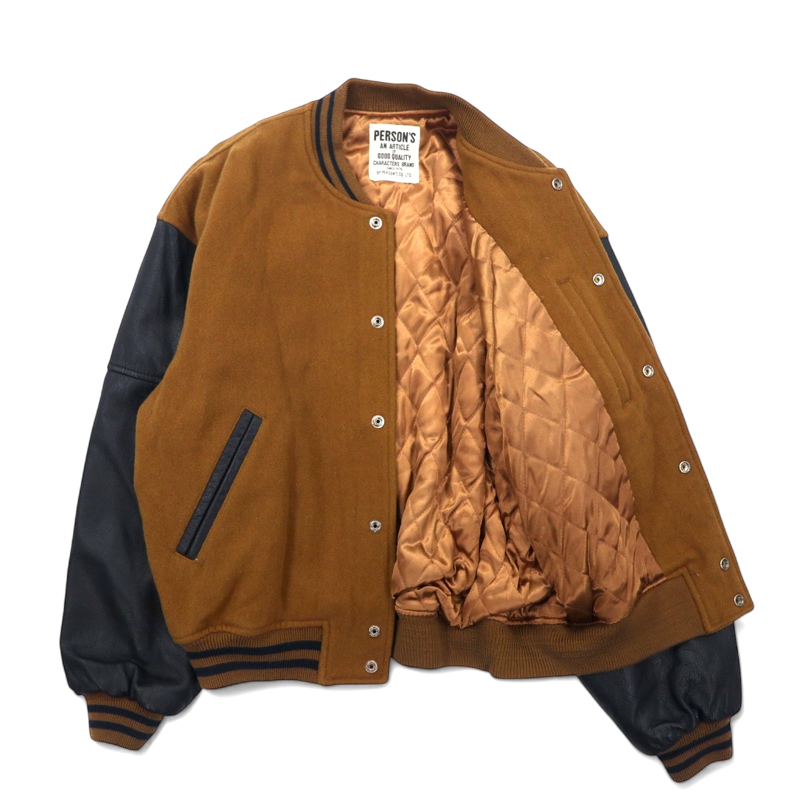 PERSON'S 90年代 袖レザー スタジャン L ブラウン ウール 牛革 キルティングライナー ロゴ 刺繍