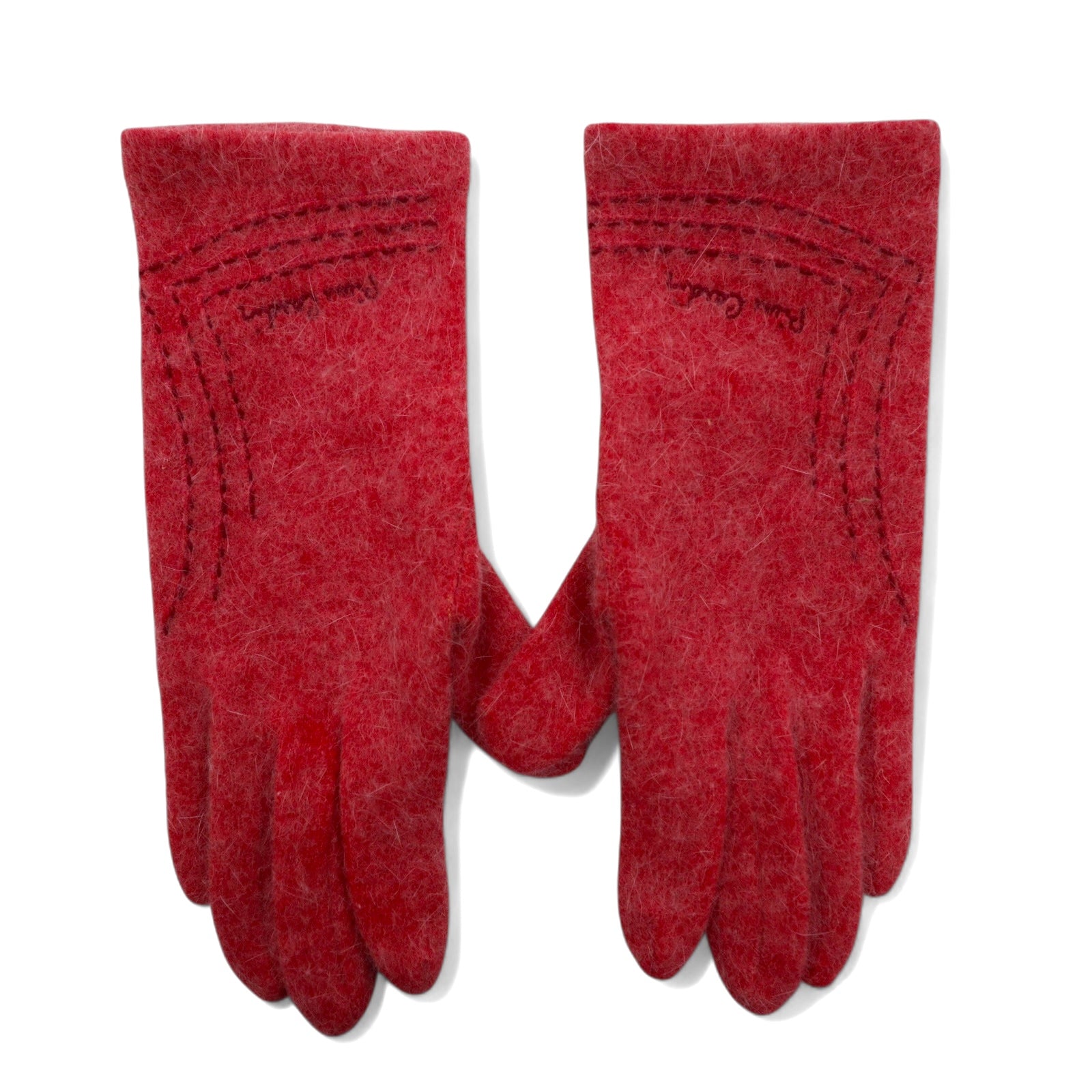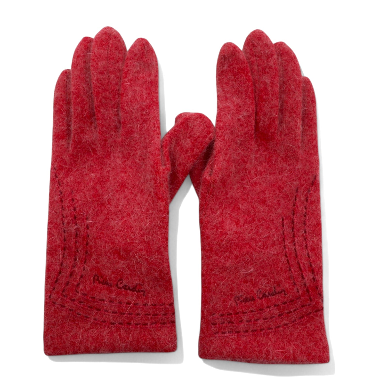 Pierre Cardin シャギーニット グローブ 手袋 ピンク ウール ステッチ ロゴ刺繍 レディース